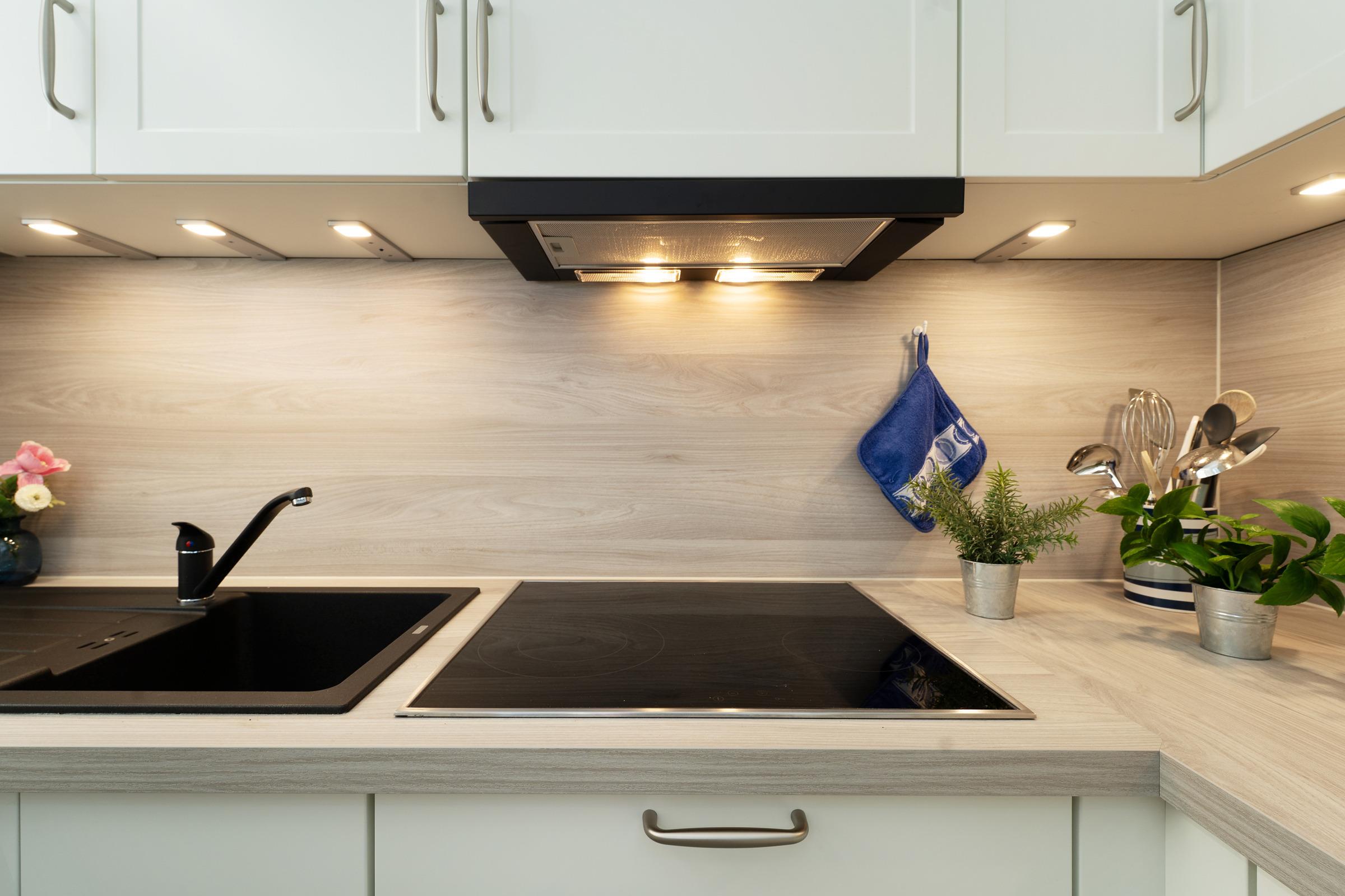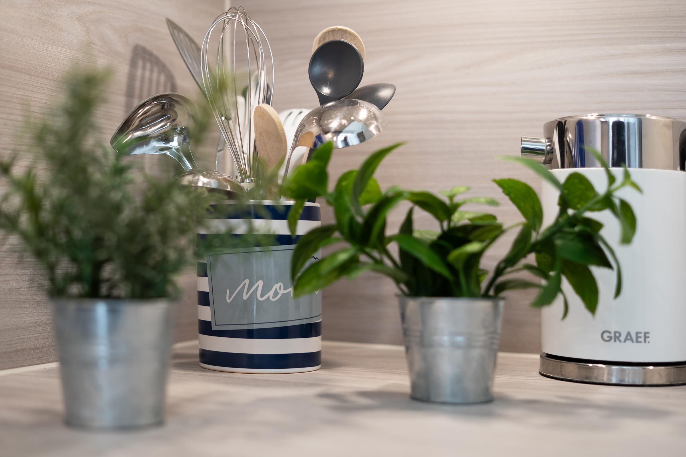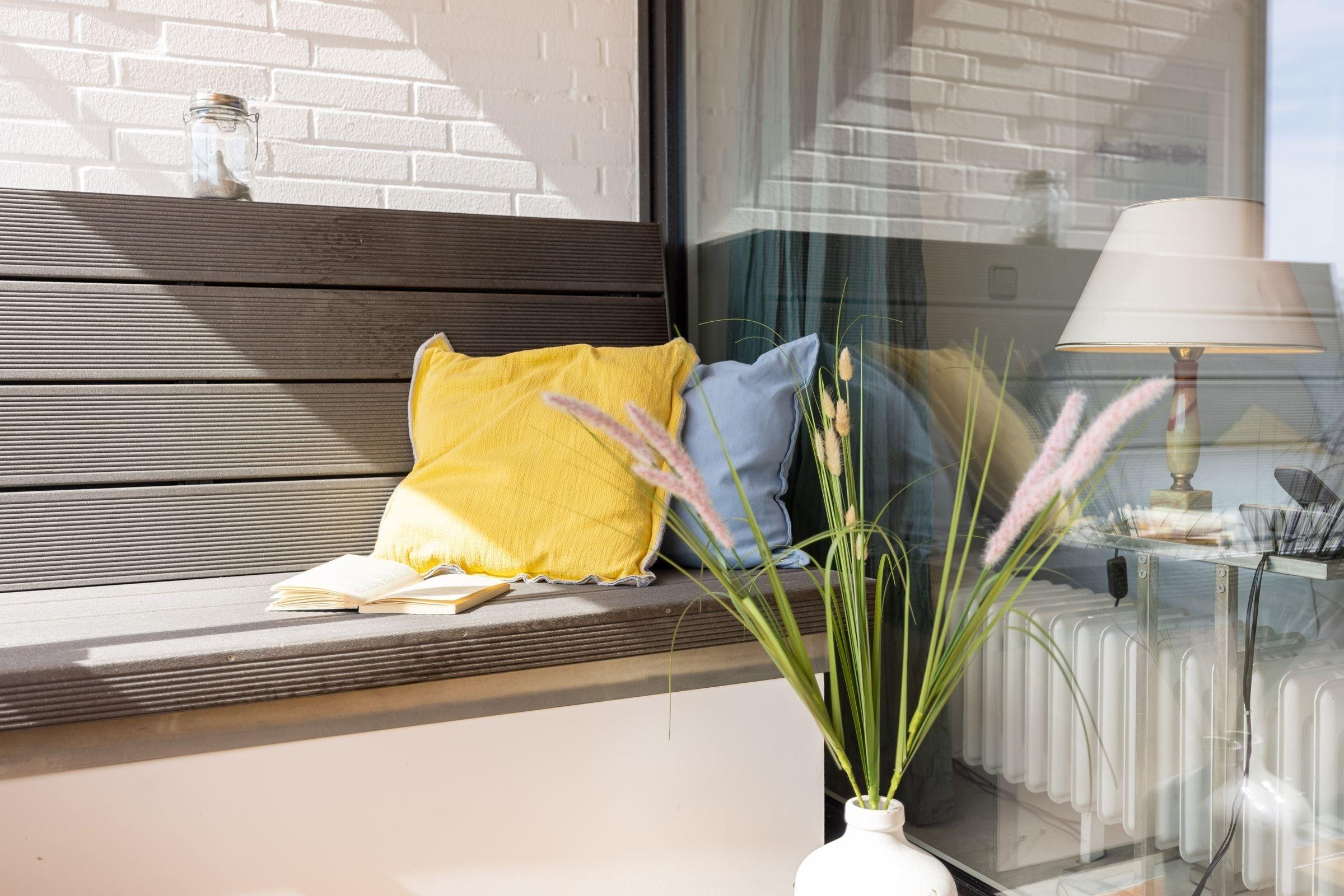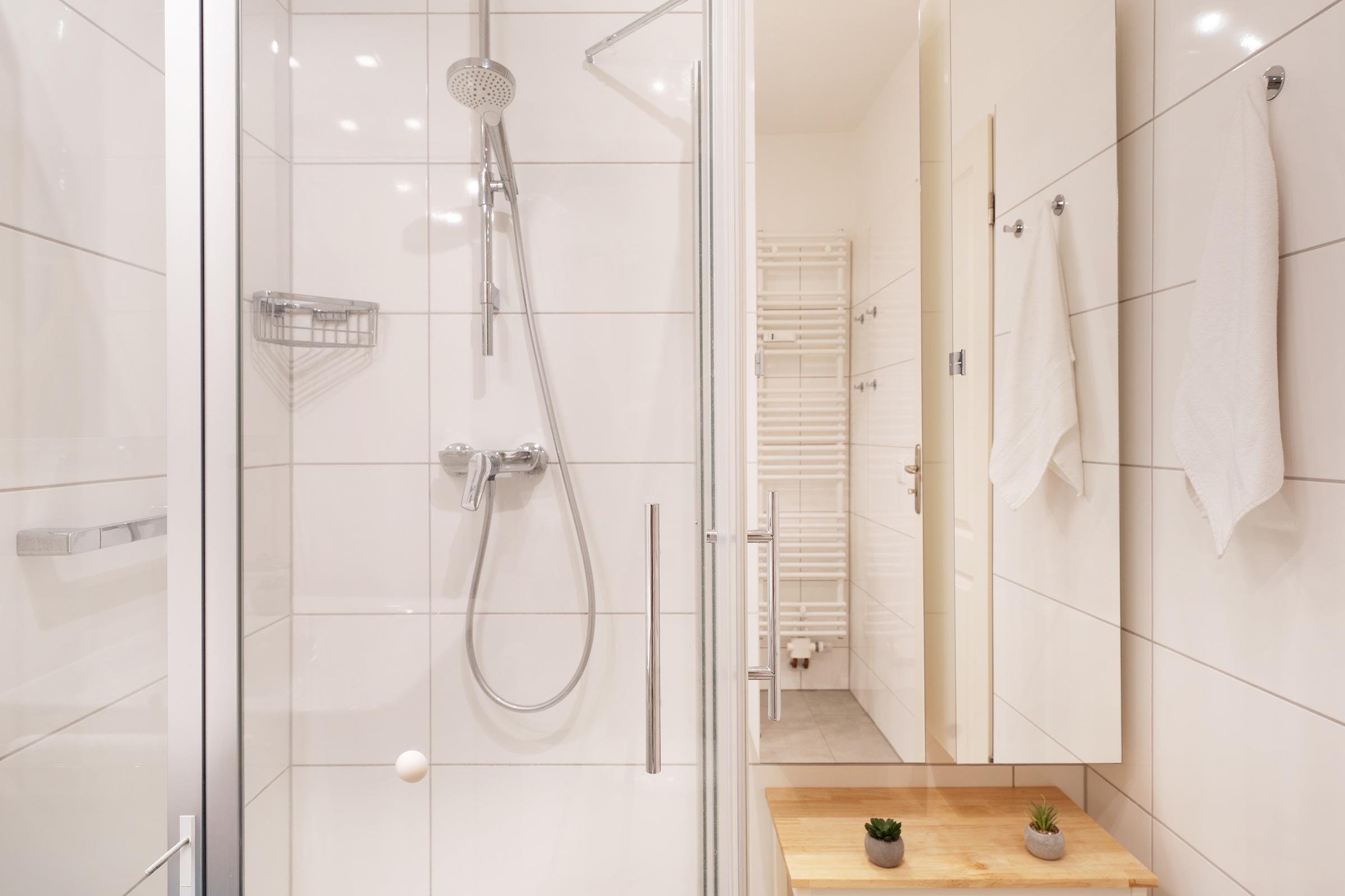 Der offene Wohn-/Schlafbereich empfängt Sie lichtdurchflutet und mit harmonischem Interieur im maritimen Landhausstil. Ein hochwertiges Schrankbett bietet hier eine bequeme Schlafmöglichkeit für bis zu 2 Personen (2x 80x200 cm). Eine gemütliche Fernseh-Ecke mit komfortablem Ecksofa , Sessel, Flachbild-TV und einem heimeligen Dekokamin sorgen nach langen Strandtagen für geruhsame Stunden. Der angrenzende Essbereich ist für bis zu 4 Personen ausgerichtet und bietet Platz für gesellige Mahlzeiten. Ein direkter Zugang führt vom Wohnzimmer auf den möblierten Balkon mit West-Ausrichtung und seitlichem, saisonalen Meerblick. Von der charmanten Eckbank schauen Sie durch Baumwipfel auf die funkelnde Ostsee. Im Außenbereich dient eine Markise als Schutz vor zu starker Sonneneinstrahlung. Im Eingangsbereich der Wohnung gibt es einen geräumigen Kleiderschrank mit reichlich Stauraum für Ihre Urlaubsgarderobe. Vom Flur aus erreichen Sie alle weiteren Räume. Das helle Bad ist mit Dusche, WC, Waschtisch und beleuchtetem Spiegel, sowie einem beheizbaren Handtuchhalter ausgestattet. Ein separates Schlafzimmer mit 2 Einzelbetten (je 90x200 cm) und einer Kommode ist ebenfalls hell und nordisch-modern eingerichtet und bietet einen lauschigen Rückzugsort für bis zu 2 Personen. In der separaten Küche erleichtern kleine Alltagshelfer wie z.B. ein 4-Platten Ceranherd, ein kombinierter Backofen mit Mikrowelle, sowie eine Spülmaschine die Küchenarbeit während des Urlaubs.
