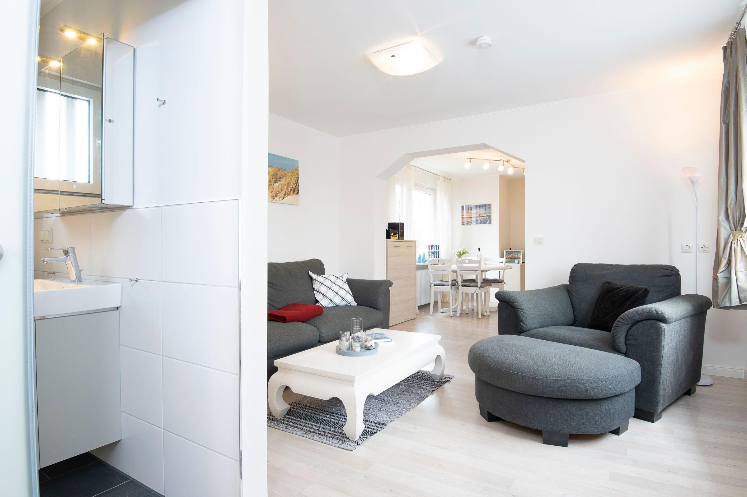 Diese geschmackvolle 3-Zimmer Ferienwohnung bietet mit einer Wohnfläche von ca. 60 m² ausreichend Platz für bis zu 4 Personen.