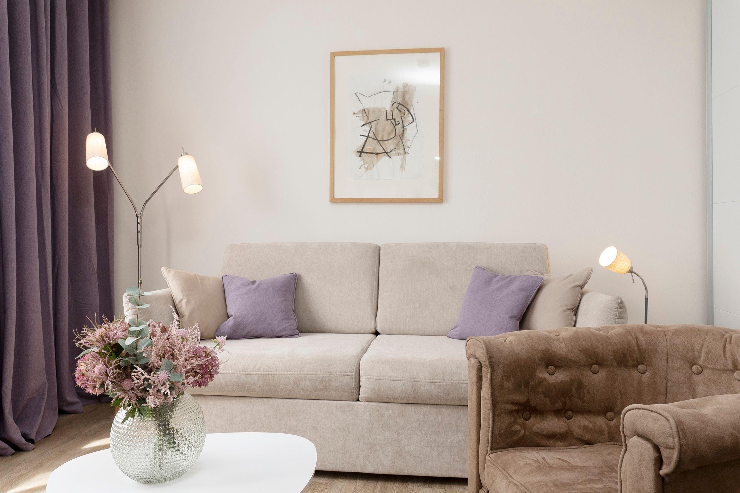 Es erwartet Sie ein offen gestalteter Wohn-/Schlafraum mit einfach auszuklappendem Schlafsofa (Liegefläche 150x200cm, orthopädische Komfortmatratze), TV und integrierter Küchenzeile mit 2-Plattenherd, Kühlschrank und Kaffeemaschine, sowie Esstisch am Fenster. Duschbad mit bodentiefer Dusche und praktischer Handtuchheizung. Ein kostenfreier WLAN-Anschluss gehört hier zur Grundausstattung.