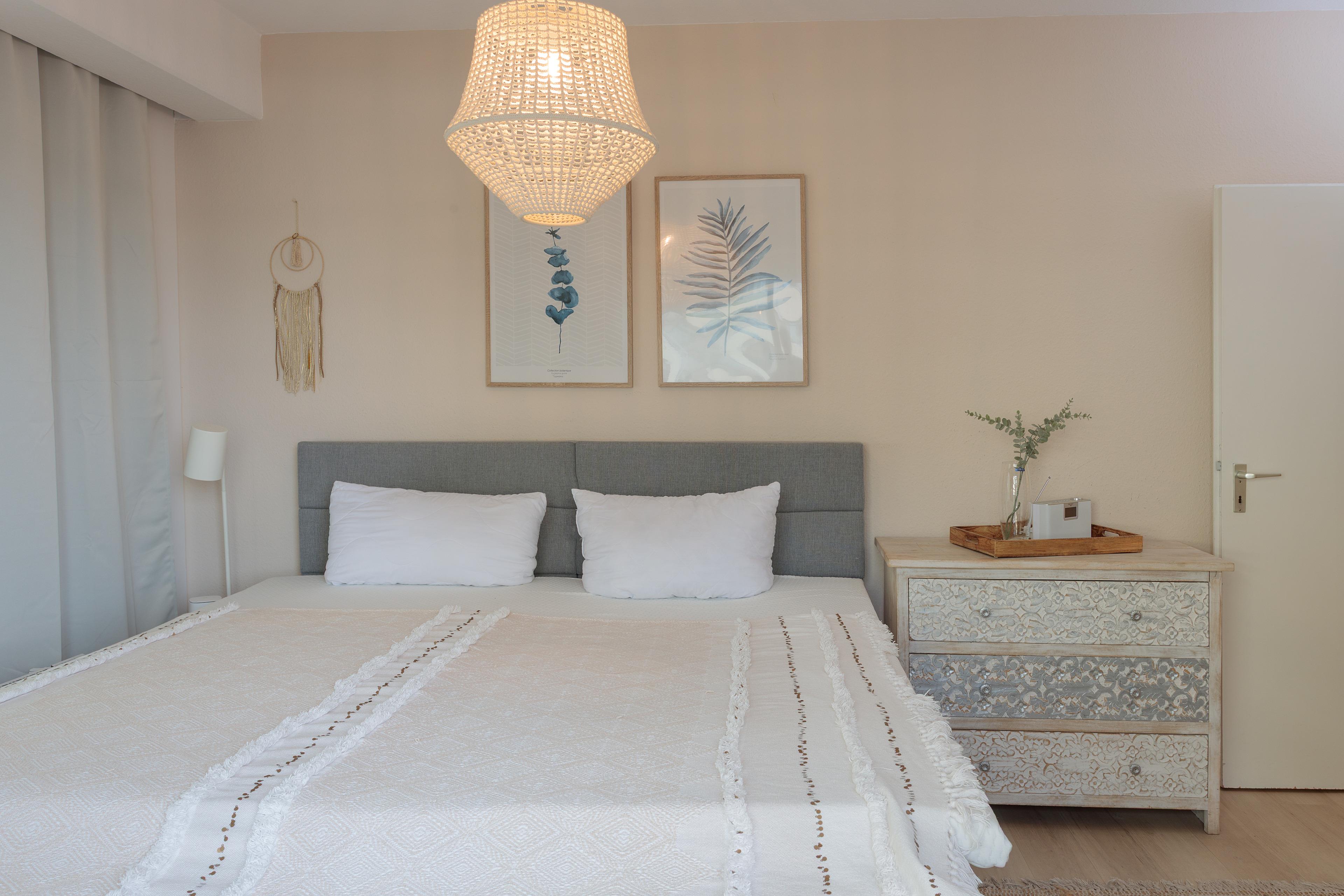 Der helle, offen gestaltete Wohn-/Schlafraum bietet mit einem luxuriösem Doppelbett (2x 90x200 cm) einen komfortablen Schlafbereich, hochwertige Vorhänge sorgen nachts für angenehme Verdunklung. Auch das Sofa ist ausziehbar(140x200 cm) und bietet somit einen weiteren alternativen Schlafplatz. Eine Kommode bietet Stauraum zur Unterbringung Ihrer Feriengarderobe, der Flachbildfernseher sorgt für Unterhaltung, wenn es mal nicht an den Strand geht. Die separate Küche ist elegant gestaltet und gut ausgestattet, hier lassen sich mit Freude leckere Mahlzeiten während Ihres Urlaubs zubereiten. Vom Wohnbereich geht es direkt auf den lauschigen, möblierten Balkon - genießen Sie hier die ersten Sonnenstrahlen mit Ihrem Frühstückskaffee oder lassen den Abend mit einem stilvollen Sommerdrink ausklingen, der seitliche Blick Richtung Promenade lässt Sie jederzeit die Meer Nähe spüren.