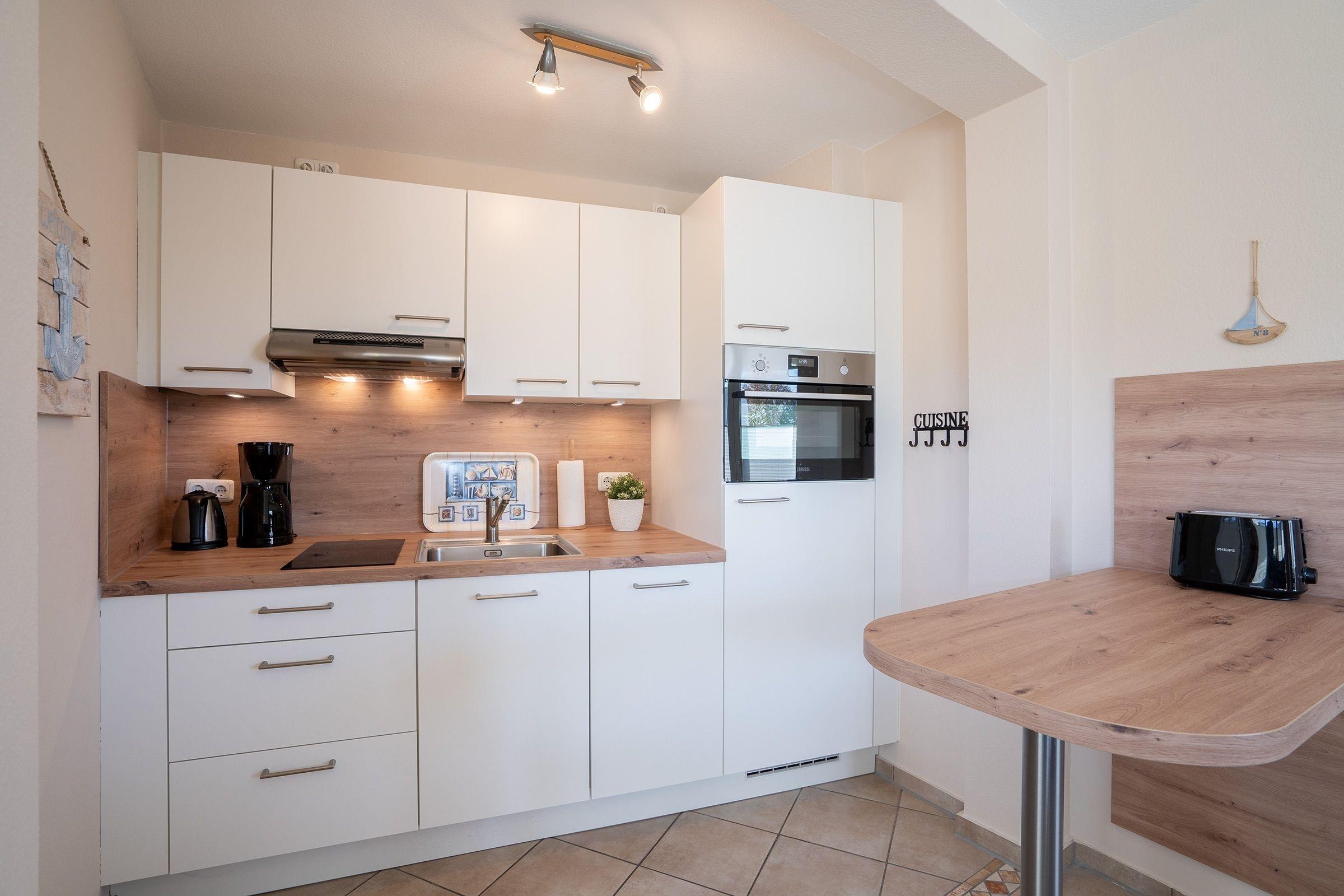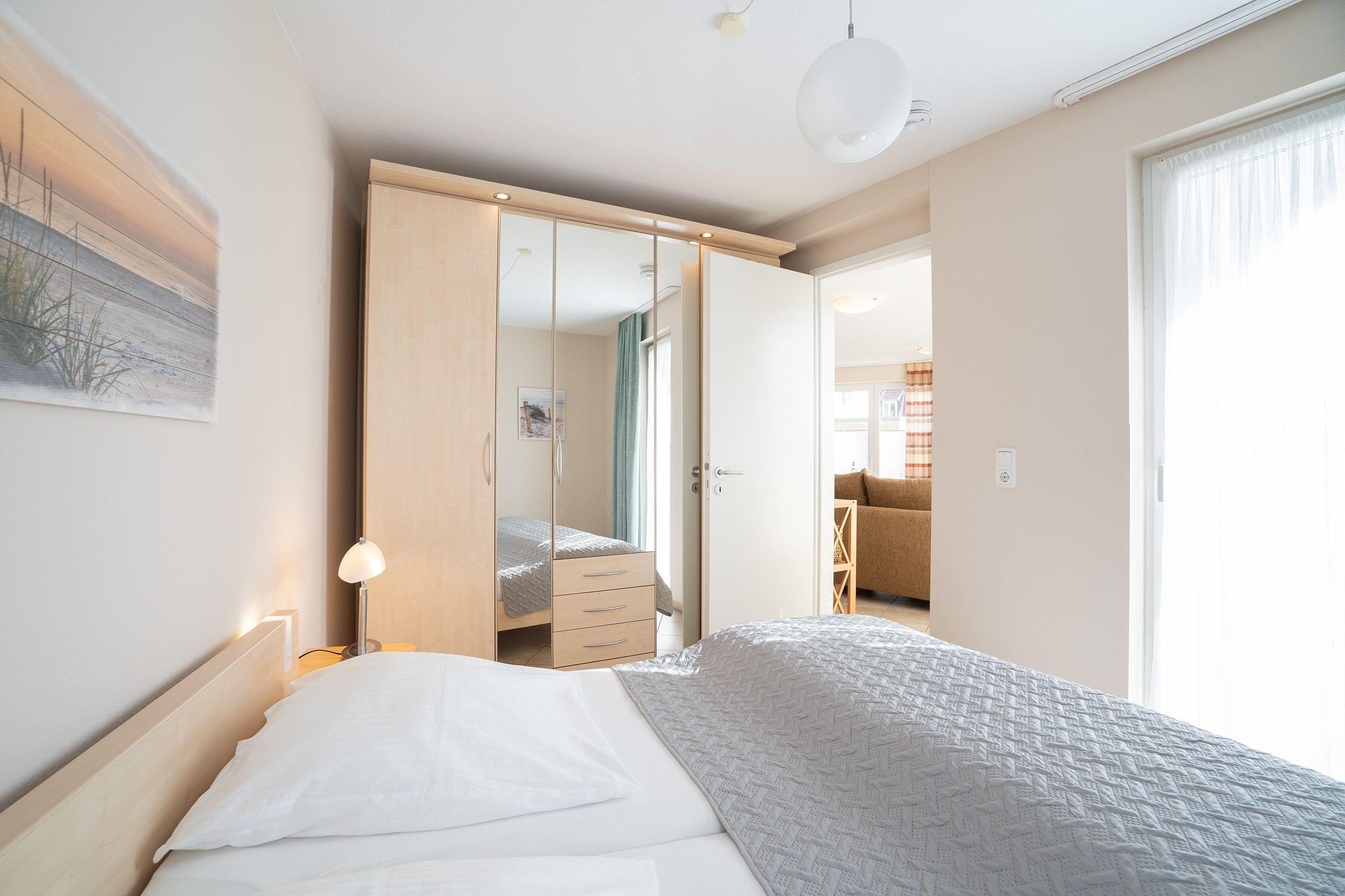Das separate Schlafzimmer ist mit einem bequemen Doppelbett (2x 90x200cm) und einem Kleiderschrank ausgestattet. Vom gemütlichen Wohn-/Essbereich mit integrierter, gut ausgestatteter Küche geht es direkt auf den möblierten Balkon. Das Badezimmer begeistert mit Annehmlichkeiten wie Dusche, beheizbarem Handtuchhalter, Fön und Fußbodenheizung.