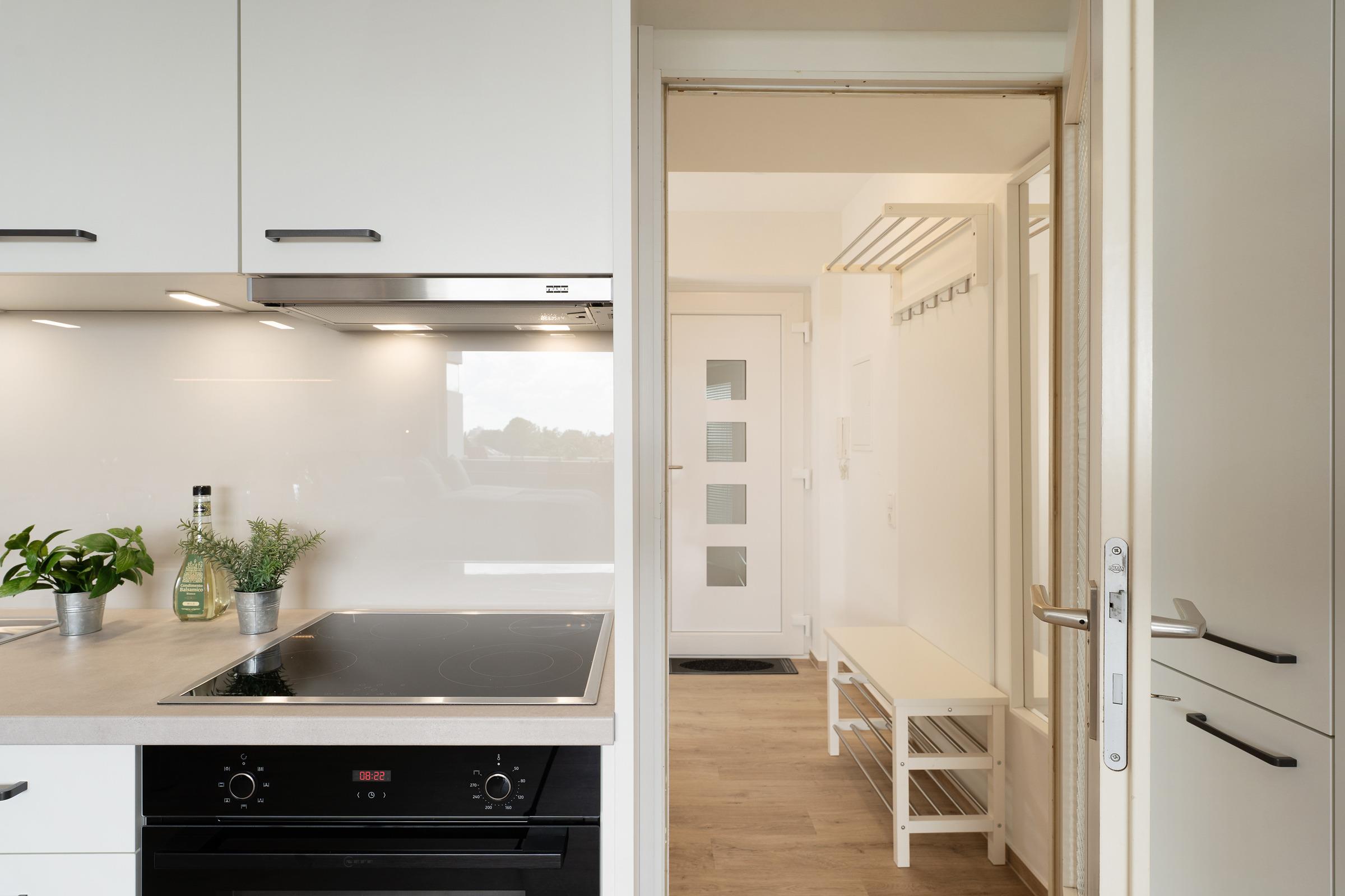 Panoramablick inklusive - Vom Balkon dieser gemütlichen 1-Zimmer-Ferienwohnung aus blickt man über die Dächer von Grömitz und genießt einen freien Ostseefernblick! Nach nur 500m erreichen Sie den Ortskern von Grömitz mit zahlreichen Einkaufsmöglichkeiten, Bäckerfilialen und Restaurants. Von dort aus geht es entlang der Fußgängerzone mit diversen kleinen Lädchen und Cafés und gelangen nach einem Spaziergang von ca. 20 Minuten an den weißen Strand oder die malerische Seebrücke.