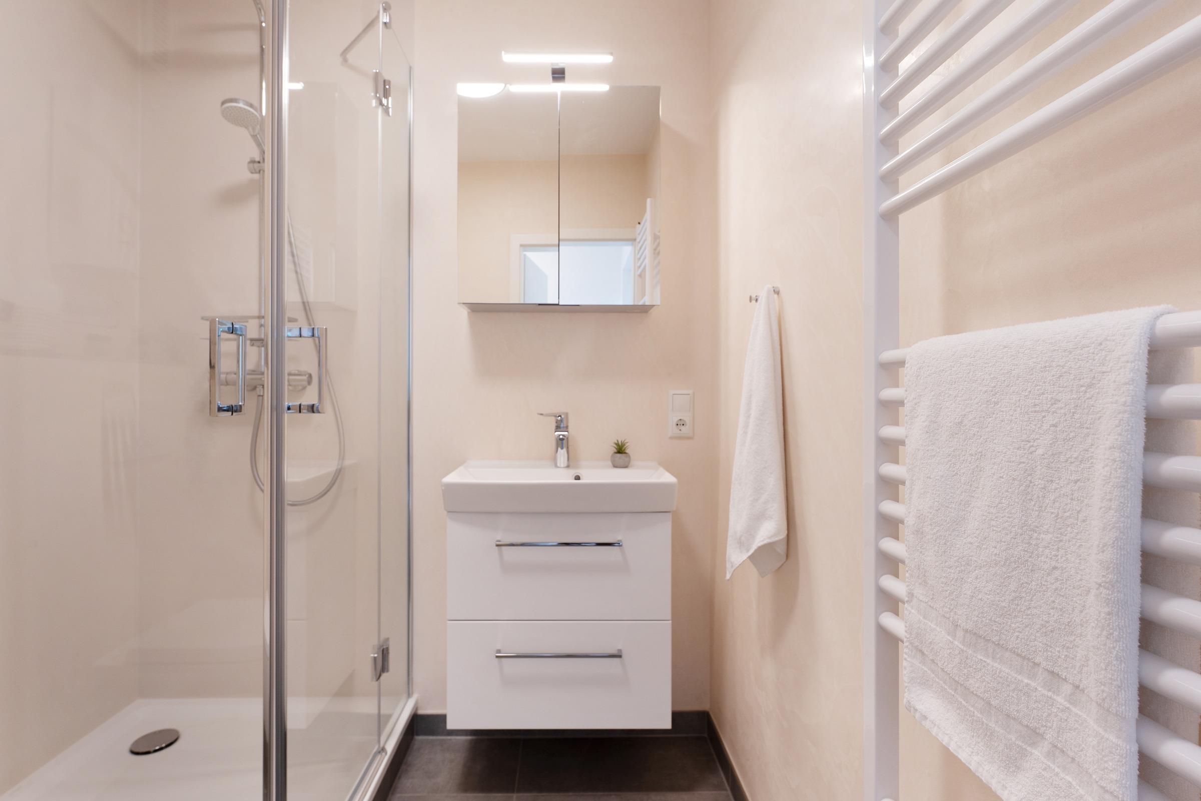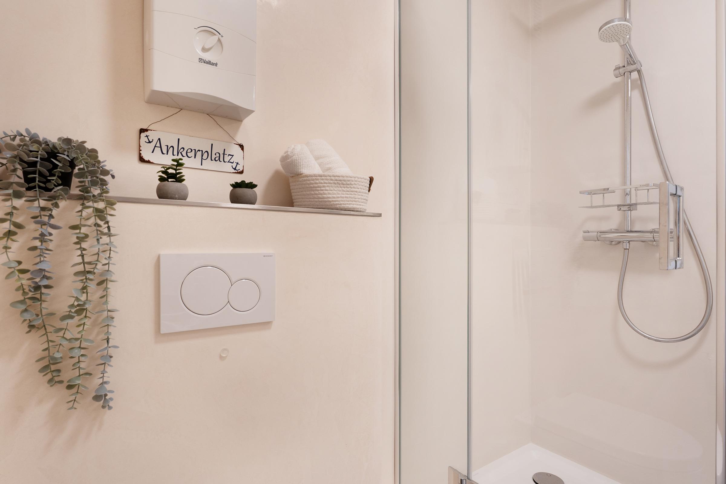 Erholsam schlafen werden Sie im hochwertigen, komfortablen Polsterbett (2x 80x200 cm), die Fenster lassen sich durch Rollos angenehm abdunkeln. Für Unterhaltung sorgen ein kostenfreier WLAN-Anschluss, ein schwenkbarer 50 Zoll TV und ein Internetradio mit Bluetooth-Kopplungsmöglichkeit. In der gut ausgestatteten Küchenzeile sorgen Alltagshelfer wie Backofen, Cerankochfeld, Kaffeemaschine und Spülmaschine für sorgenfreies Kochvergnügen. Der Ausblick vom möblierten Balkon führt über die Dächer von Grömitz bis hin zur entfernten, blau funkelnden Ostsee. Ein Sonnenschirm bietet an sonnigen Tagen Schutz vor zu starker Sonneneinstrahlung. Ein Duschbad mit WC und komfortabler Regendusche ist ebenfalls vorhanden.