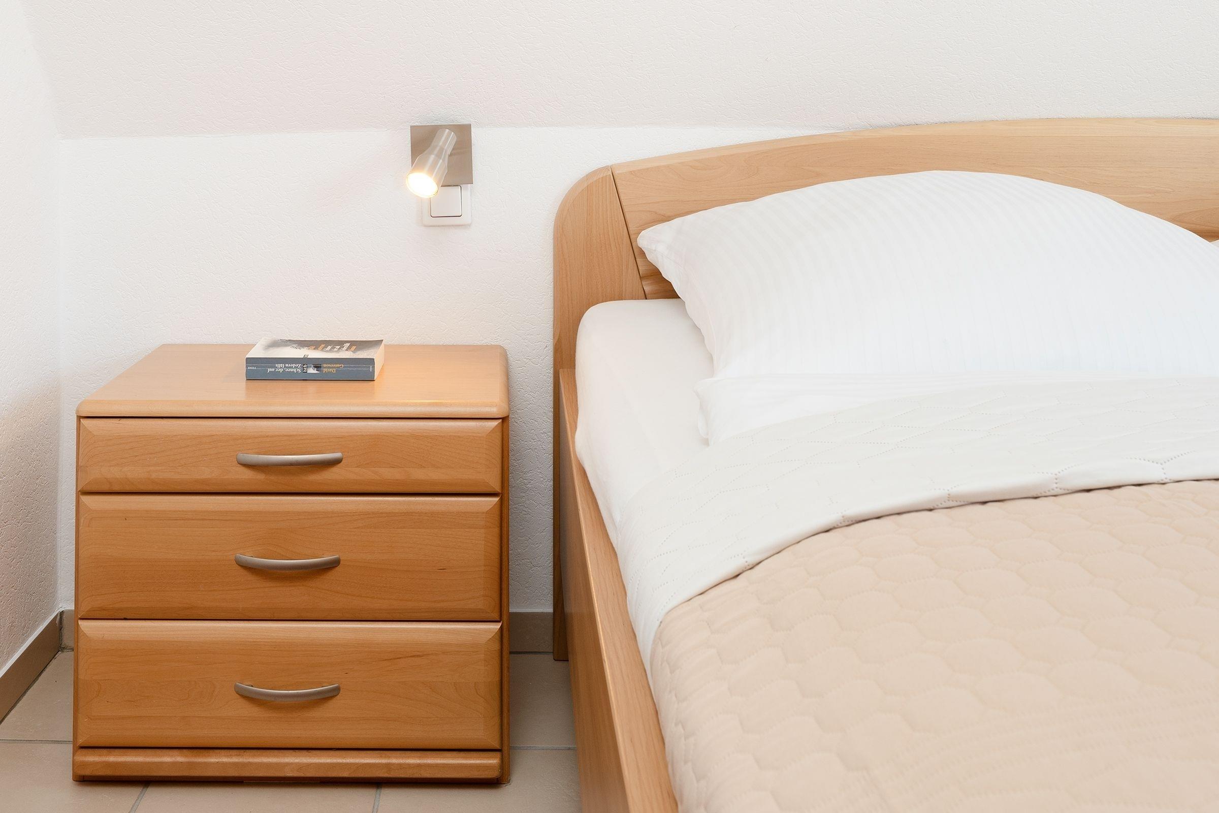 Schlafzimmer: 1 Doppelbett, (2x 90x200 cm), Kleiderschrank, Verdunkelung (Plissee, Außenjalousie)