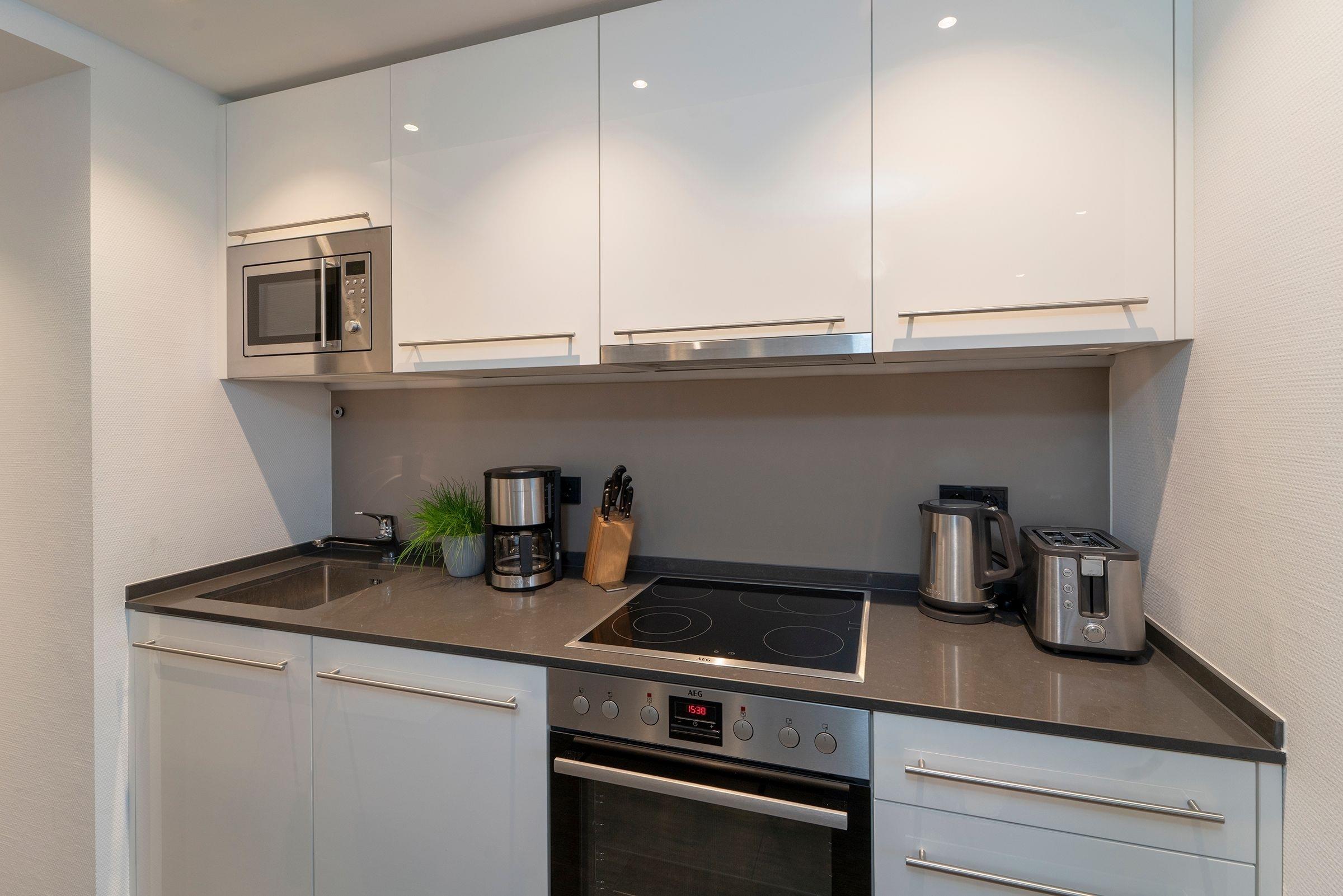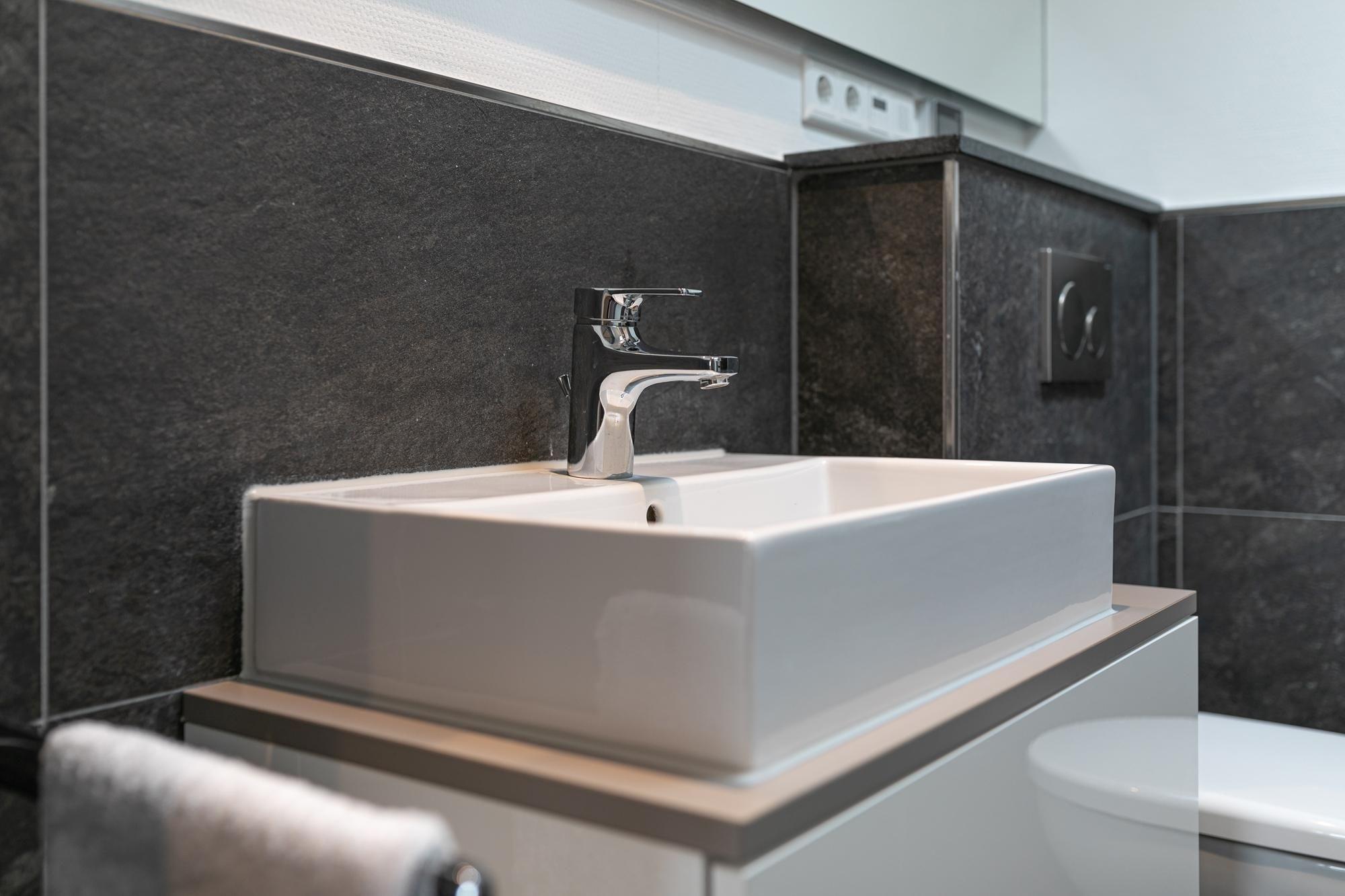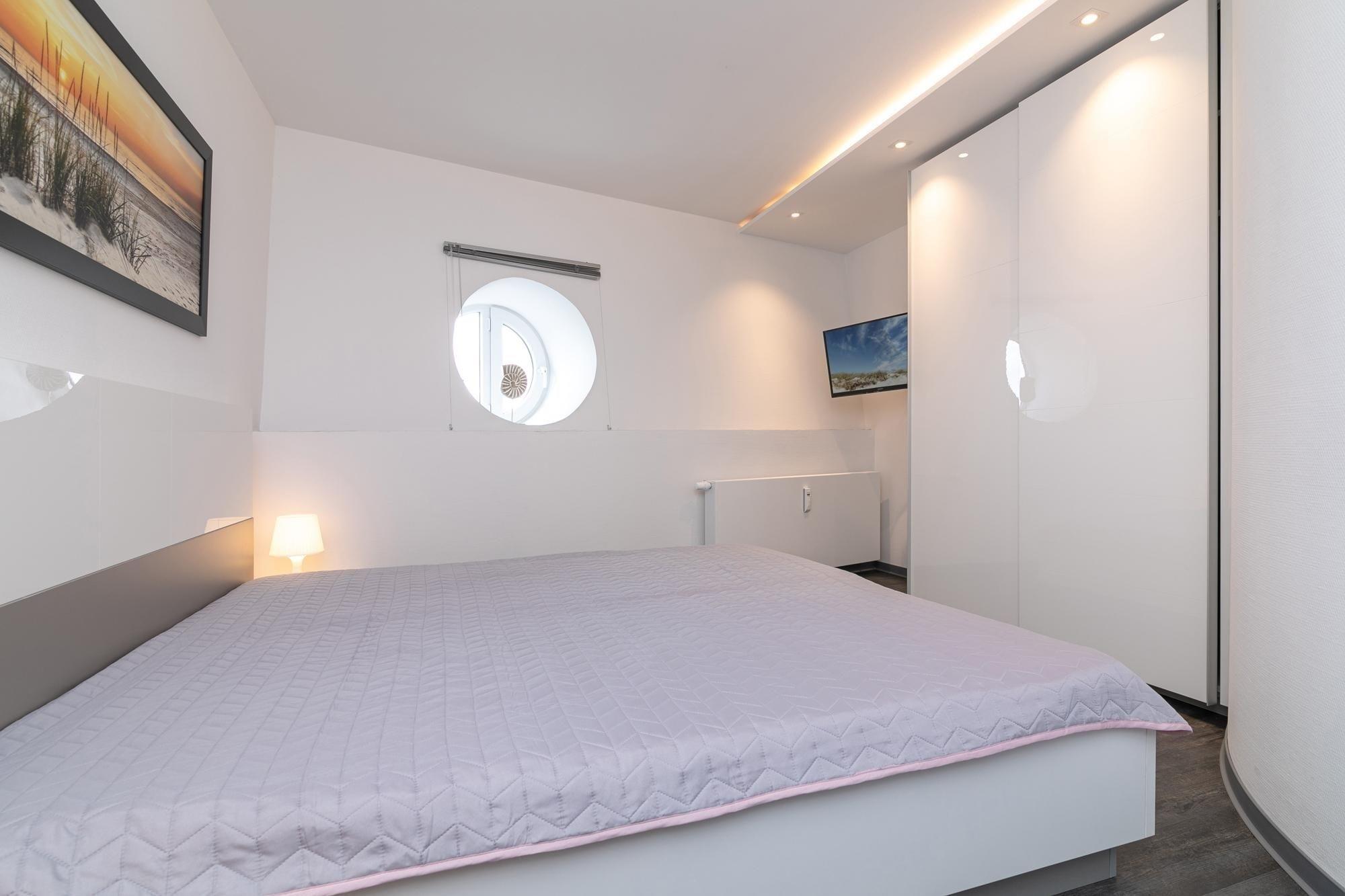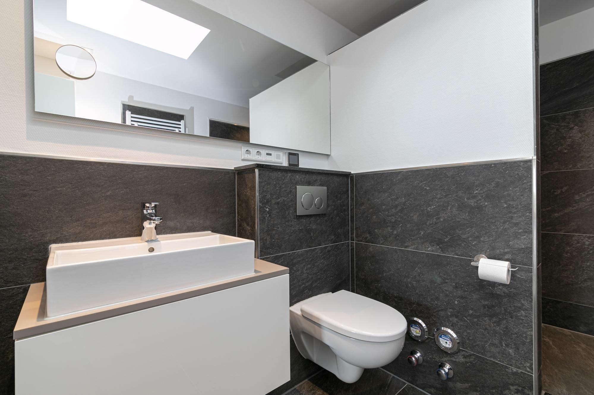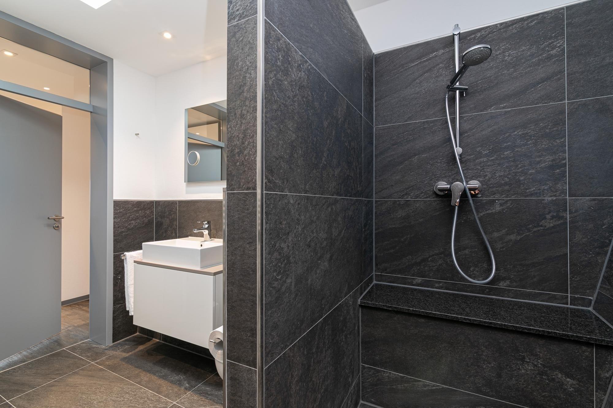 Die zwei separaten Schlafzimmer sind jeweils mit einem komfortablen Doppelbett (je 2x 100x200 cm), Flatscreen-TV und Kleiderschrank möbliert. Im geschmackvollen Bad sorgen stilvolle Elemente wie Waschbecken mit Unterschrank und beleuchtetem Spiegel, Walk-in-Dusche und beheizbarem Handtuchhalter für Wohlfühlatmosphäre.
