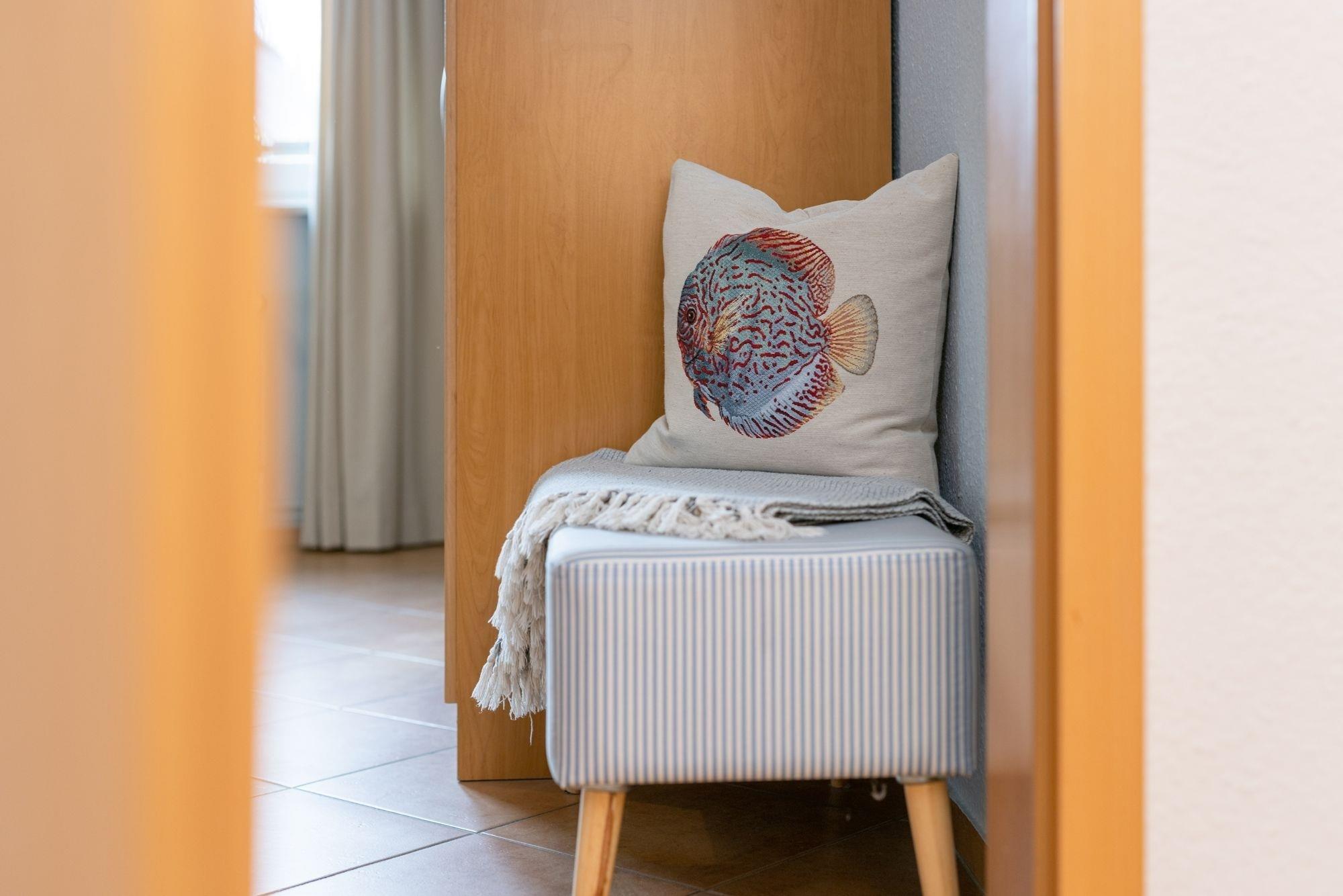 Segelschiffe und Motorboote am Horizont prägen das Bild des aparten Badeortes Grömitz, dessen moderner Yachthafen eine große Anziehung auf Ostseeurlauber ausübt. Jeder sollte sich die Zeit nehmen, die unzähligen Masten und Segel bei einem Kaffee oder fangfrischen Ostseefisch auf sich wirken zu lassen. Die breite Promenade hält viele Möglichkeiten zum Verweilen und Bummeln bereit. Nicht nur im Sommer lassen sich die Urlaubstage in Grömitz bunt und abwechslungsreich gestalten. Erleben Sie unsere stilvollen Ferienwohnung in einem traditionellen Grömitzer Haus im ursprünglichen Ortskern, nicht weit entfernt vom Strand! Geschäfte und Bäckereien erreichen Sie fußläufig in wenigen Minuten, zum Hauptstrand von Grömitz mit Ihrem eigenen Strandkorb gelangen Sie nach einem zehnminütigen Spaziergang. Kommen Sie entspannt an und treten Sie ein, es ist bereits alles da, was Sie für Ihren Urlaub benötigen! Wir erwarten Sie in Ihrem Domizil an der Ostsee in Grömitz!