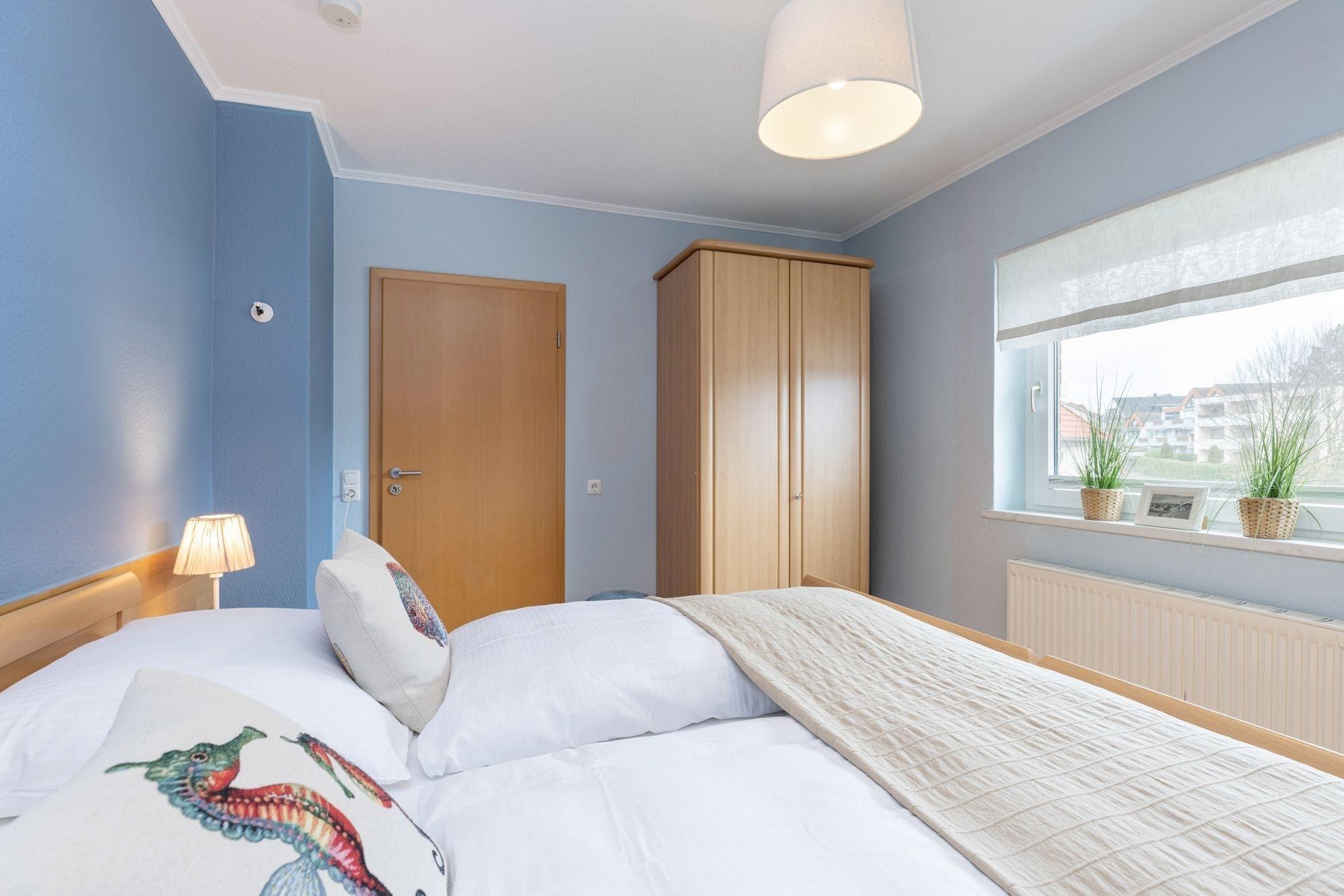 Schlafzimmer 2: 1 Doppelbett (2x 90x200 cm), Kleiderschrank, Verdunkelung (Thermo-Plissees).