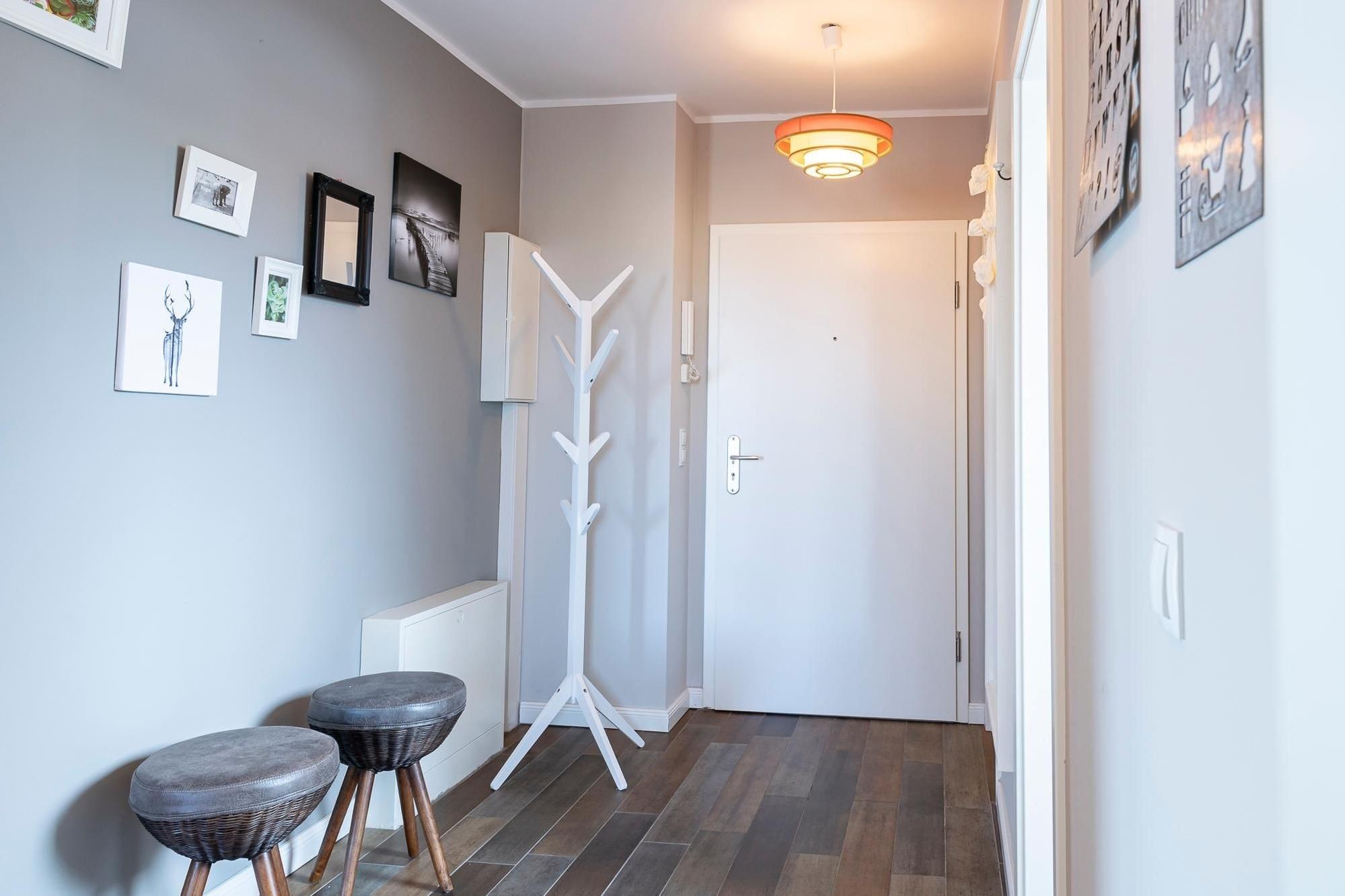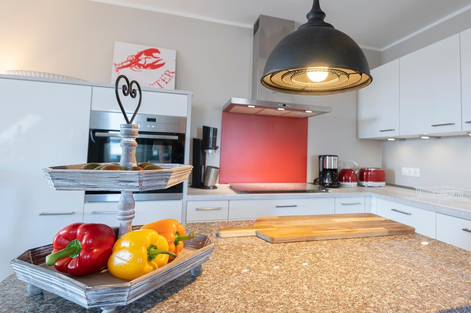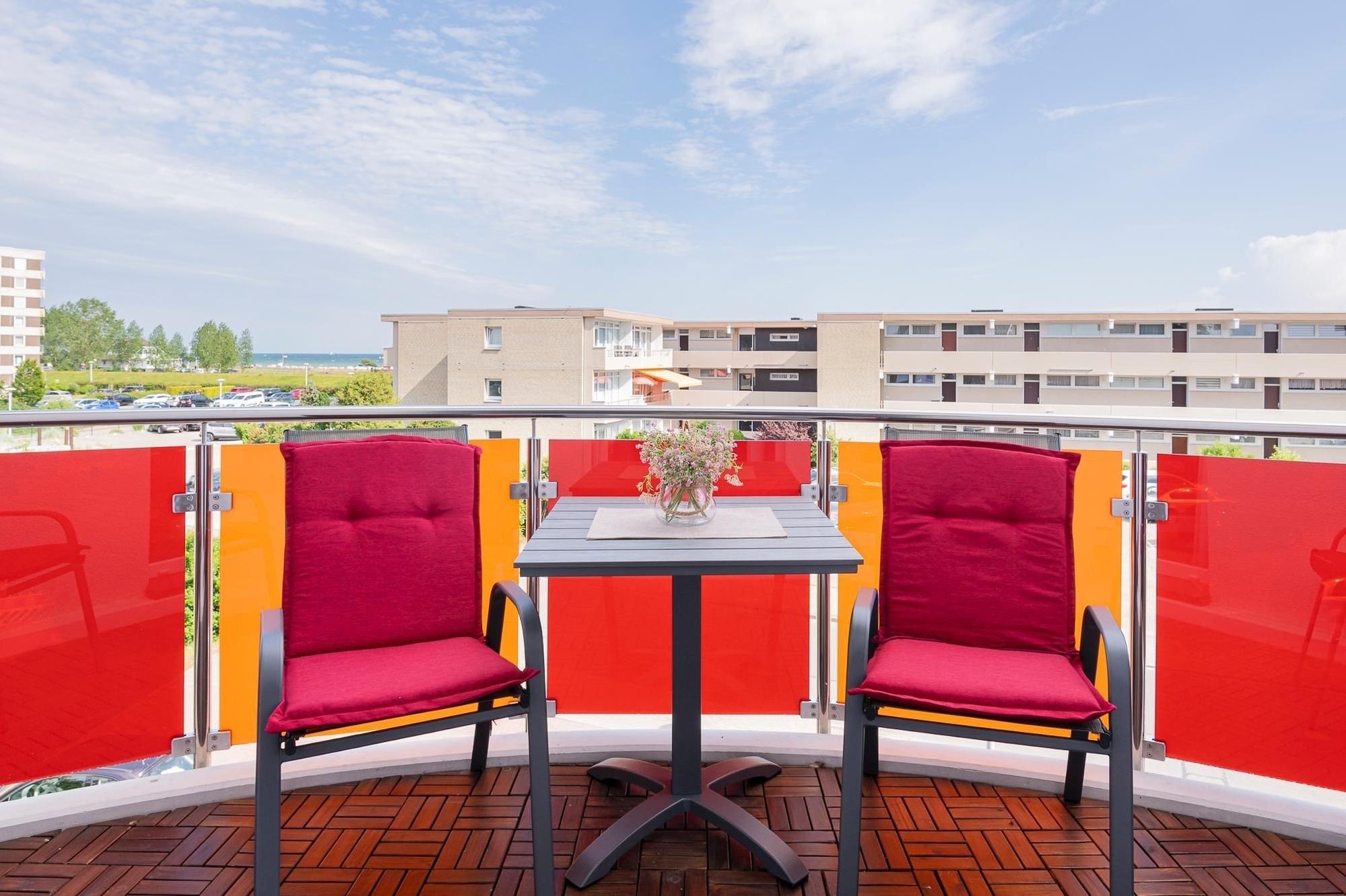Mit einer Wohnfläche von ca. 64 m², zwei separaten Schlafzimmern, tageslichthellem Badezimmer mit bodentiefer Dusche, offenem Wohn-/Essbereich mit TV und integrierter Küche, sowie zwei Balkonen mit Meerblick erwartet Sie dieses moderne und hochwertige Feriendomizil für bis zu 4 Erwachsene! Eines der beiden Schlafzimmer ist ausgestattet mit einem Doppelbett (2x 90x200 cm) über eine Treppe im Flur gelangen Sie in das 2. Schlafzimmer mit französischem Bett (160x200 cm). Für wohlige Wärme in der Wohnung sorgt die Fußbodenheizung. Der WLAN-Anschluss ist inklusive.