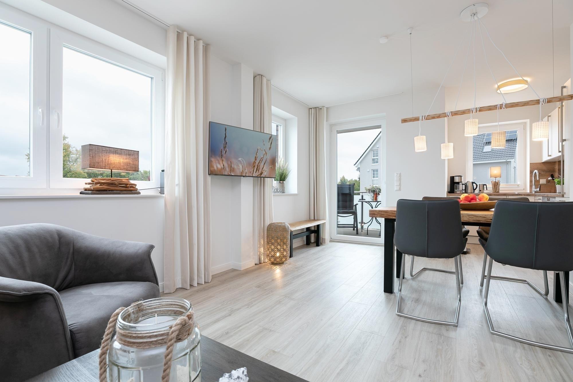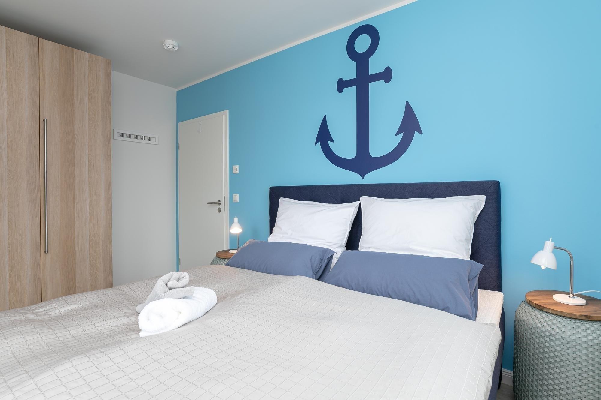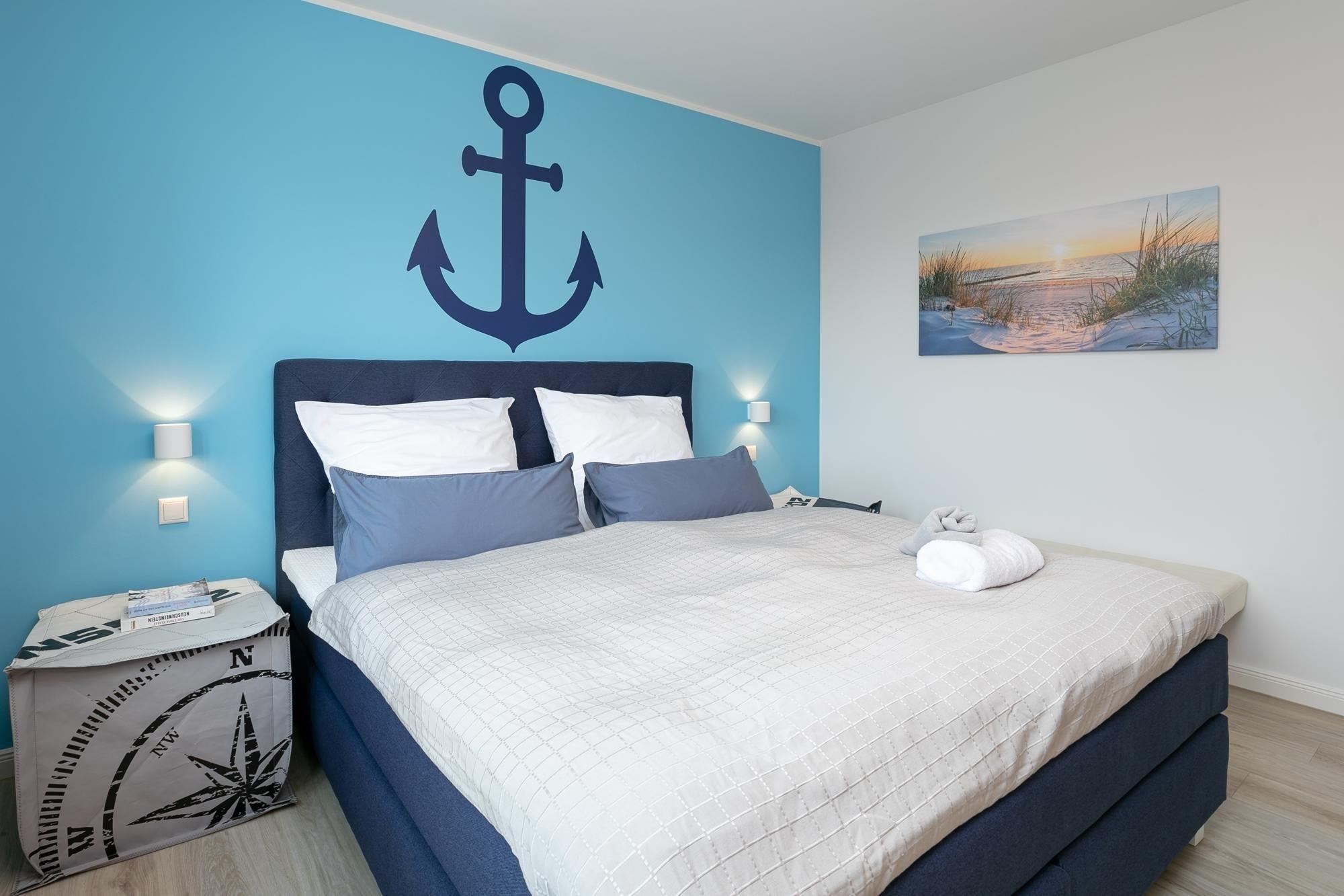 Diese Ferienunterkunft eignet sich für 4 Personen. Auf ca. 67 m² verteilen sich ein maritim gestalteter Wohnraum mit perfekt integrierter und gut ausgestatteter Küche, zwei separate Schlafräume mit je einem Boxspring-Doppelbett (180x200 cm) und ein Badezimmer. Die große Couch lädt Sie ein, die Füße hochzulegen und den Alltagsstress ganz hinter sich zu lassen. Helle Farben und liebevolle Details sorgen für Ruhe und Entspannung. Um dabei perfekt unterstützt zu werden, bieten WLAN, eine Soundbox und ein Fernseher mediale und musikalische Untermalung. Nach entspannten Nächten im einem der beiden rückenfreundlichen Boxspringbetten können Sie den Tag auf dem Balkon mit einem ausgiebigen Frühstück ruhig angehen lassen, während Ihnen die salzige Ostseeluft um die Nase weht. Beide Schlafzimmer lassen sich mit Rollläden und Gardinen verdunkeln. Das Tageslicht-Badezimmer mit dezenten und hellen Fliesen überzeugt mit einer bodentiefen Dusche und einem beheizbaren Handtuchhalter. In der gesamten Wohnung sorgt eine Fußbodenheizung für angenehme Wärme.