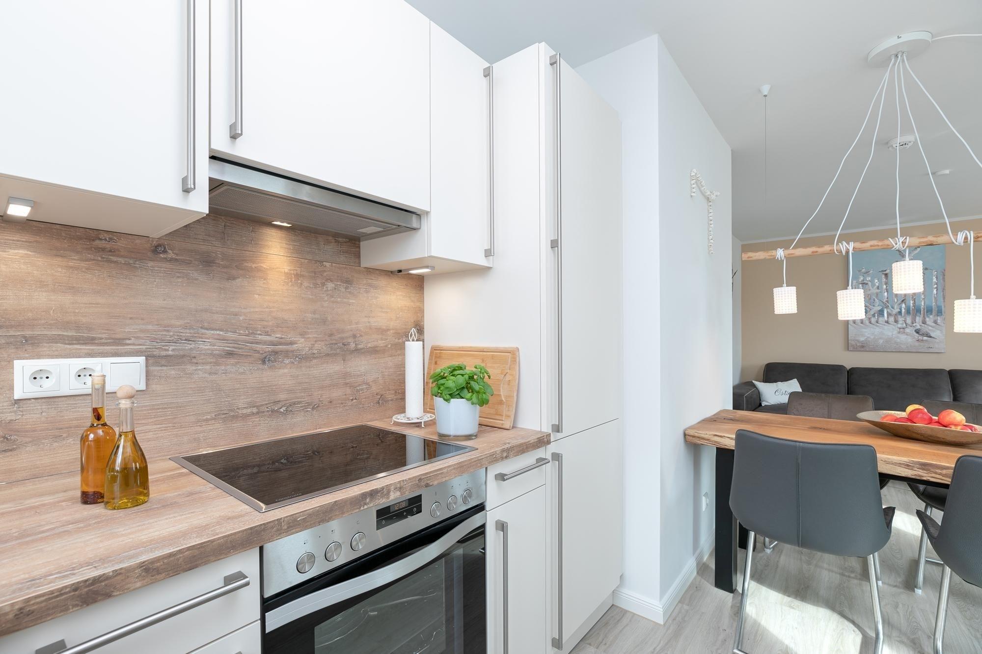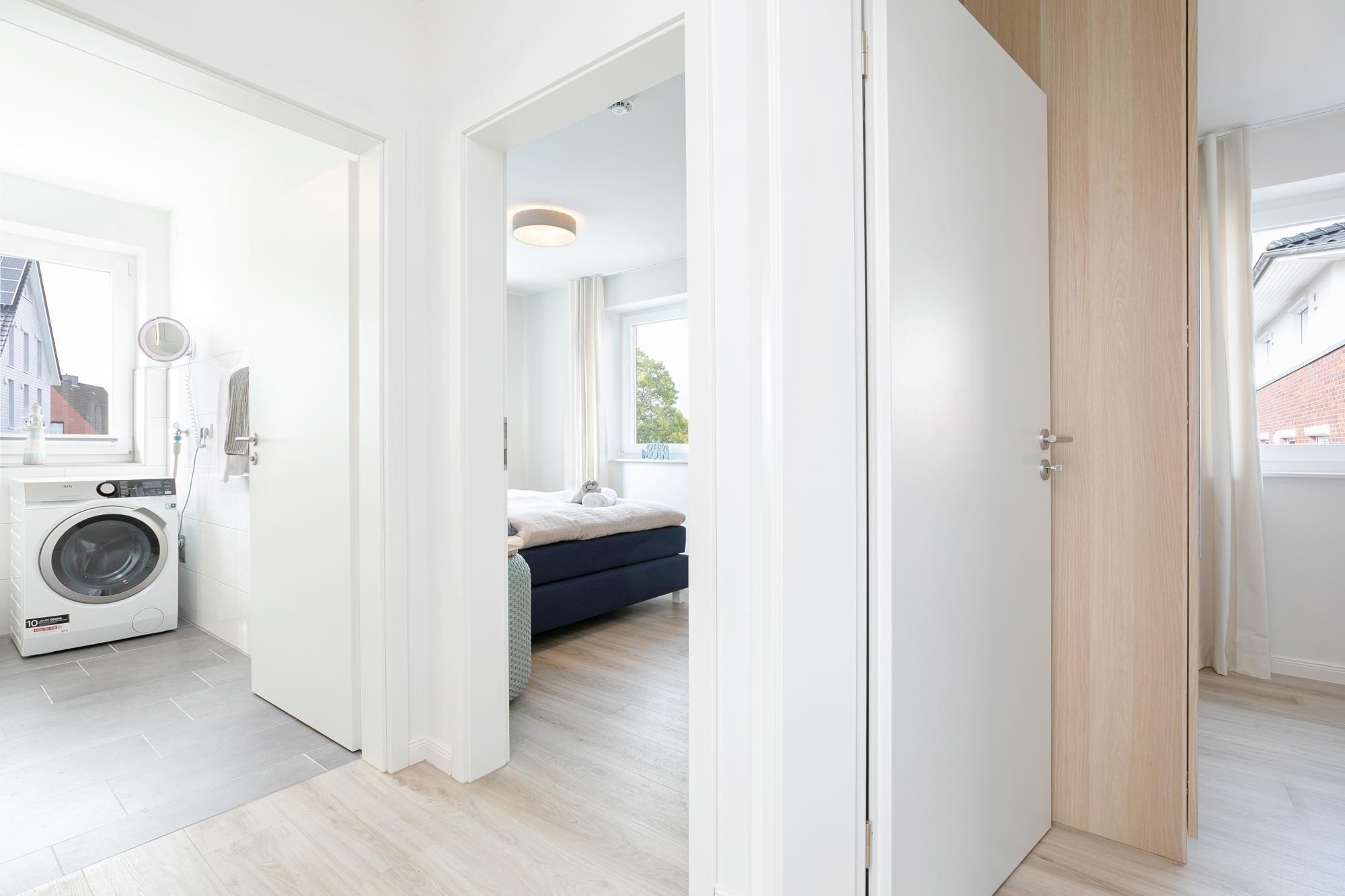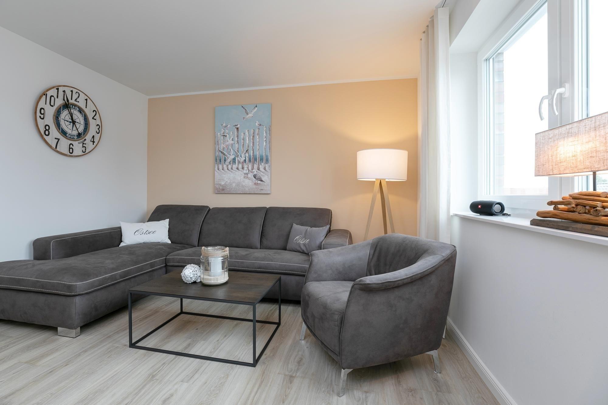 Diese Ferienunterkunft eignet sich für 4 Personen. Auf ca. 67 m² verteilen sich ein maritim gestalteter Wohnraum mit perfekt integrierter und gut ausgestatteter Küche, zwei separate Schlafräume mit je einem Boxspring-Doppelbett (180x200 cm) und ein Badezimmer. Die große Couch lädt Sie ein, die Füße hochzulegen und den Alltagsstress ganz hinter sich zu lassen. Helle Farben und liebevolle Details sorgen für Ruhe und Entspannung. Um dabei perfekt unterstützt zu werden, bieten WLAN, eine Soundbox und ein Fernseher mediale und musikalische Untermalung. Nach entspannten Nächten im einem der beiden rückenfreundlichen Boxspringbetten können Sie den Tag auf dem Balkon mit einem ausgiebigen Frühstück ruhig angehen lassen, während Ihnen die salzige Ostseeluft um die Nase weht. Beide Schlafzimmer lassen sich mit Rollläden und Gardinen verdunkeln. Das Tageslicht-Badezimmer mit dezenten und hellen Fliesen überzeugt mit einer bodentiefen Dusche und einem beheizbaren Handtuchhalter. In der gesamten Wohnung sorgt eine Fußbodenheizung für angenehme Wärme.