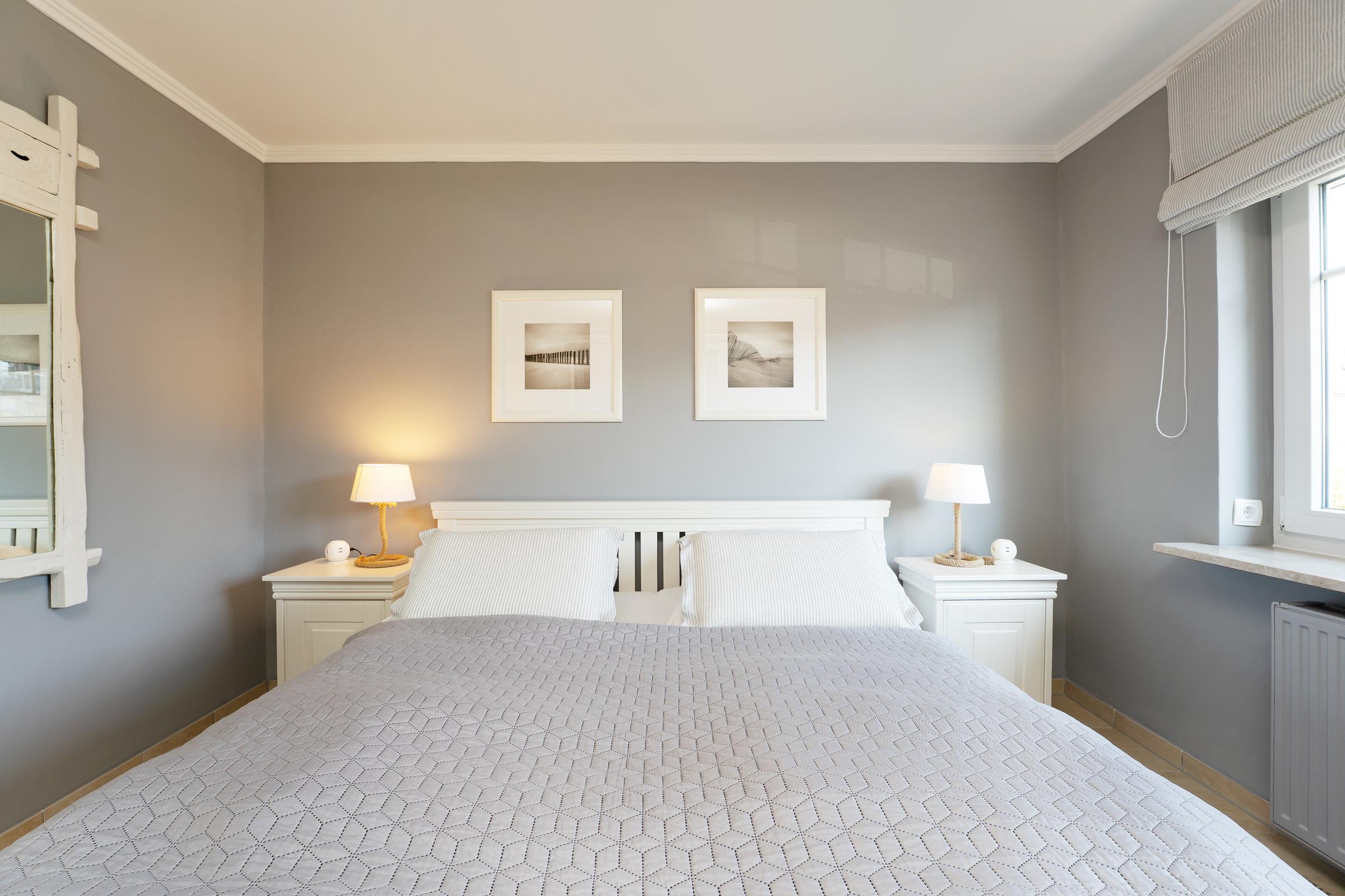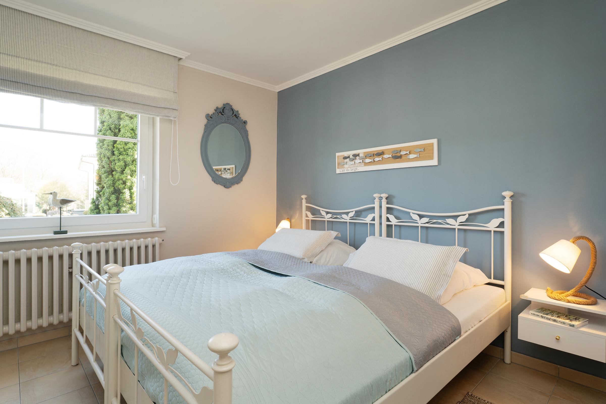 Schlafzimmer 1: 1 Doppelbett (2x 90x200 cm, elektrisches Lattenrost), Kleiderschrank, Verdunkelung (elektrische Rollläden)