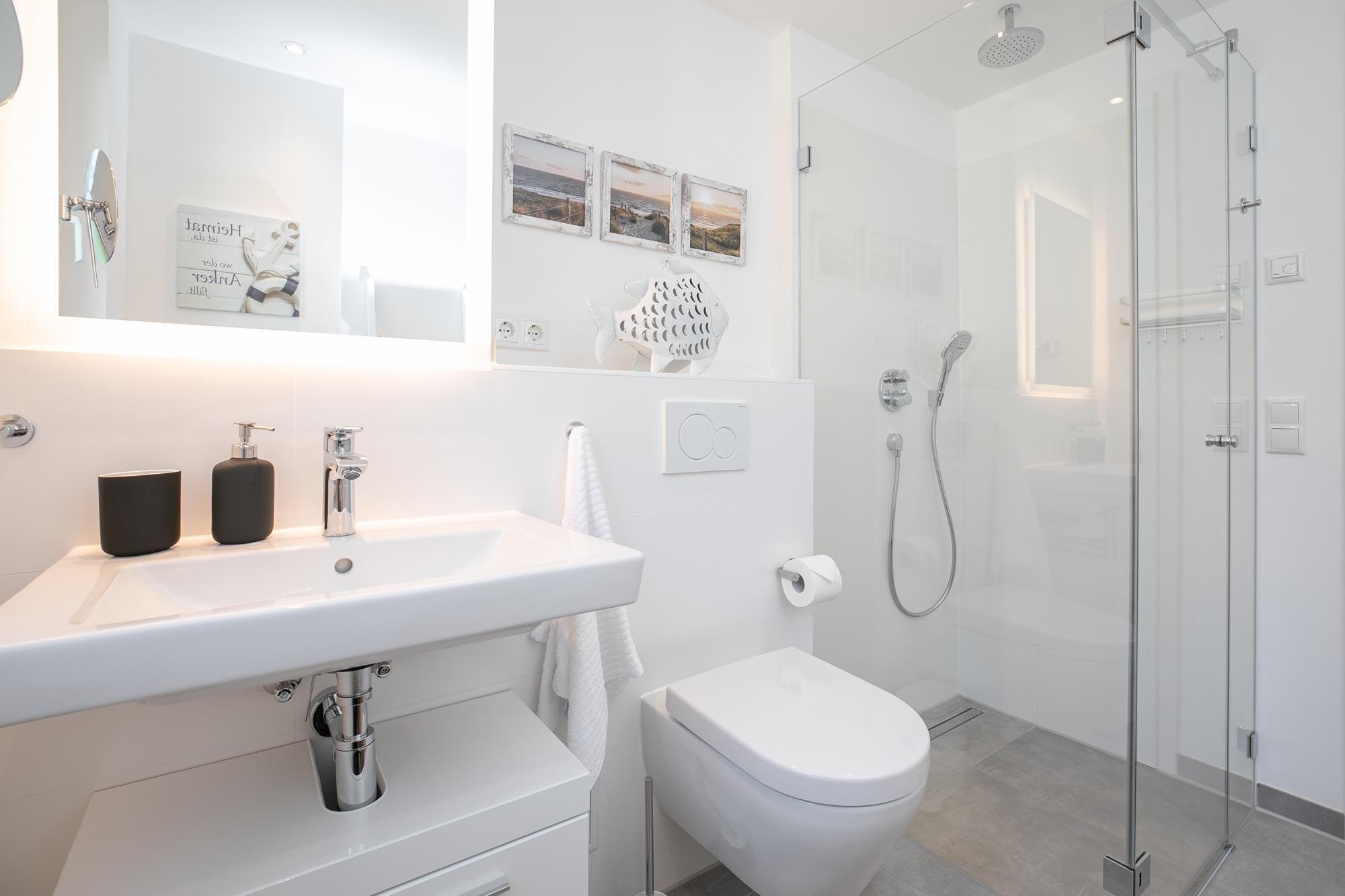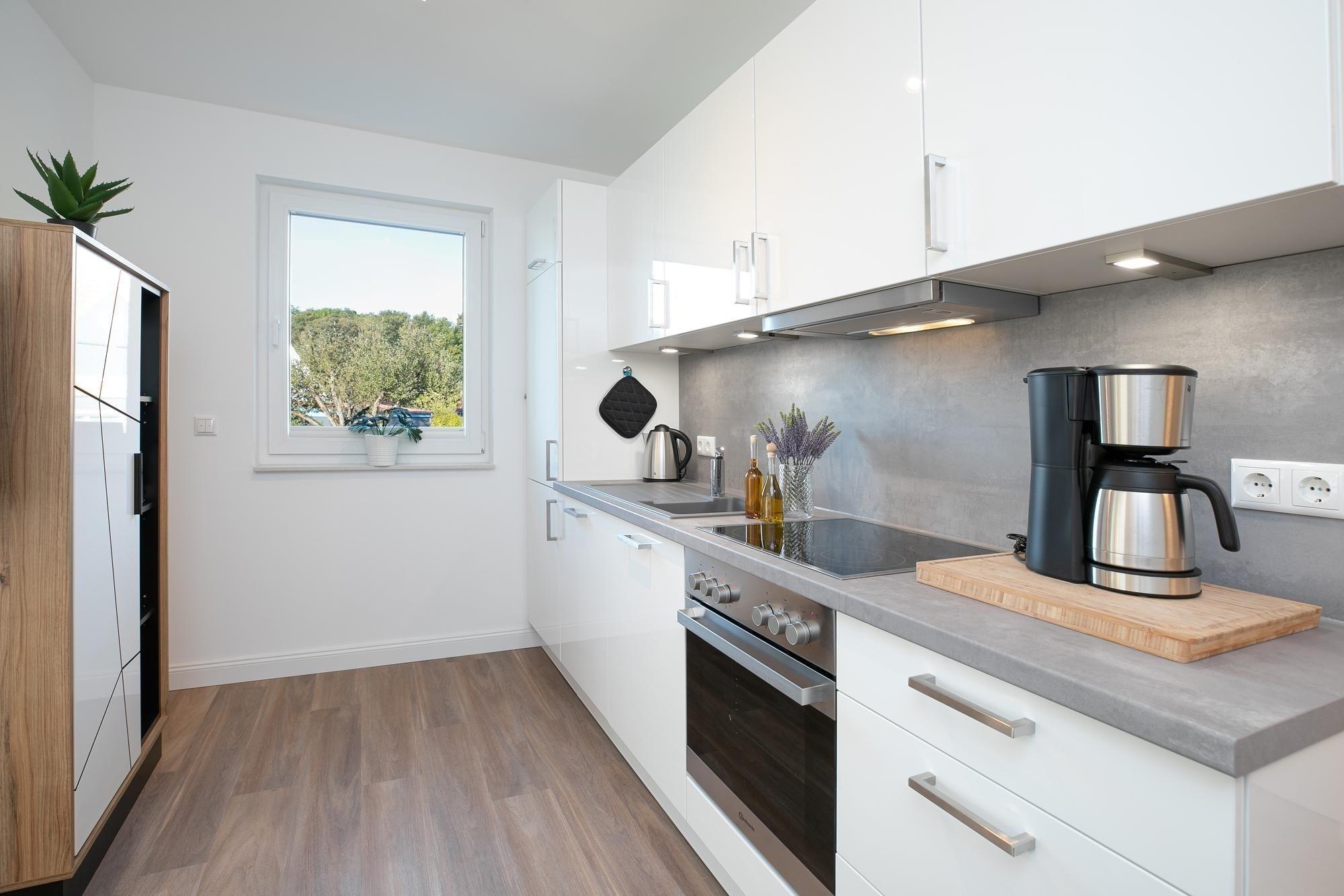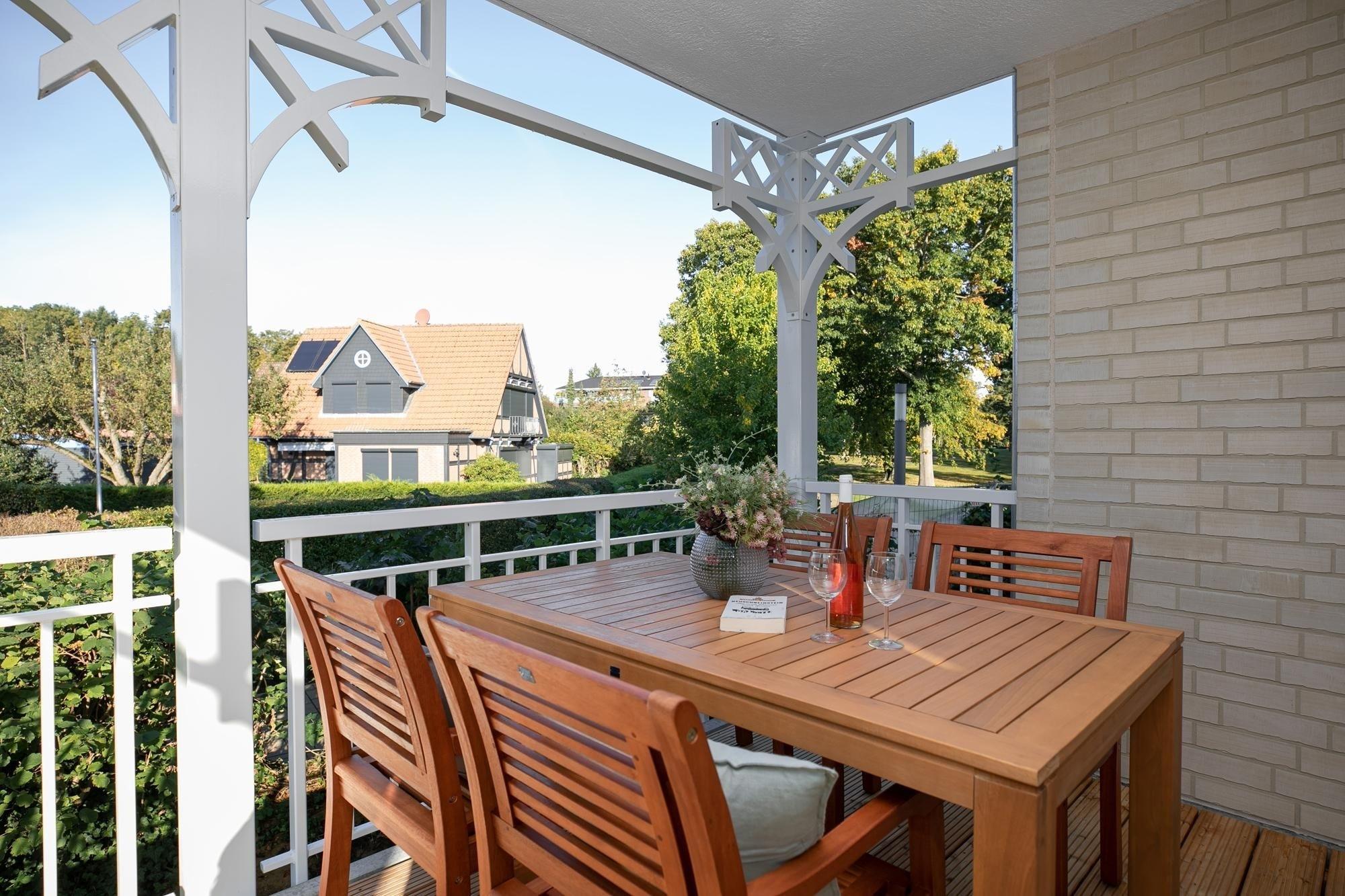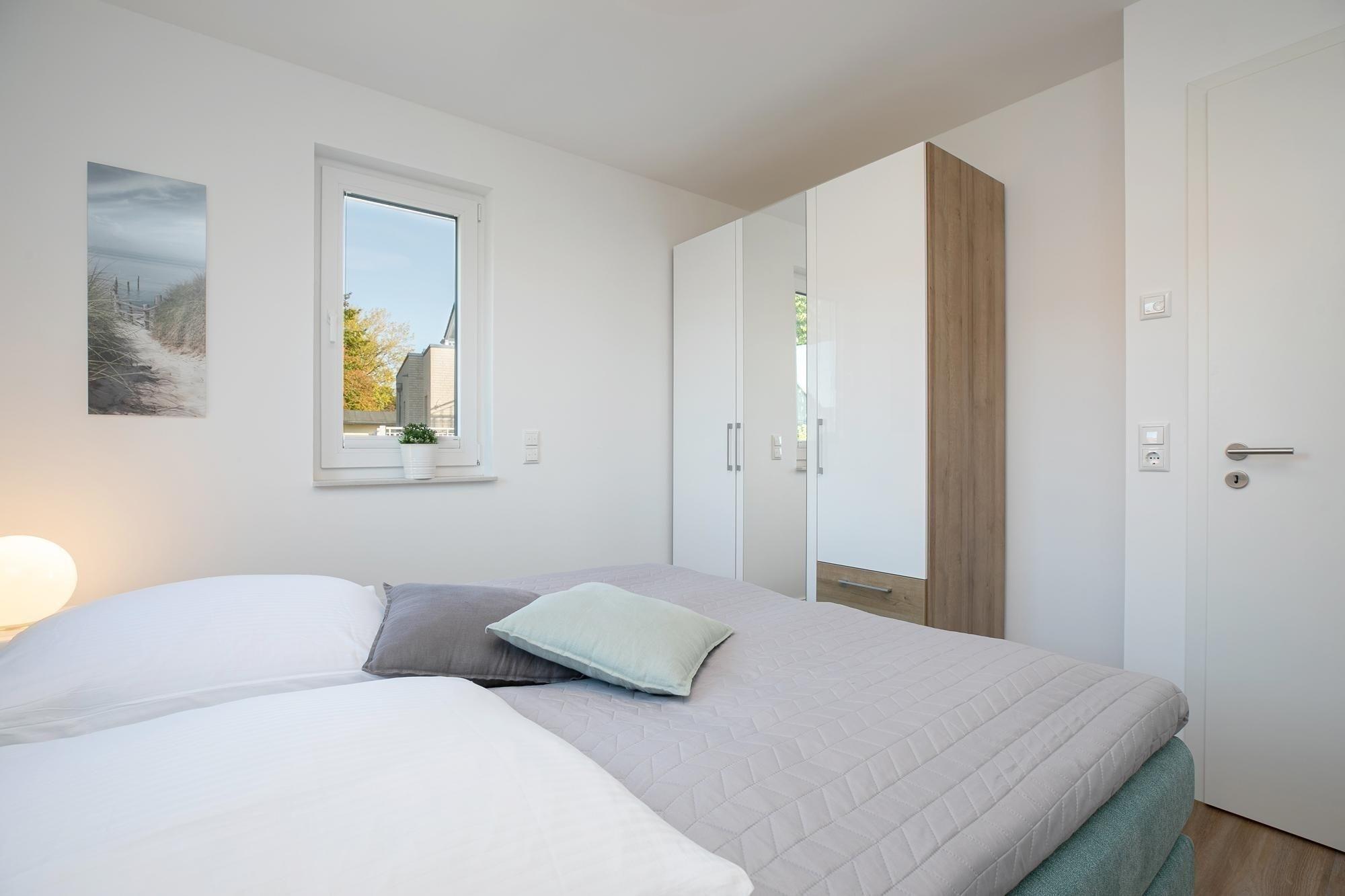 Ein schicker Wohnbereich begrüßt Sie und das bequeme Sofa verspricht kuschelige Abende zu Zweit bei einem Glas Wein und guten Gesprächen oder langen Kinoabenden vor dem Flat-TV. Loggen Sie sich in das kostenfreie WLAN-Netzwerk ein und lassen Sie sich von Ihrer Lieblingsmusik auch im Urlaub begleiten. Verwöhnen Sie sich im Urlaub mit kulinarischen Köstlichkeiten, die Sie in der offenen, voll ausgestatteten Küche mühelos zubereiten können. Nach einem ausgiebigen Frühstück auf Ihrem überdachten 15m² großen Balkon können Sie schwungvoll in den Tag starten. Auch der schönste Urlaubstag geht mal zu Ende - für traumhafte Nächte sorgt dann das komfortable Boxspringbett mit Topper (180x200 cm) im separaten Schlafzimmer, dass sich über Plissees und/oder elektrische Rollläden verdunkeln lässt. Ein geräumiger Kleiderschrank bietet ausreichend Platz für Ihre Urlaubsgarderobe. Ein Tageslichtbad mit bodentiefer Dusche und Fußbodenheizung sorgt für Wellness-Feeling.