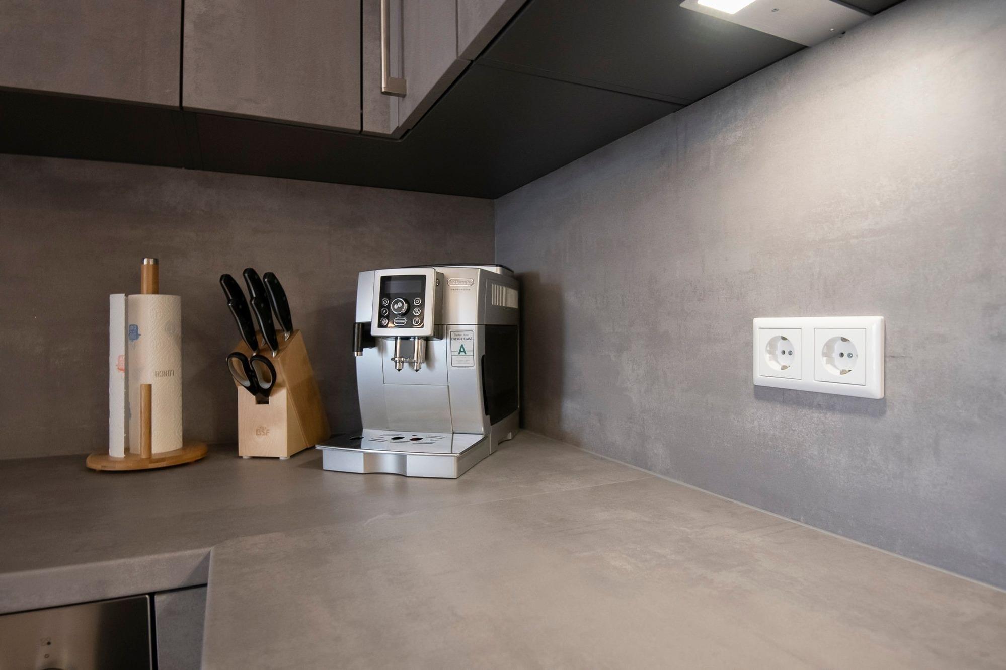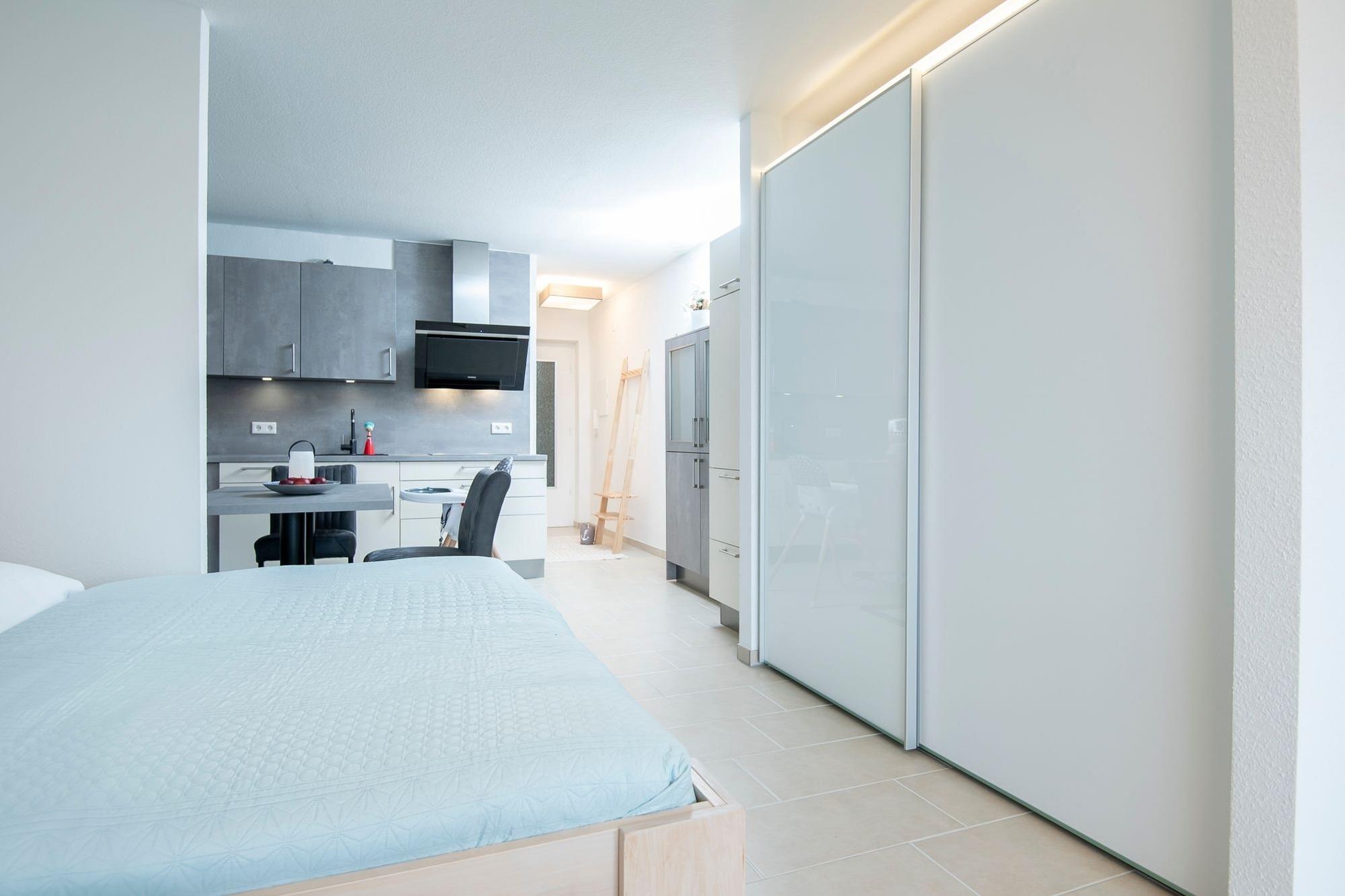 Durch ein geschicktes Einrichtungskonzept ist im offenen Wohn-, Schlaf- und Kochbereich alles komfortabel untergebracht. Tagsüber entspannen Sie auf dem bequemen Sofa, das Sie zur Nacht in eine gemütliche Schlafstätte (ca. 170x200 cm) für 2 Personen verwandeln können. Zusätzlich lädt ein großes Doppelbett (180x200 cm) zum Träumen und Erholen ein. Für Unterhaltung sorgt ein TV-Gerät oder der CD-Player. Verwöhnen Sie sich kulinarisch in der top ausgestatteten Küche mit 4-Kochfeld-Ceranherd, Backofen, Kühlschrank, Spülmaschine, deLonghi Kaffeeautomat, KitchenAid, Waffeleisen, Toaster, Wasserkocher und Sandwichmaker. Auf dem möblierten Balkon mit seitlichem, saisonalen Ostsee-Fernblick können Sie die gute Ostseeluft genießen. Bei Bedarf spendet ein Sonnenschirm Schatten. Ein Bad mit bodentiefer Dusche, Fön und beheizbarem Handtuchhalter komplettiert die Ausstattung dieser schönen Ferienwohnung.