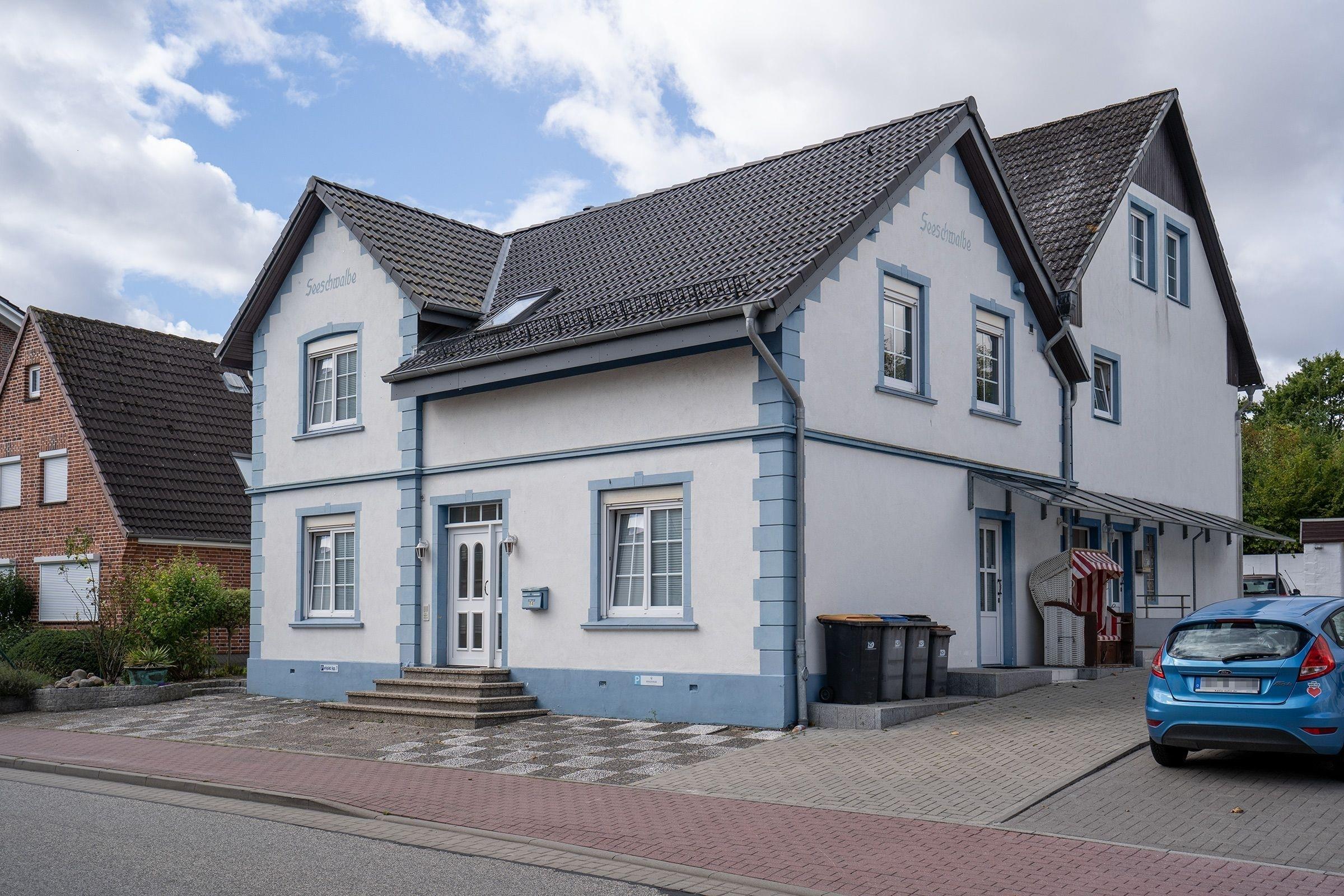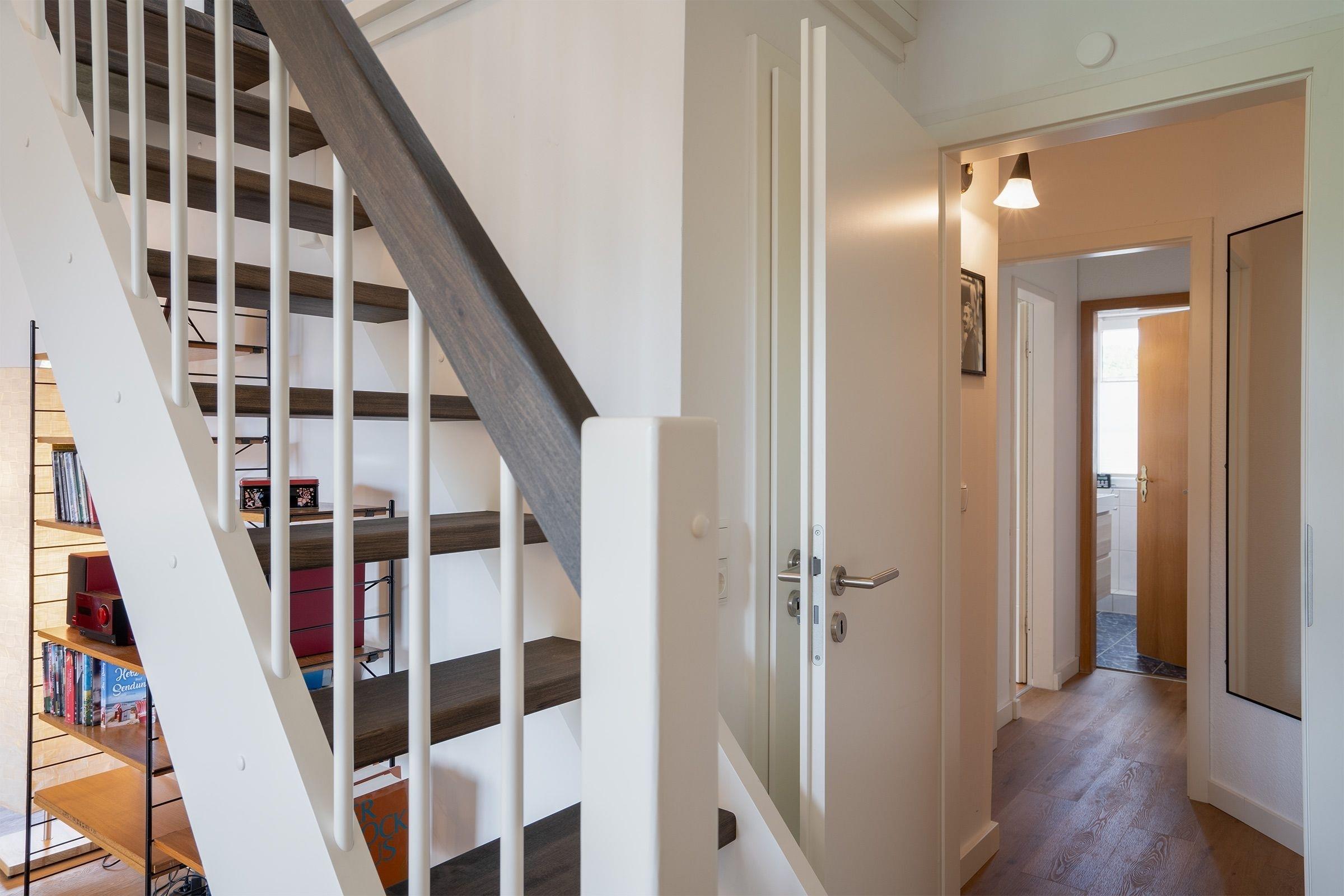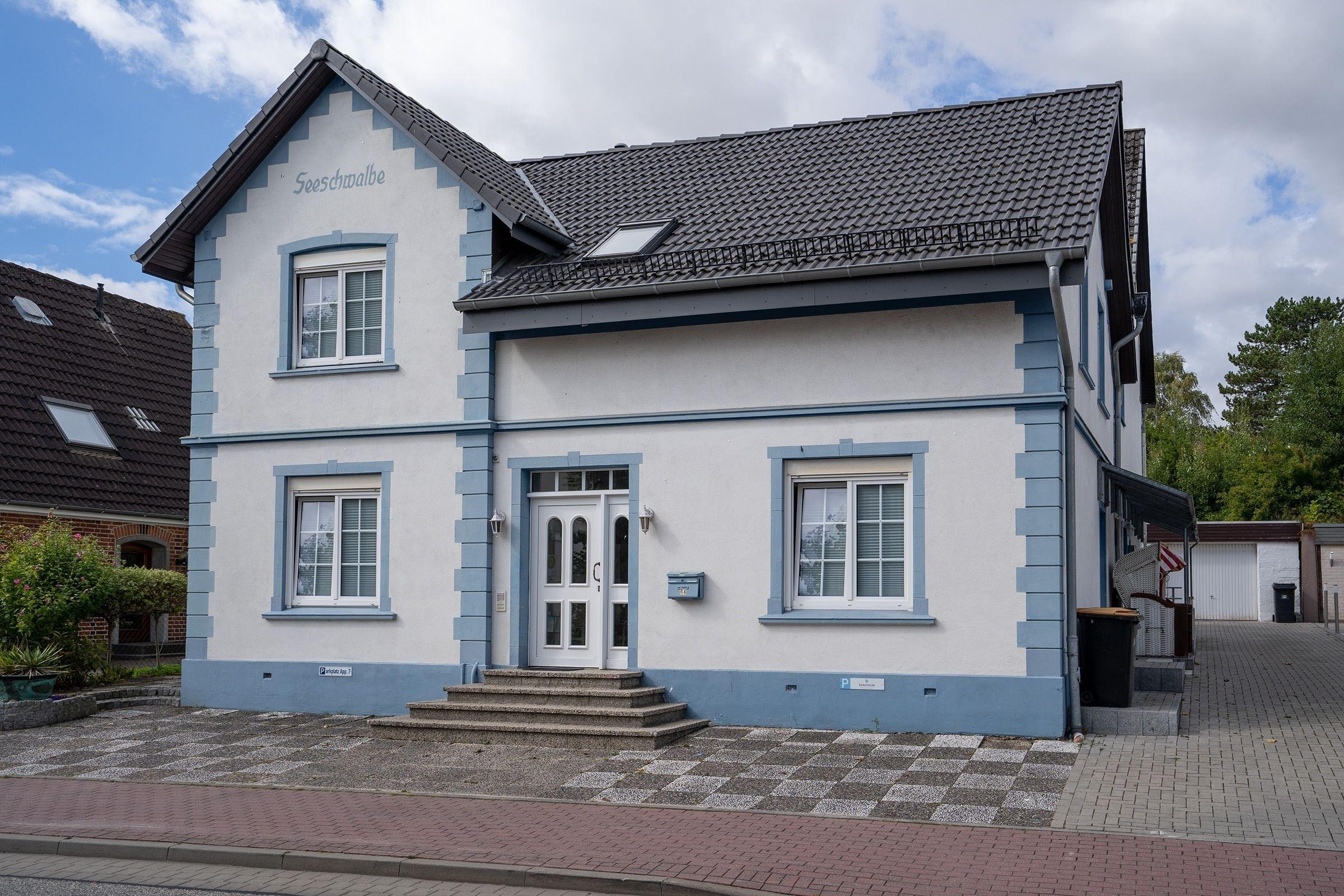 Durch den Haupteingang gelangen Sie über wenige Stufen in den Eingangsbereich der Appartementanlage Seeschwalbe mit nur 7 Wohneinheiten. Über eine urige Holztreppe erreichen Sie auf der 1. Etage (rechte Seite) Ihre Wohnung. Beim Eintreten befinden Sie sich direkt im geräumigen Wohn- und Essbereich mit offener Küche und vielen Fenstern. In der Küche stehen Ihnen alle notwendigen Küchengeräte zur Verfügung und hier ist viel Platz, um ausgiebig mit der Familie zu kochen. Den Wohn- und Essbereich können Sie mit einem Vorhang in eine kleine Küche und einen separaten Wohnraum mit Ecksofa (Schlafmöglichkeit für 1 Person, 135x200cm), Kleiderschrank, Musikanlage und Flachbildfernseher aufteilen.