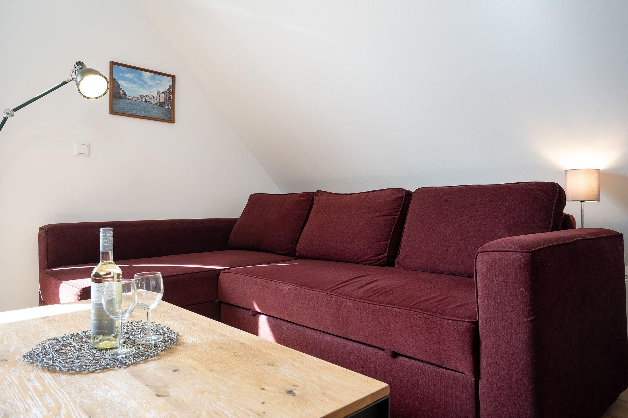 Wohnzimmer (1. OG): 1 Schlafsofa (135x200cm), Verdunkelungsmöglichkeit (Rollos)