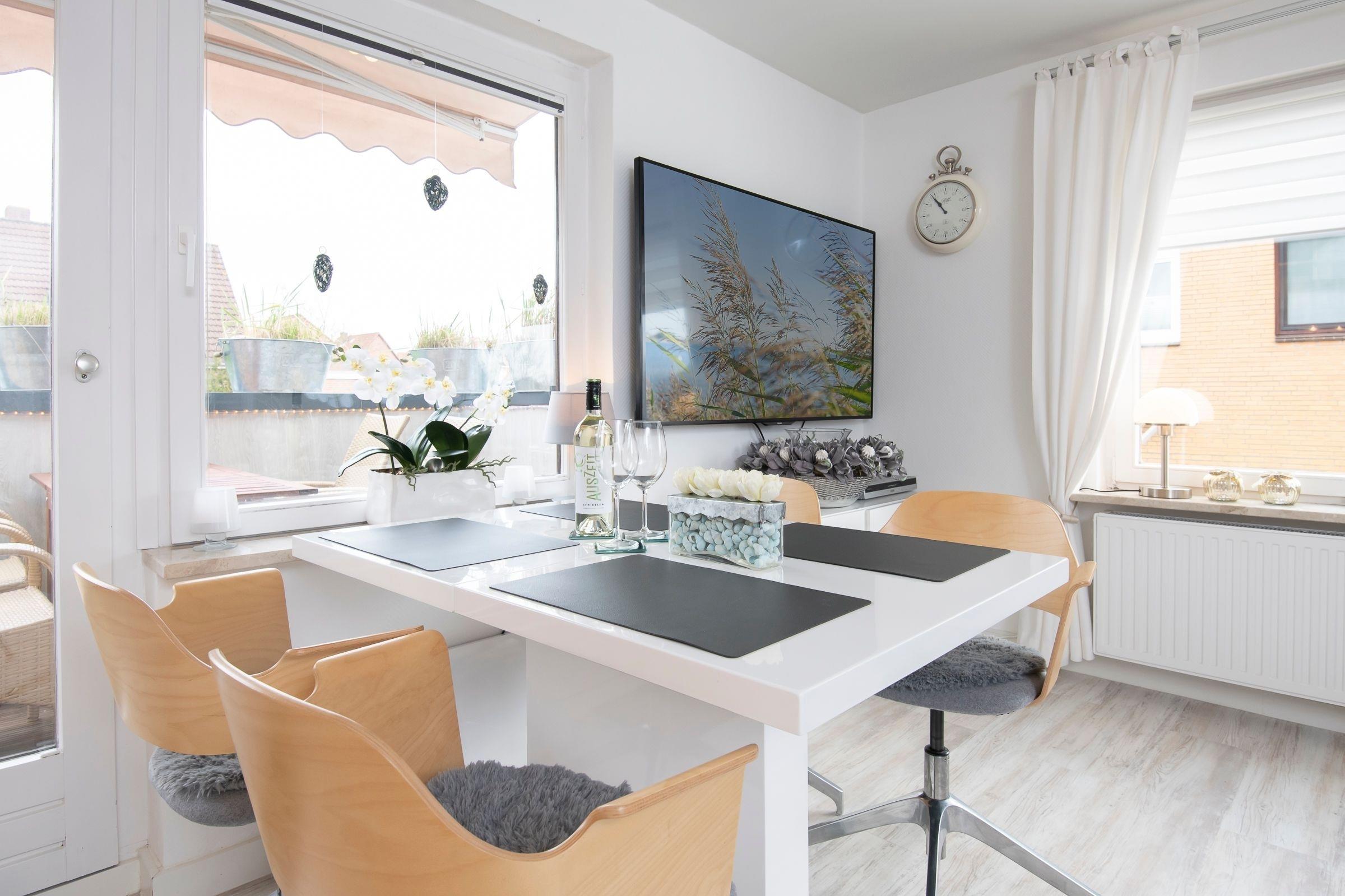 Treten Sie ein in diese moderne 2-Zimmer-Ferienwohnung im Hochparterre mit Balkon. Die Wohnung bietet auf ca. 56 m² ausreichend Platz für max. 4 Personen.