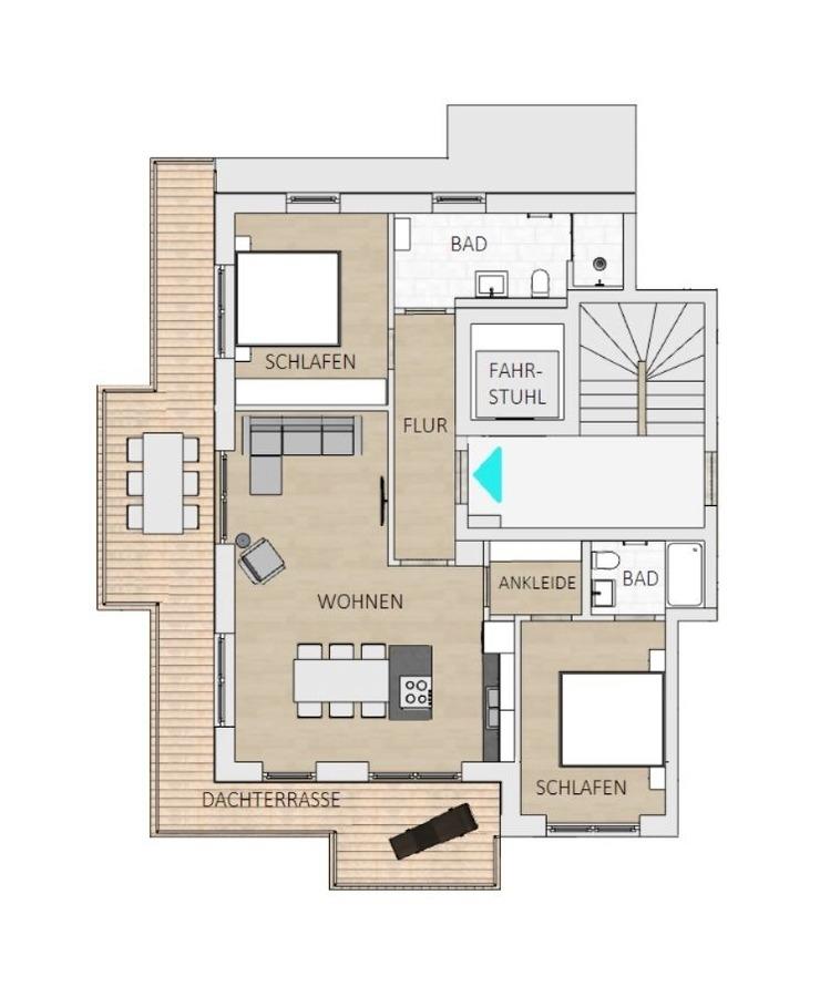 Wundervolle Urlaubstage an der Ostsee können Sie in dieser 75 m² großen 3-Zimmer-Penthouse-Wohnung mit toller Rundum-Dachterrasse für 2 Erwachsene und bis zu 4 Kindern verbringen.