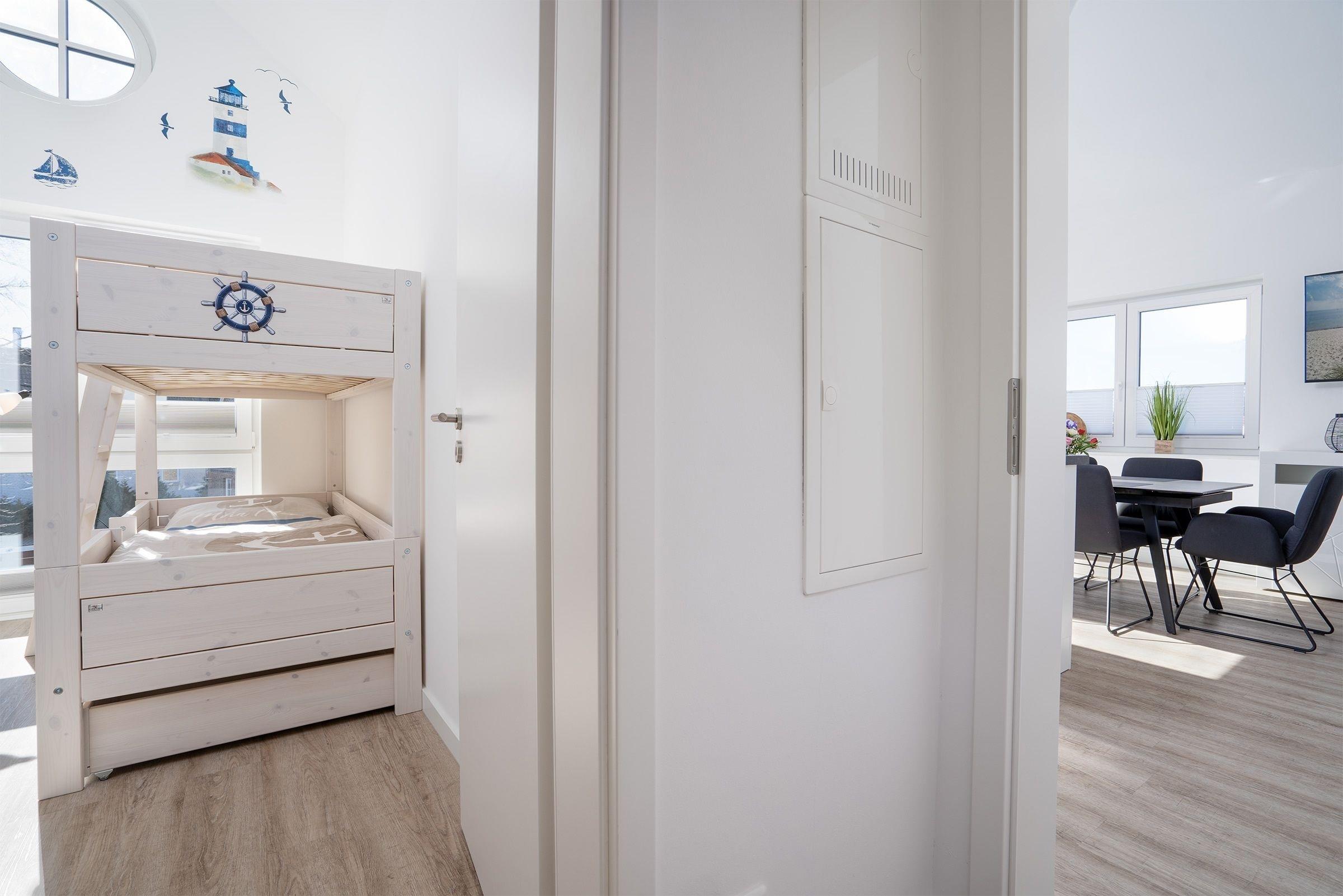 Schlafzimmer 2: 2 Etagenbetten (je 90x200 cm), Verdunkelung (Aussenjalousien)