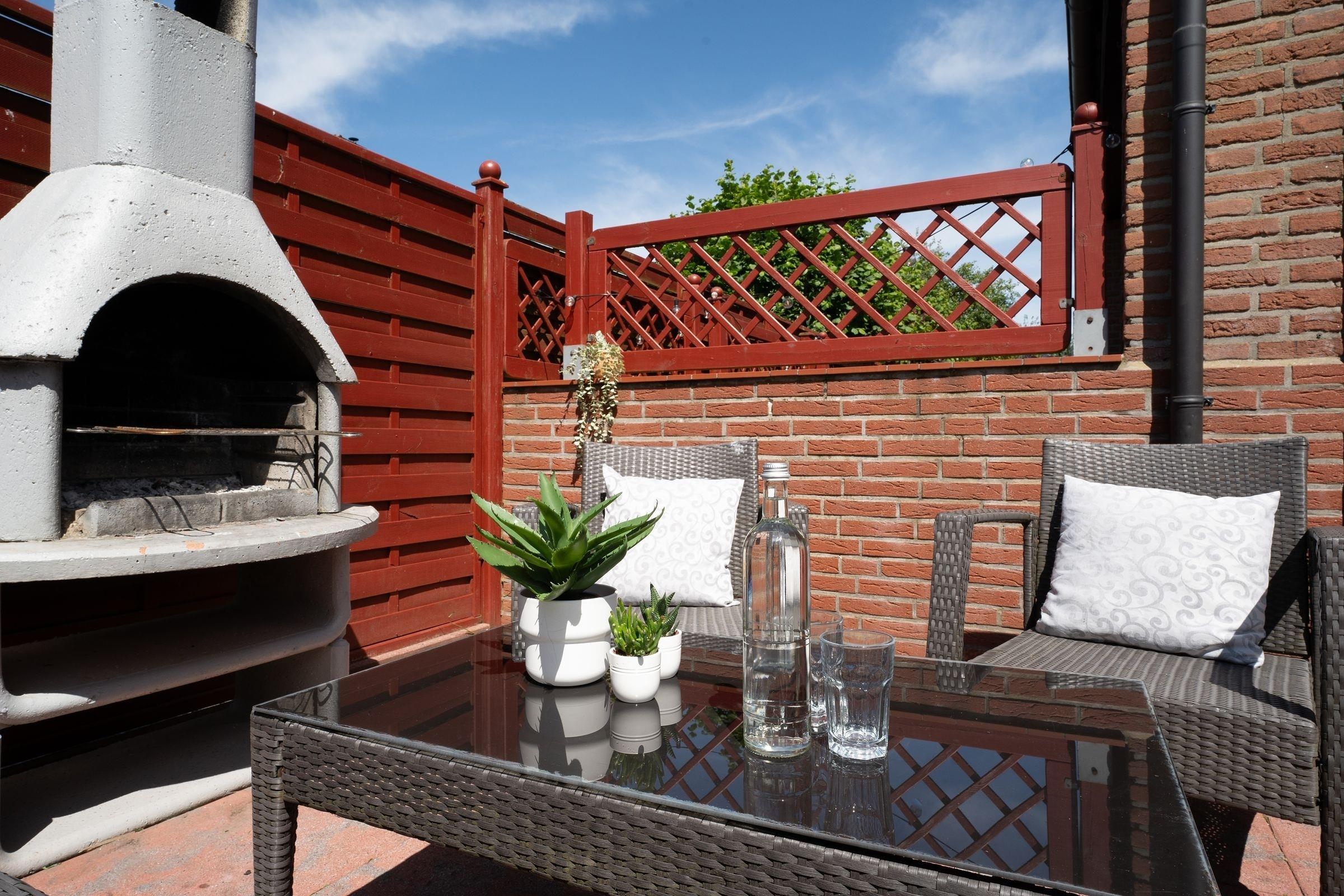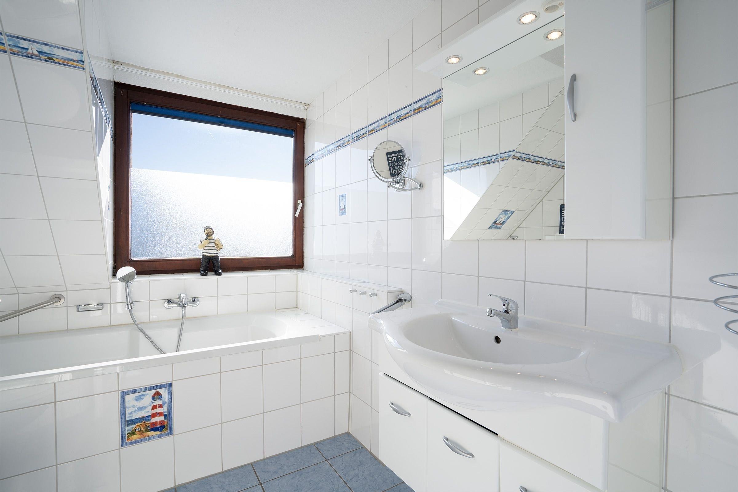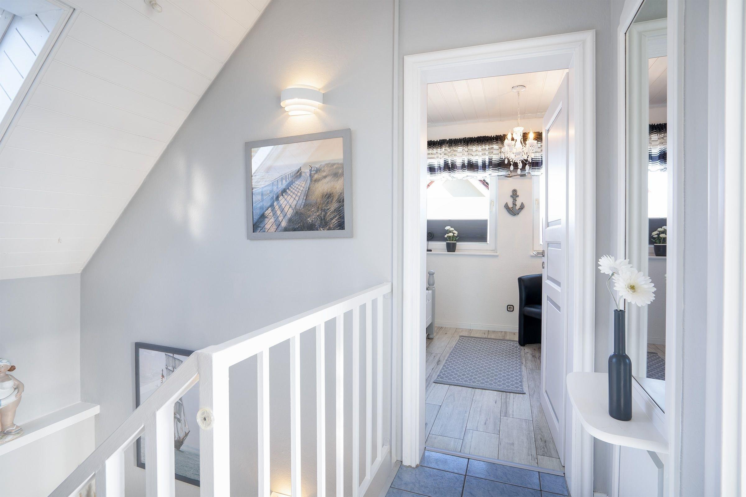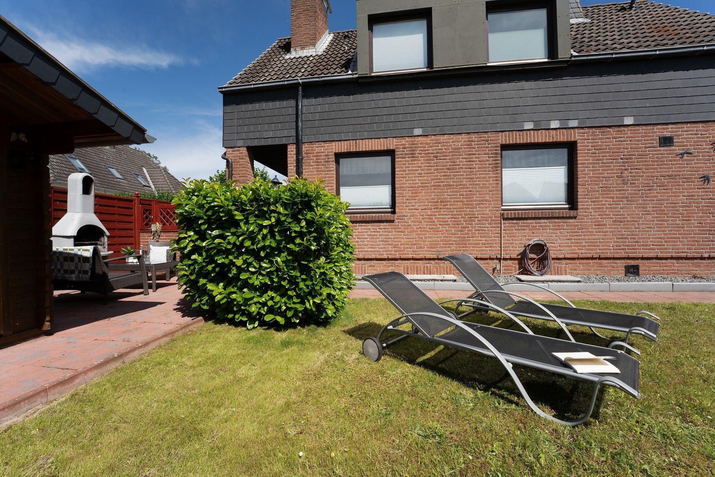 Im Erdgeschoss befindet sich das geräumige, lichtdurchflutete Wohnzimmer mit offenem Kamin. Ein weiteres Sofa kann bei Bedarf in eine zusätzliche Schlafmöglichkeit (160x200 cm) für 2 Personen umgewandelt werden, durch einen Vorhang lässt sich der Schlafbereich optisch vom Rest des Wohnbereichs abtrennen. Von hier aus gelangen Sie auch auf die möblierte Süd-Terrasse und in den Garten. Die große, voll ausgestattete Küche mit Essplatz sowie ein Gäste-WC befinden sich ebenfalls auf dieser Etage. Das Kellergeschoss umfasst ein Schlafzimmer mit Boxspringbett (2x 90x200 cm) und ein Tageslicht-Duschbad. Im Obergeschoss erwarten Sie zwei weitere Schlafzimmer: das Erste ist mit einem Doppelbett (2x 90x200 cm), einem Einzelbett (90x200 cm) und Zugang zum Balkon und das Zweite mit einem kleinen Doppelbett (140x200 cm) ausgestattet. Alle Schlafzimmer im Haus verfügen über einen Kleiderschrank und lassen sich durch Plissees angenehm abdunkeln. Ebenfalls befindet sich im Obergeschoss das 2. Badezimmer mit Badewanne und Dusche. Für die kleinen Gäste stehen im Haus ein Kinderhochstuhl und ein Babybett kostenfrei bereit. WLAN ist ebenfalls inklusive. Das Feriendomizil ist, bis auf Küche und Kellergeschoss, mit einer Fußbodenheizung ausgestattet. Für Unterhaltung sorgen insgesamt 5 Flachbild-Fernseher in allen Schlafzimmern, im Wohnzimmer und in der Küche.