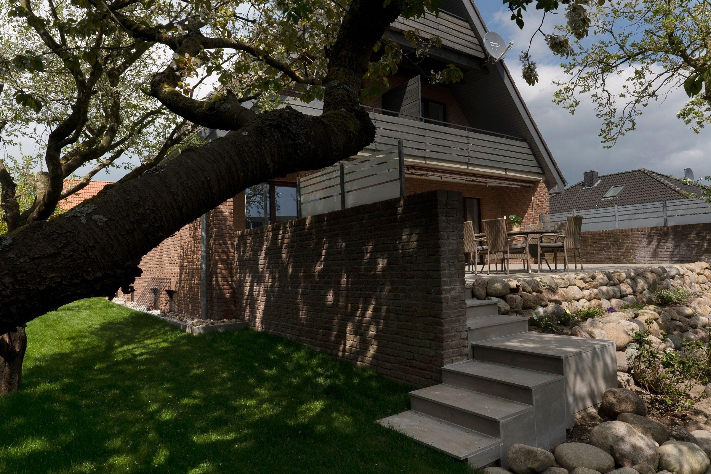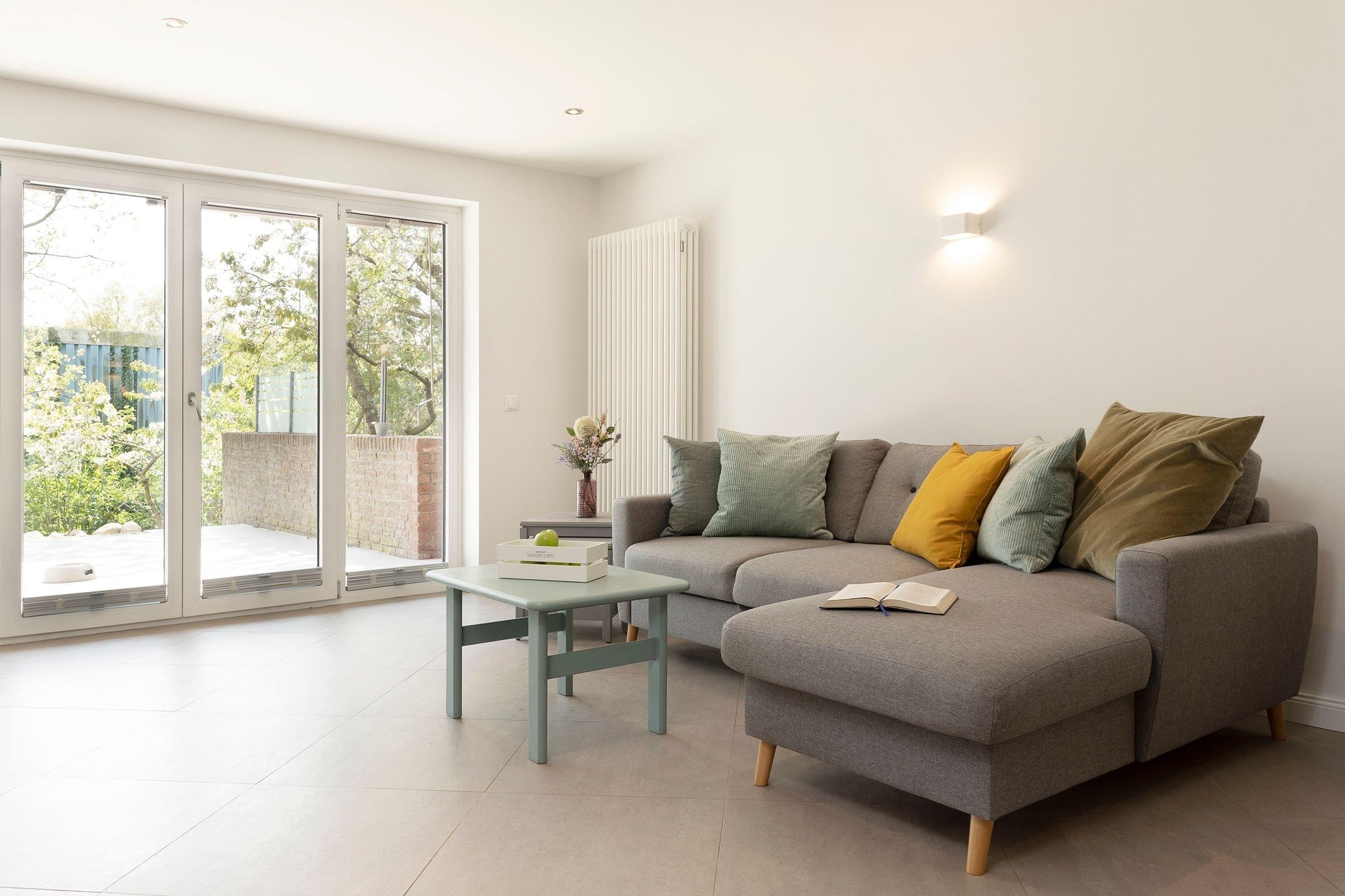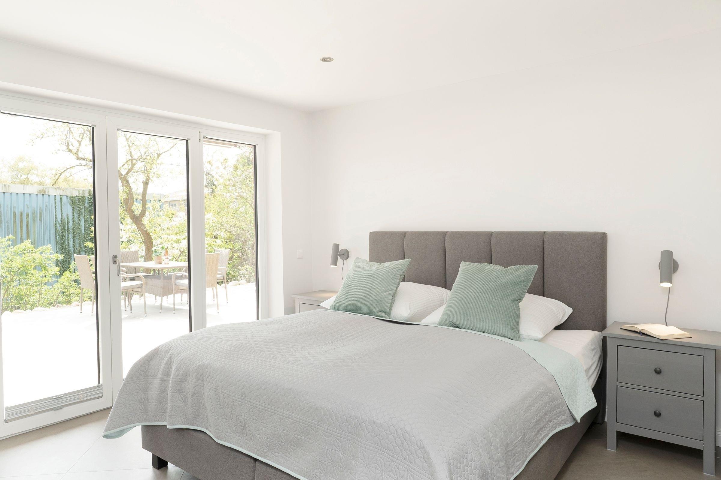 Das schlichte, aber elegante Design im offenen Wohn-/Ess- und Kochbereich wird Sie begeistern. Hier ist für die ganze Familie ausgiebig Platz, um gemeinsame Urlaubsmomente zu genießen - die Einrichtung ist neu und hochwertig, der schöne Eckkamin sorgt für Gemütlichkeit. In der voll ausgestatteten Küche finden Sie alles, um ein leckeres Essen zuzubereiten. Vom Wohnbereich und Schlafzimmer aus haben Sie Zugang zur großzügigen möblierten Terrasse mit Blick in den Garten, der gemeinschaftlich von den Gästen des Hauses genutzt werden kann.