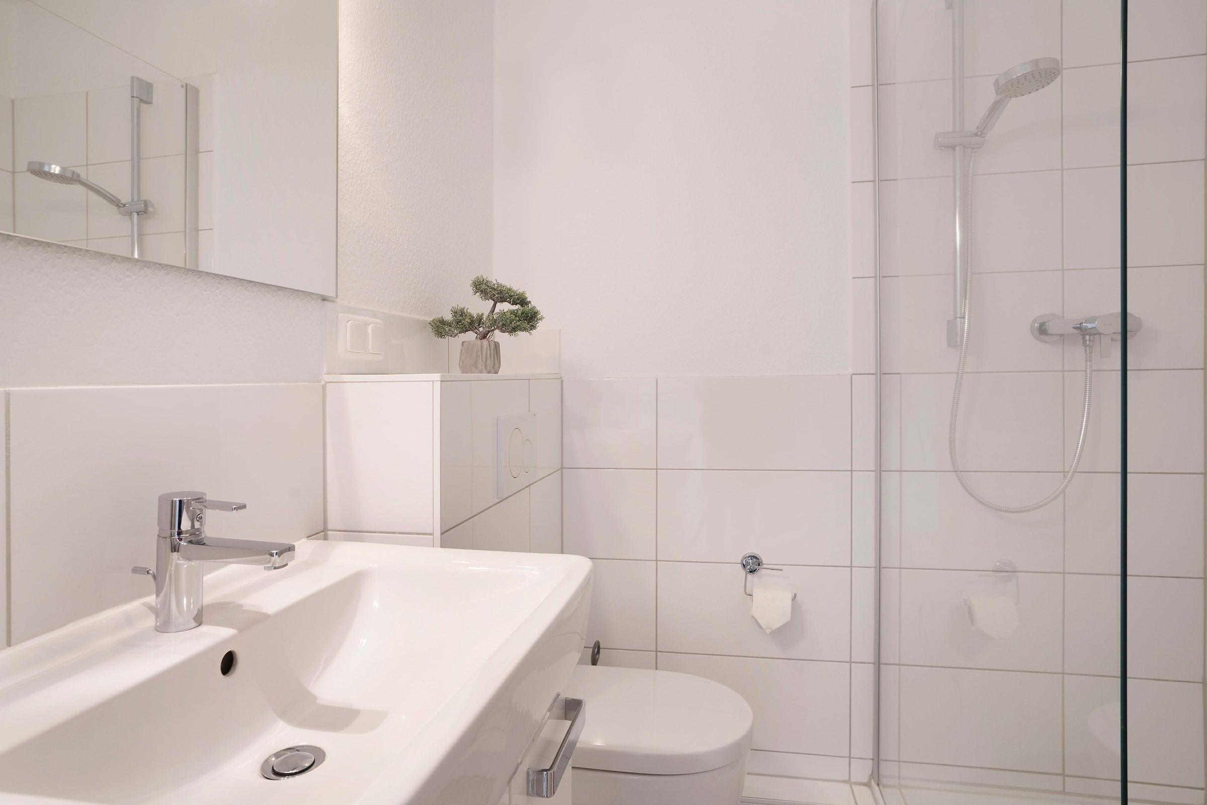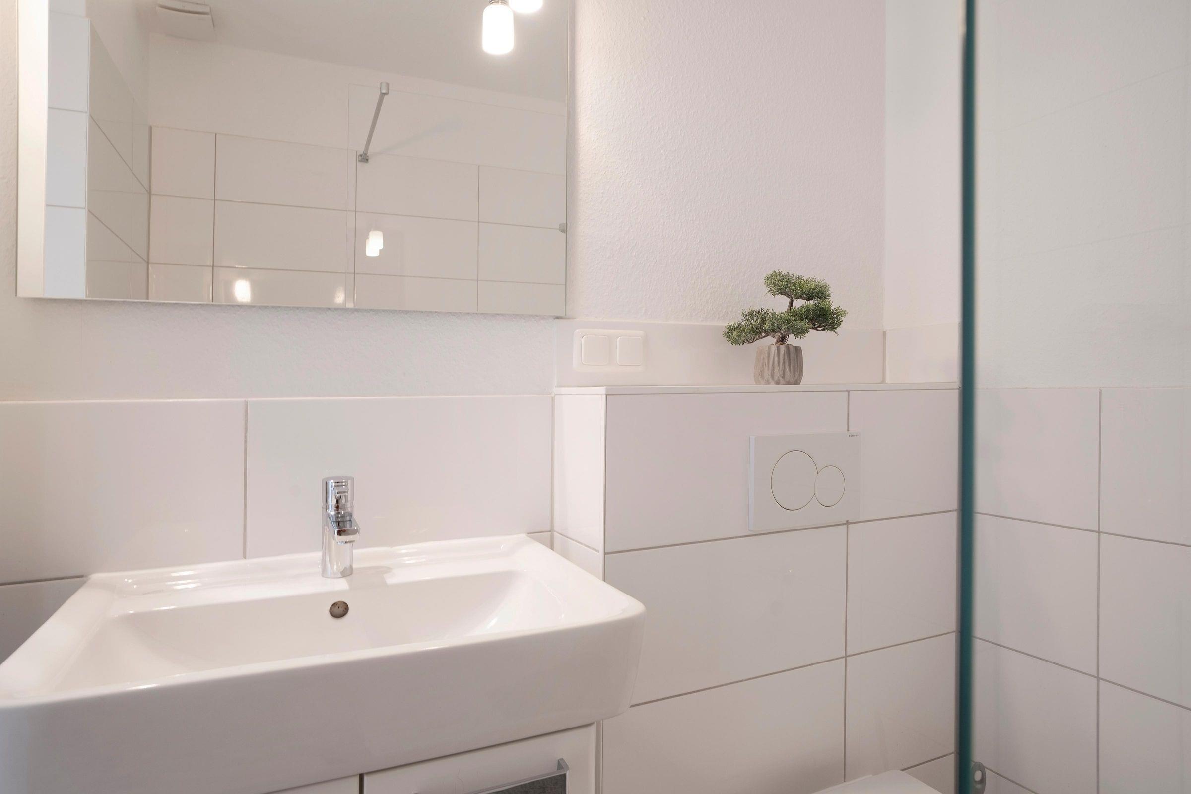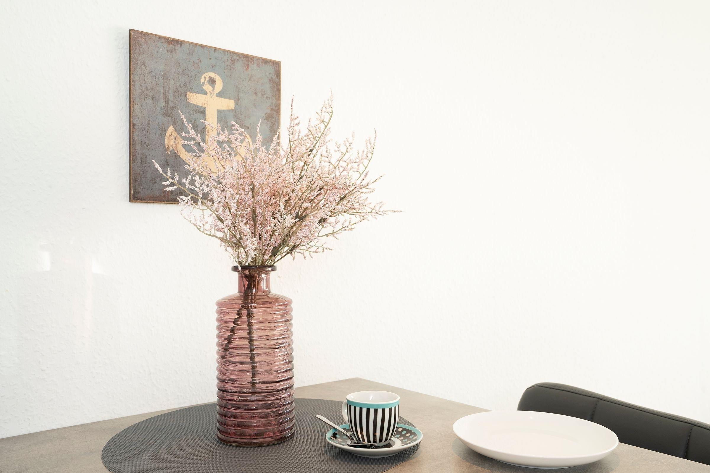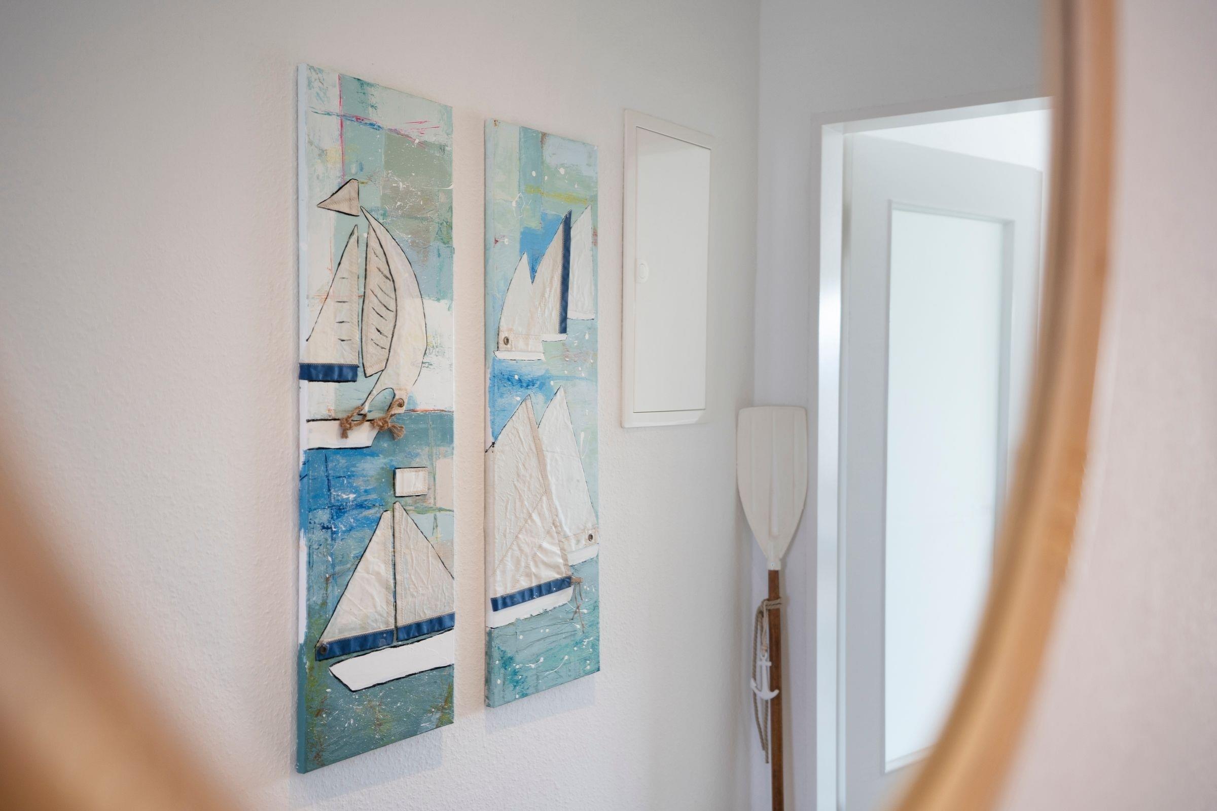 Im ersten Stock des Wohngebäudes empfängt Sie diese gemütliche Ferienwohnung mit einem Flur, der in das offen gestaltete Wohnzimmer mit Essbereich und Küchenzeile mündet. Verbringen Sie hier entspannte Abende auf der gemütlichen Couch vor dem Smart-TV oder entspannen bei einem guten Buch aus der kleinen Bibliothek. Schnell ausgeklappt verwandelt sich die Couch zur einer weiteren Schlafmöglichkeit (160x200 cm). Die angrenzende Küchenzeile ist praktisch ausgestattet mit einer Nespresso-Kapselmaschine, einem Ceran-Feld und einem Kombigerät mit Backofen- und Mikrowellenfunktion. Auf dem möblierten Balkon mit Südausrichtung und Sonnenmarkise können Sie zahlreiche Urlaubsstunden an der frischen Luft genießen.