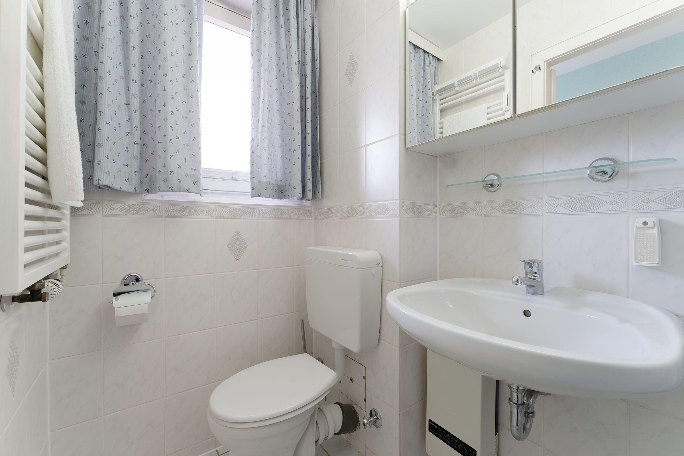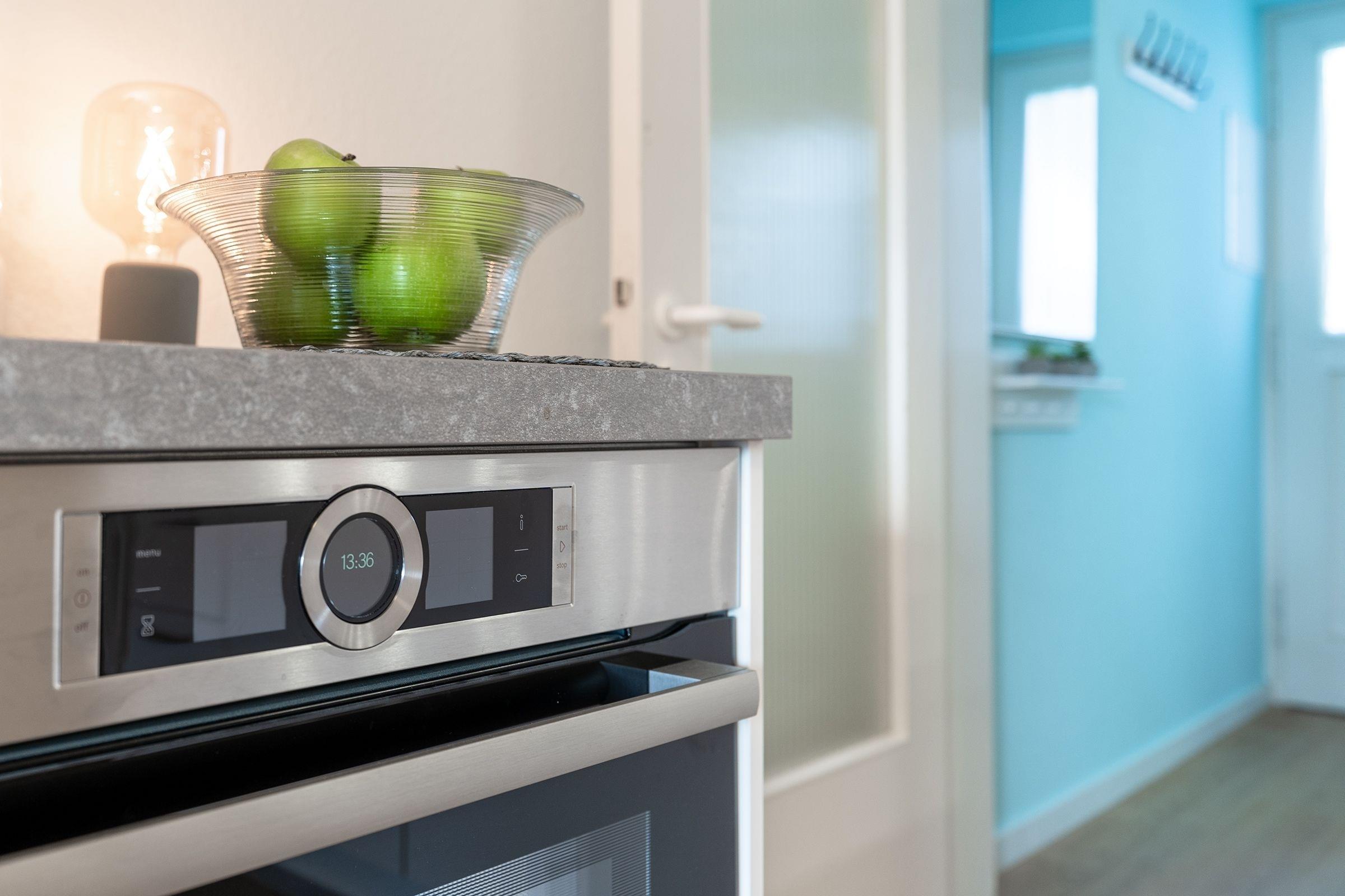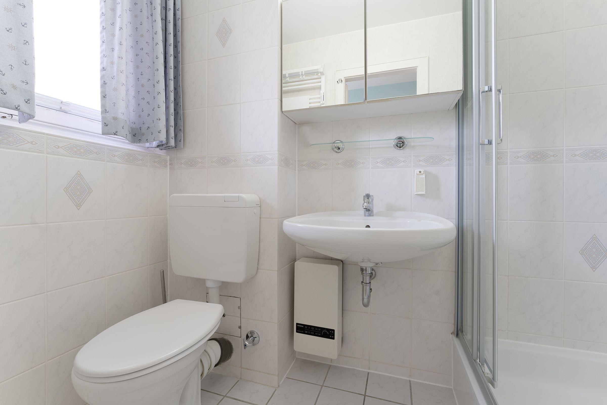 Der offen gestaltete Wohnraum bietet Ihnen neben einem gemütlichen Sofa zwei der drei Schlafplätze durch ein platzsparendes Schrankbett (2x 100x200 cm). Das angrenzende Schlafzimmer verfügt über ein ausklappbares Einzelbett (80x190 cm) für den dritten mitreisenden Gast. Mit der modernen Küche mit Induktionsherd sind Sie bestens gewappnet, wenn Sie sich selbst verpflegen wollen. Für einen gelungenen Start in den Tag bietet diese Wohnung ein Tageslichtbad mit Duschkabine und beheizbarem Handtuchhalter. Wenn Sie am Nachmittag vom nur 50m entfernten Strand zurück kommen, können Sie die Nachmittagssonne auf dem überdachten Balkon mit Markise genießen.