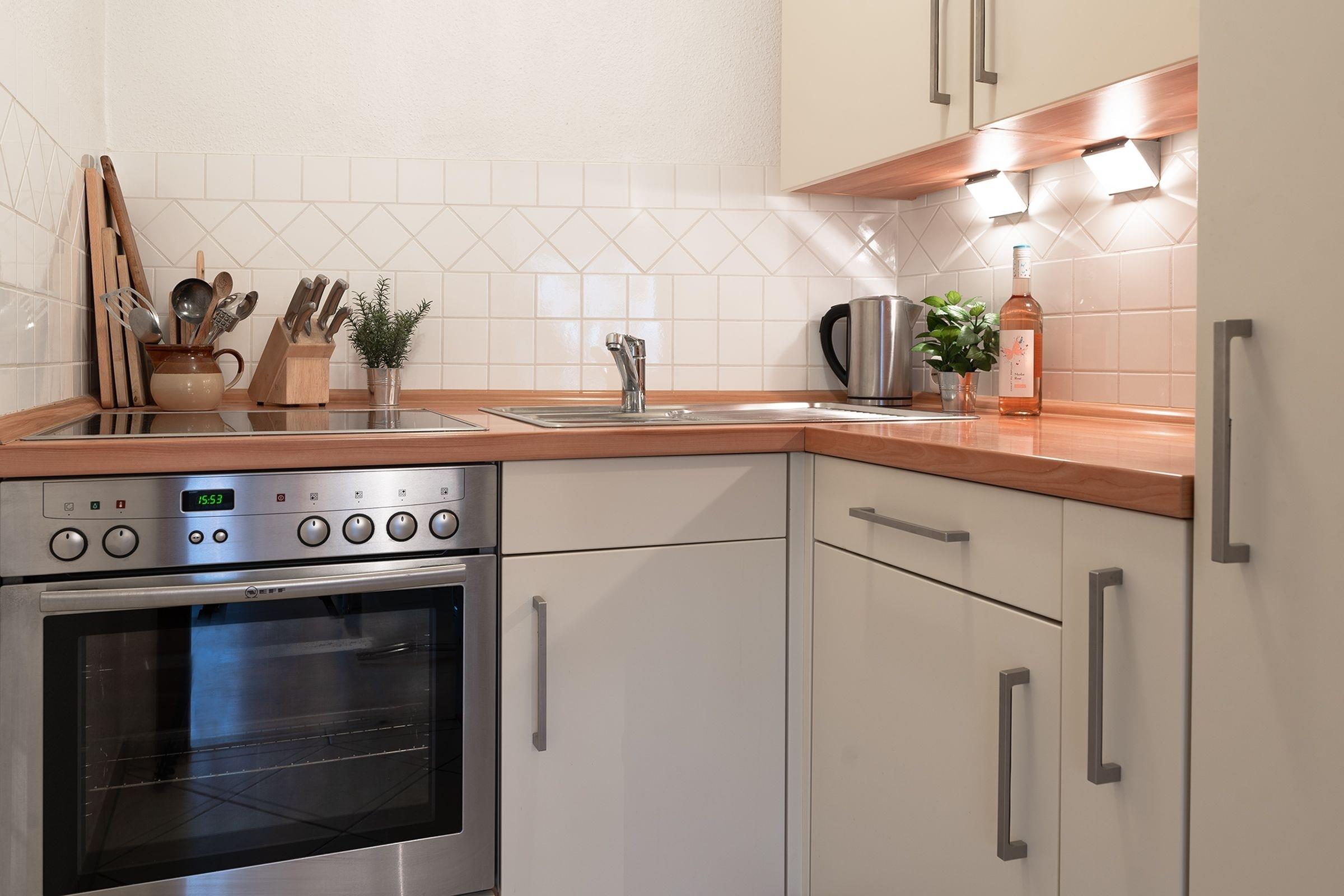 Geruhsame Nächte werden Sie im separaten Schlafzimmer mit Doppelbett (2x 90x200cm) verbringen und starten ausgeruht mit einer erfrischenden Dusche im hell gefliesten Badezimmer in Ihren neuen Urlaubstag.