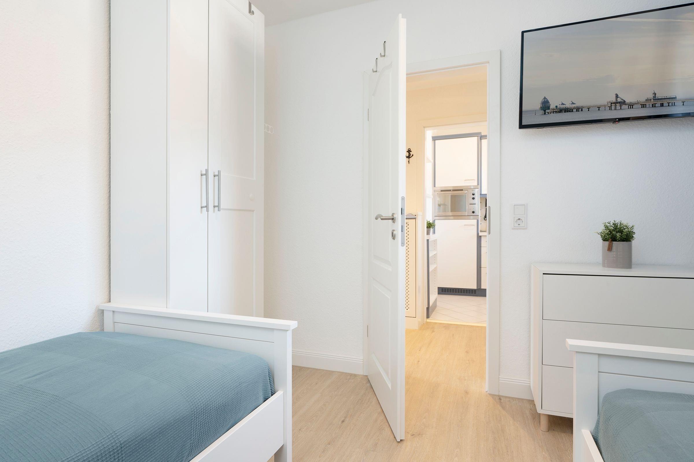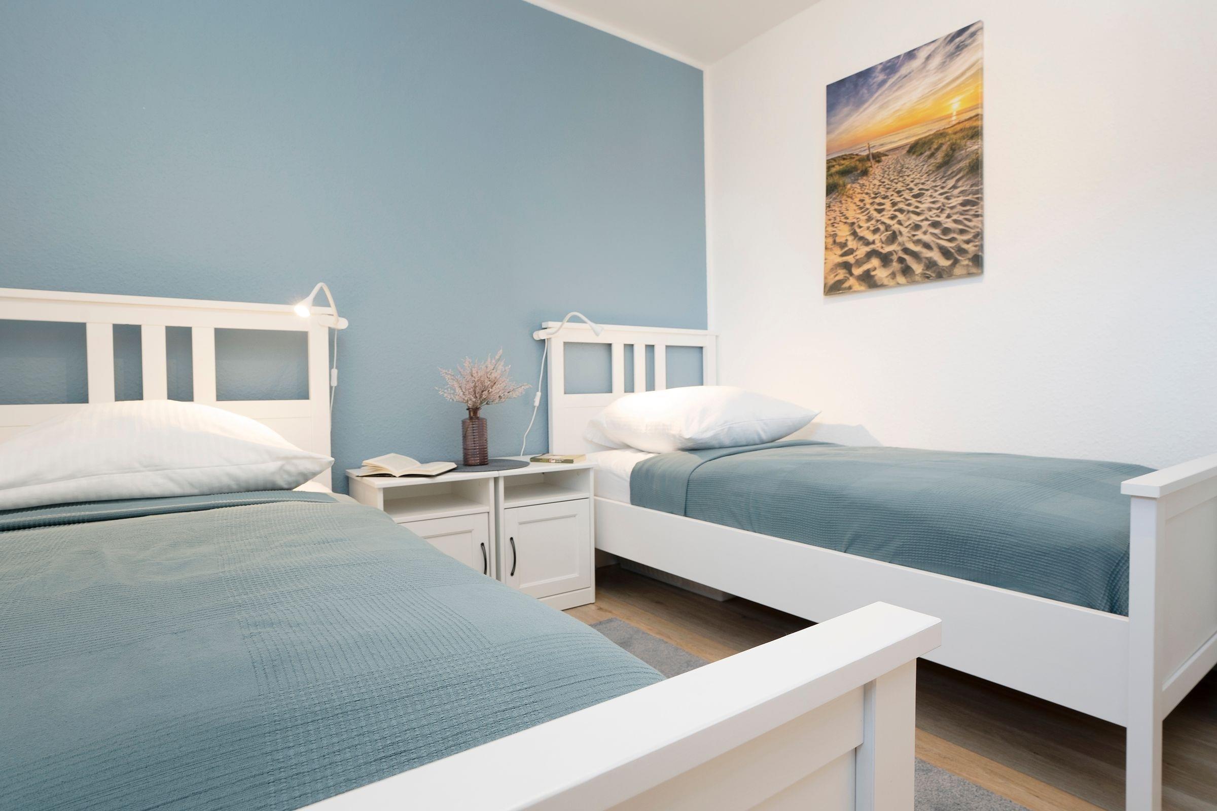 Bitte beachten Sie: In dieser Ferienwohnung ist das Stellen eines Babybettes im Schlafzimmer aus Platzgründen nicht möglich. Alternativ findet es aber im 2. Schlafzimmer zwischen den beiden Einzelbetten ausreichend Platz.