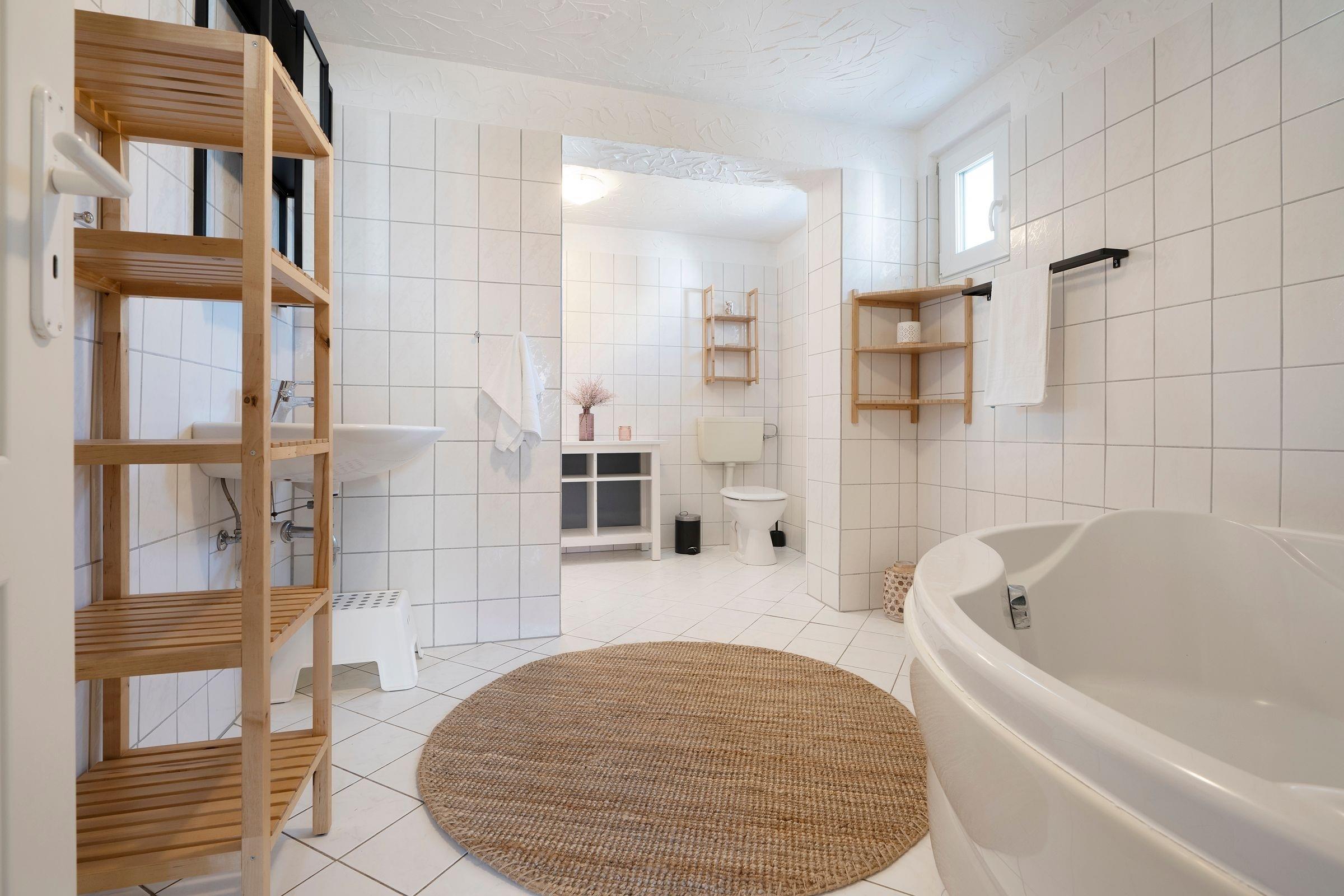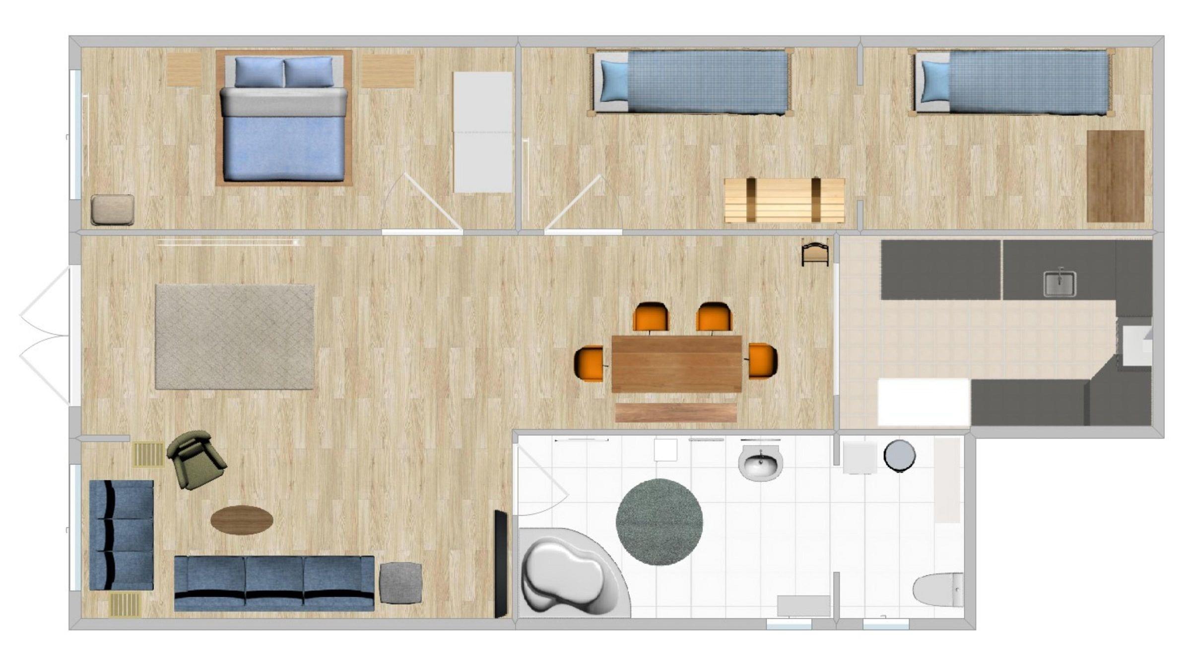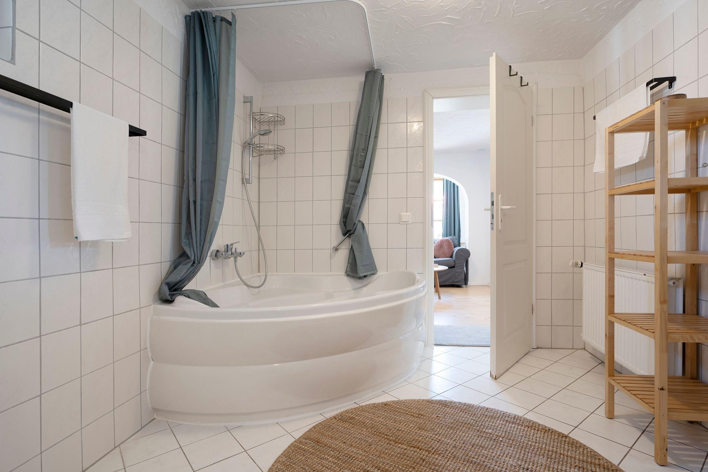 Nach einem ausgedehnten Strandtag wartet dann ein komfortables Doppelbett (2x 90x200cm) im ersten Schlafzimmer auf Sie. Das zweite Schlafzimmer besteht aus 2 Räumen und beherbergt 4 Gäste in 2 Etagenbetten (je 90x200cm). Das Tageslichtbad mit großer Eckbadewanne mit Duschfunktion verfügt über ausreichend Stauraum für Ihre Hygieneartikel. Dank eigener Waschmaschine können Sie Ihr Urlaubsgepäck überschaubar halten.