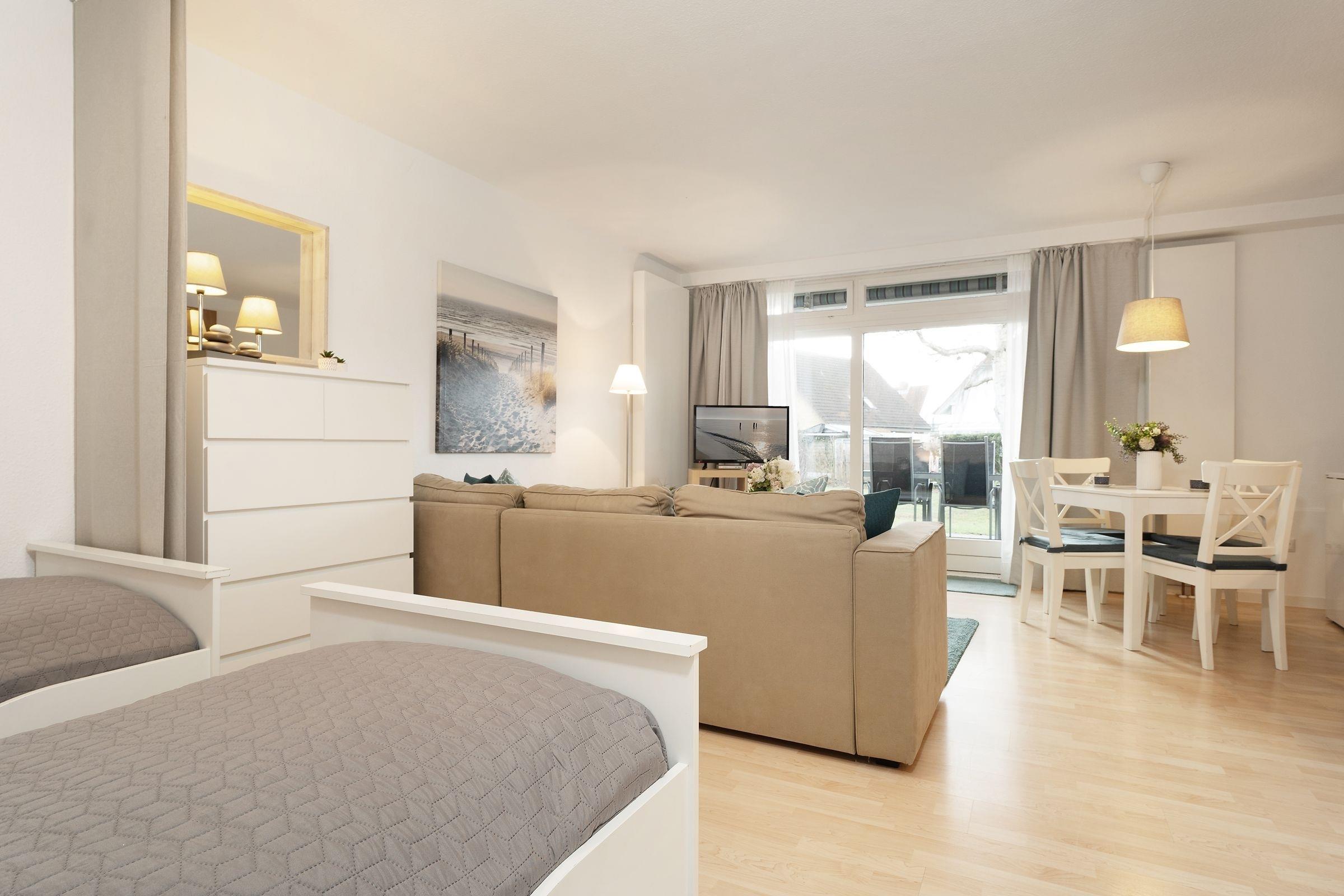 In bester Lage von Grömitz erwartet Sie diese charmante 1-Zimmer-Ferienwohnung im Erdgeschoss mit großzügiger Terrasse und einer Wohnfläche von ca. 42 m² für bis zu 2 Personen.