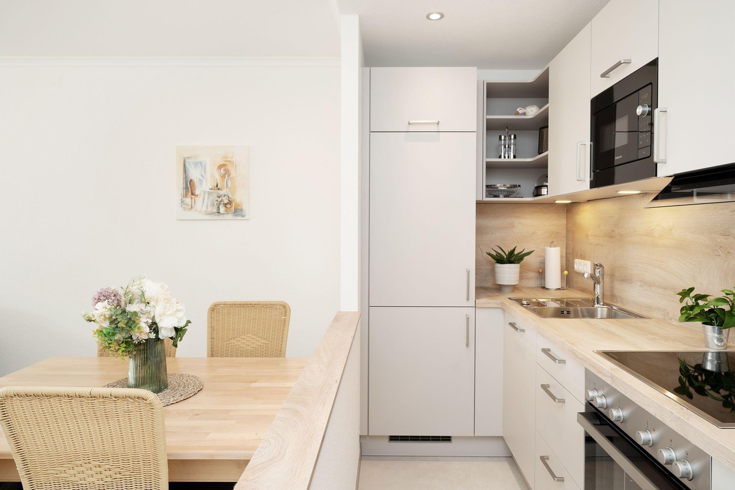 In der besten Lage von Grömitz: strandnahe 2-Zimmer-Ferienwohnung im 1. Stock mit Balkon, Fahrstuhl und einer Wohnfläche von 51 m² für bis zu 4 Personen.