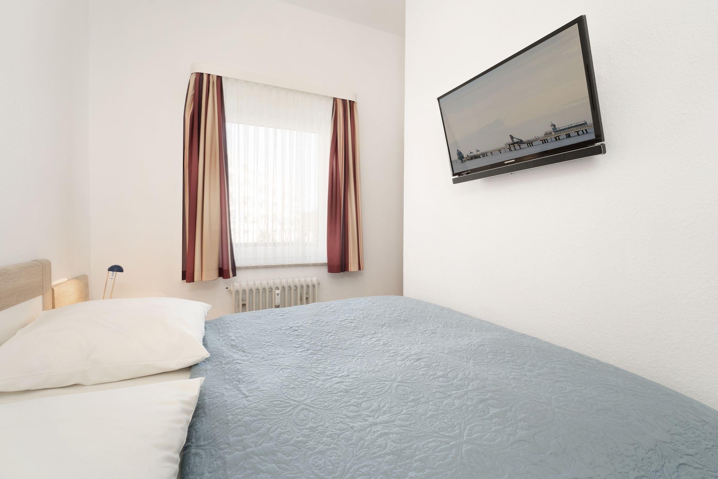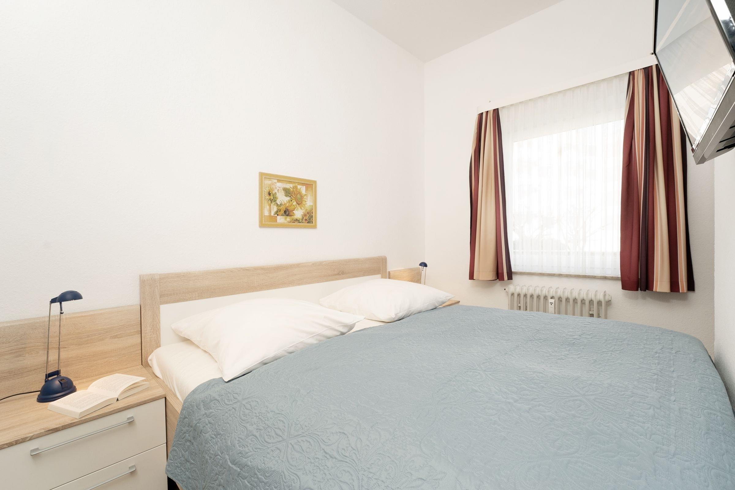 Schlafzimmer: Doppelbett (2x 90x200 cm), Kleiderschrank, TV