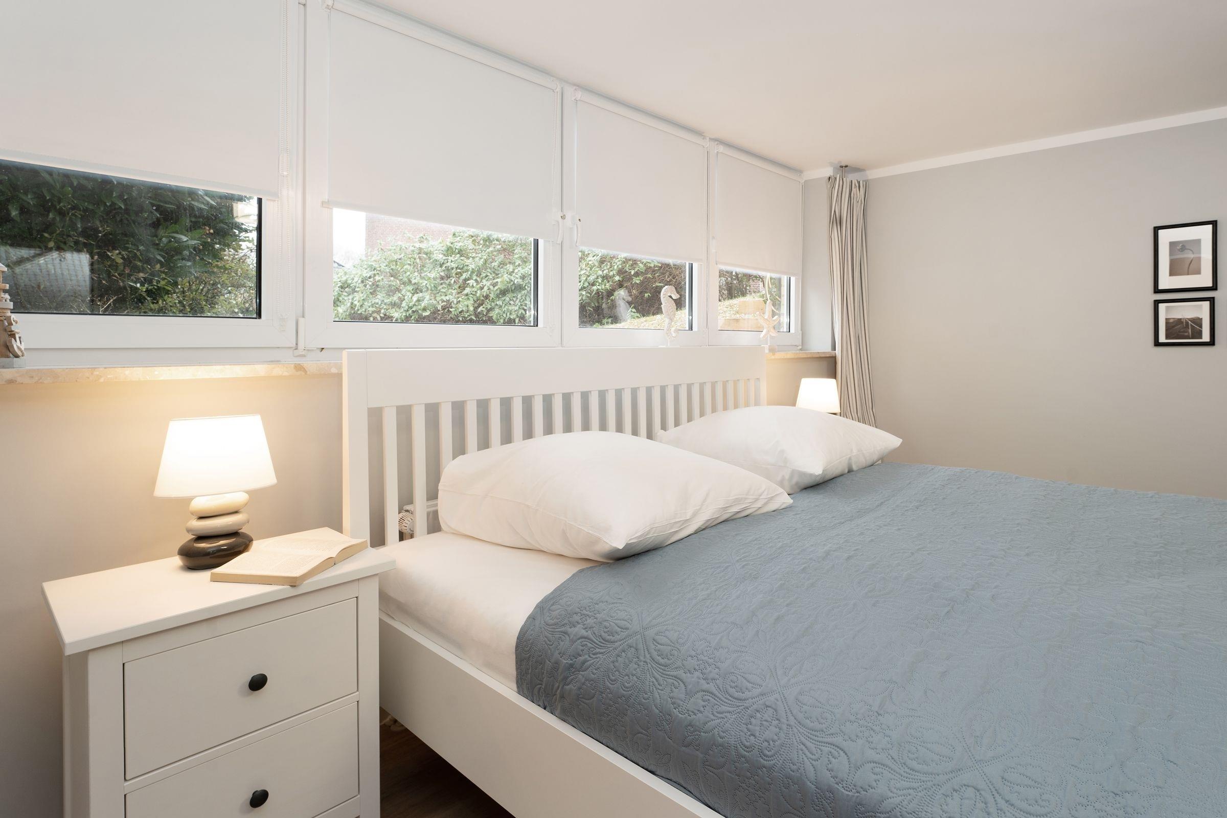 Wer in seinem Urlaub viel Platz schätzt, ist in dieser großzügigen Doppelhaushälfte genau richtig: Drei Schlafzimmer, zwei Bäder sowie zwei Terrassen, ein Balkon und ein Garten laden Sie zum Traumurlaub ein. Schon das Wohnzimmer besticht durch seine gemütliche Atmosphäre. Die moderne Küche mit Induktionsherd und Spülmaschine ist zum Wohnbereich hin offen. Für die Nacht steht im EG ein Schlafzimmer mit Doppelbett (2x 80x200 cm) und TV-Gerät bereit. Das Schlafzimmer im OG hat ein Doppelbett (2x 100x200 cm), ein Waschbecken sowie Zugang auf den Balkon. Das dritte Schlafzimmer befindet sich im Souterrain und ist mit einem Doppelbett (2x 90x200 cm), 2 Schlafsesseln (je 80x200 cm) sowie einem TV-Gerät ausgestattet. Ein Bad en Suite gehört dazu. Im EG befinden sich ein weiteres Bad sowie ein Gäste-WC.