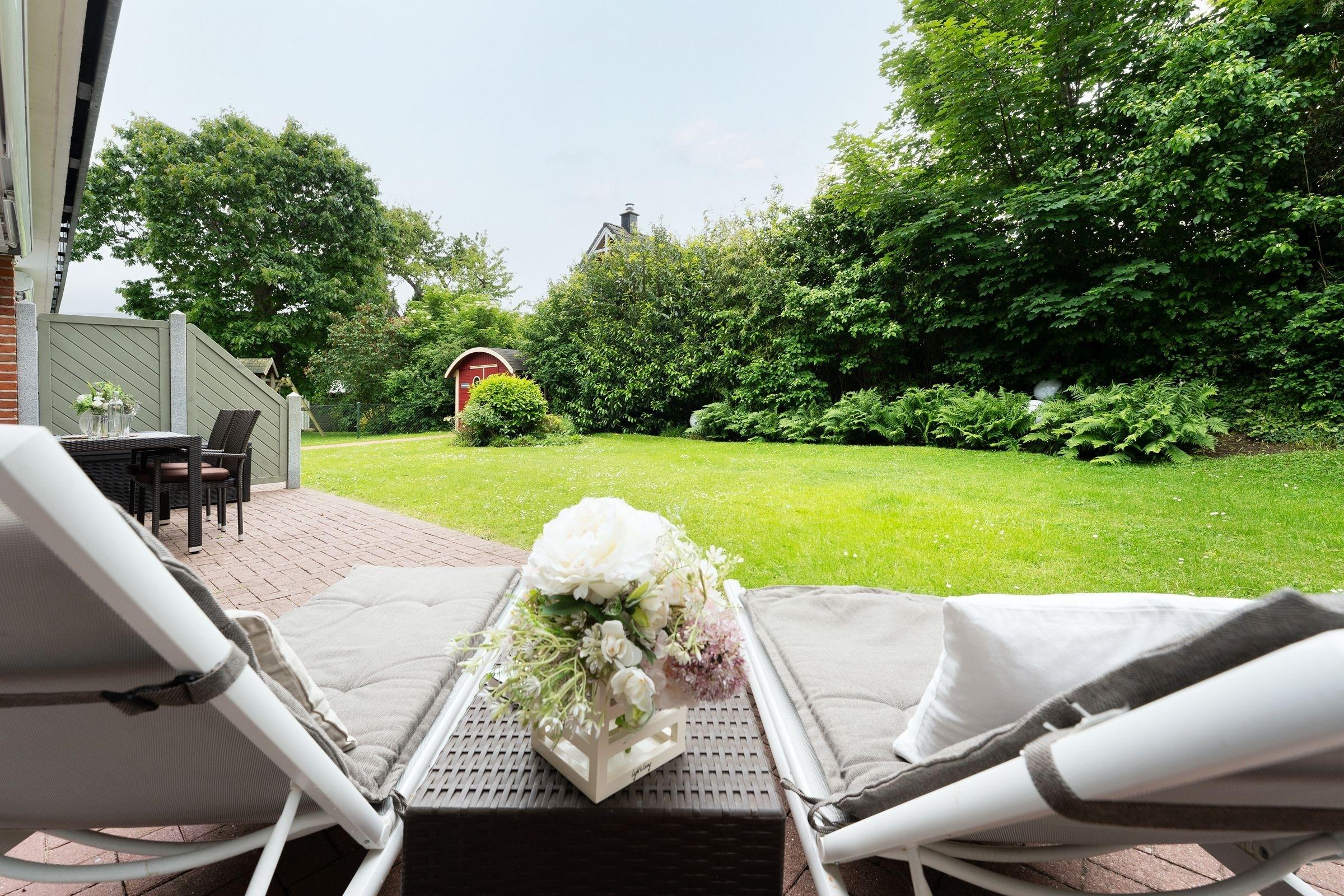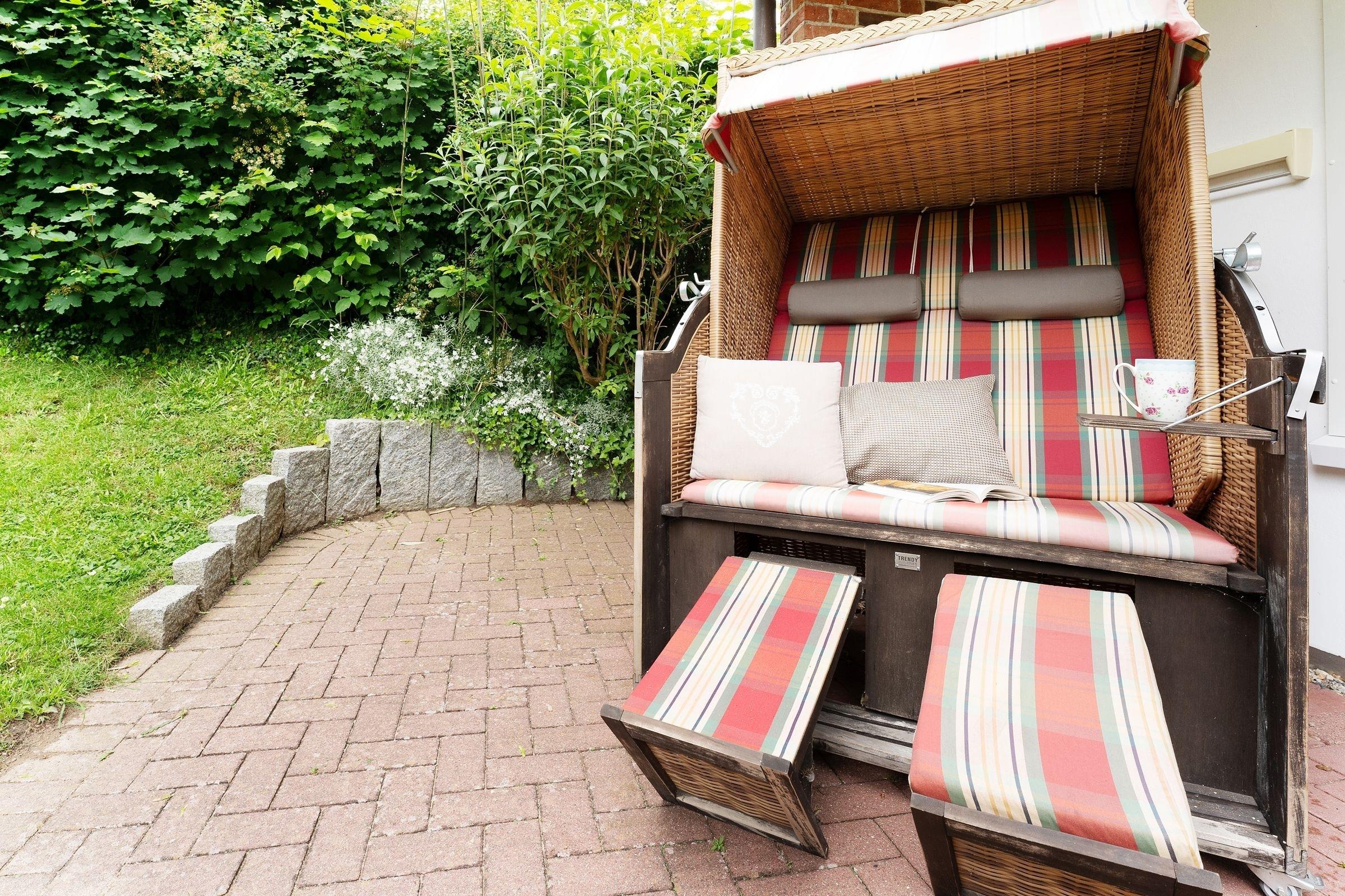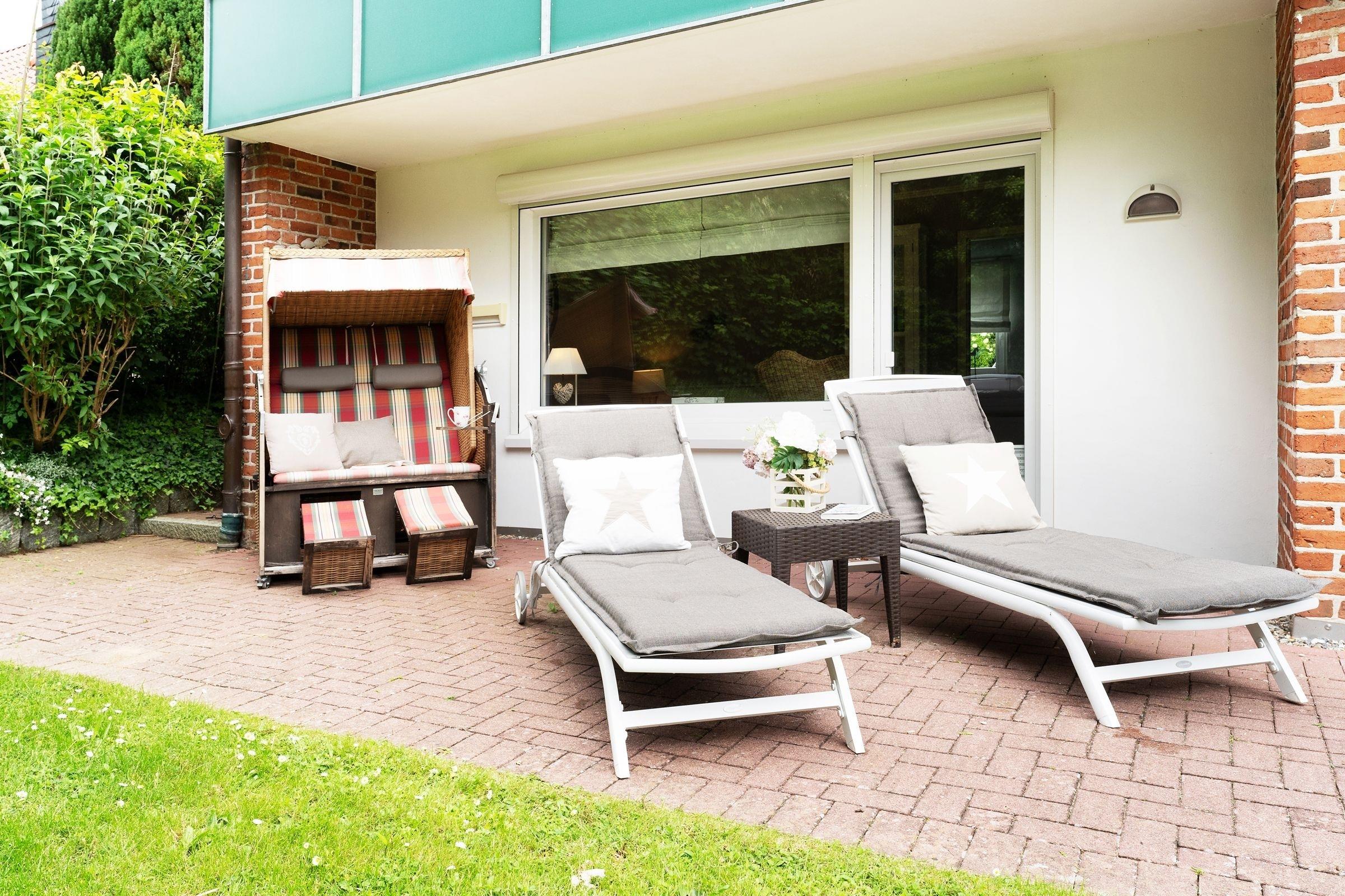 In bester Lage von Grömitz: traumhafte, ca. 65 m² große 2-Zimmer-Ferienwohnung im Erdgeschoss mit zwei Terrassen und eigenem Garten für bis zu 2 Personen.