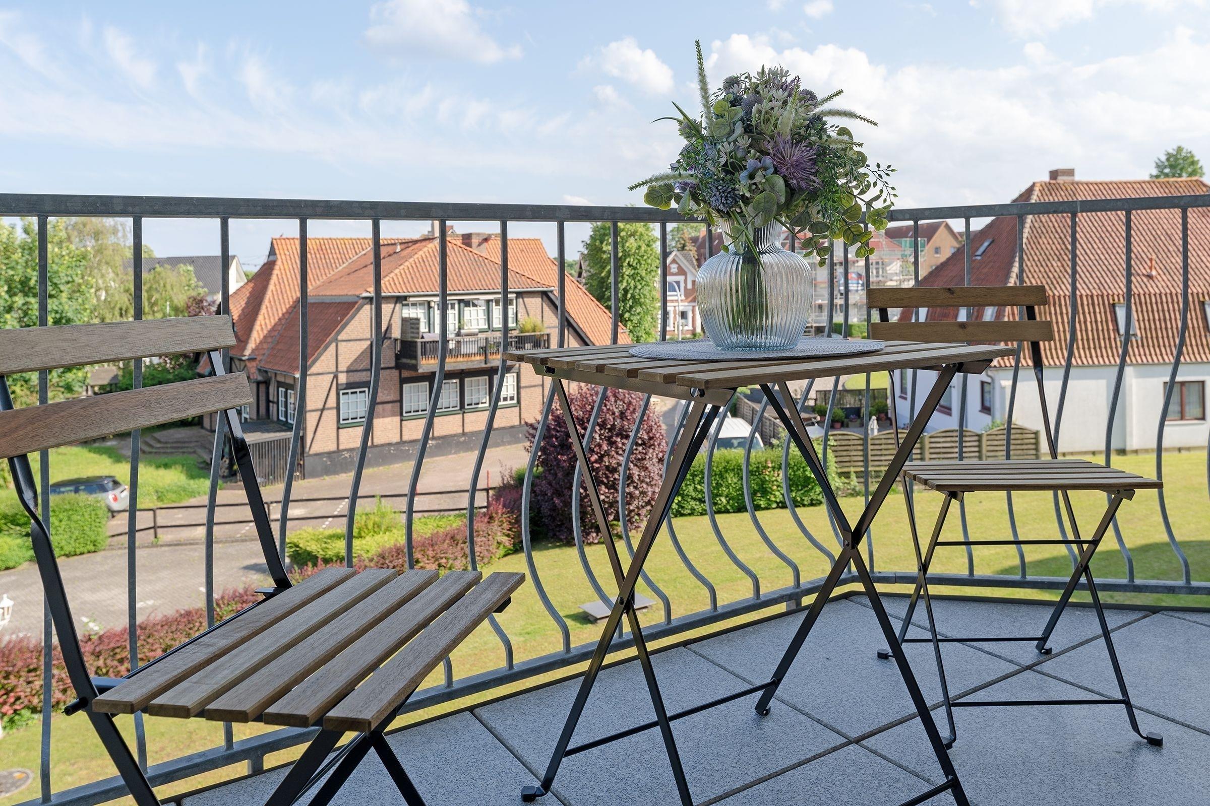 In bester Lage von Grömitz: gemütliche, ca. 34 m² große 1-Zimmer-Ferienwohnung im 2. Stock mit Balkon und Aufzug für bis zu 2 Personen.
