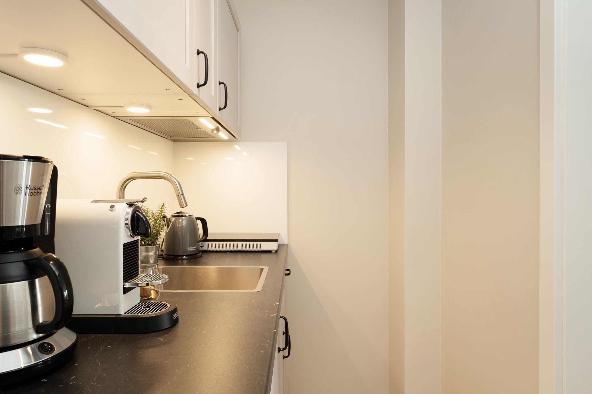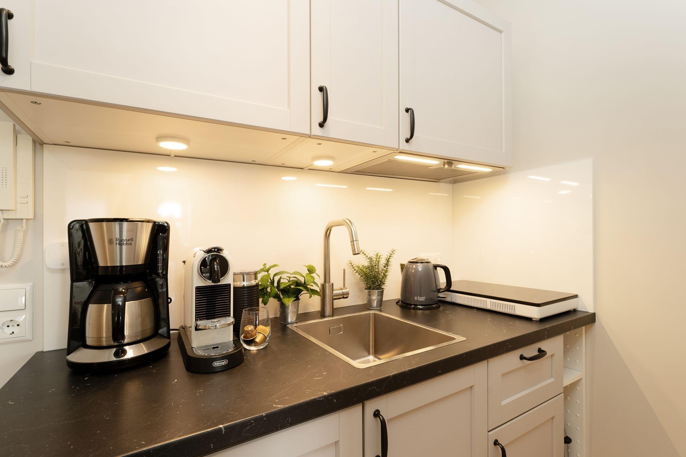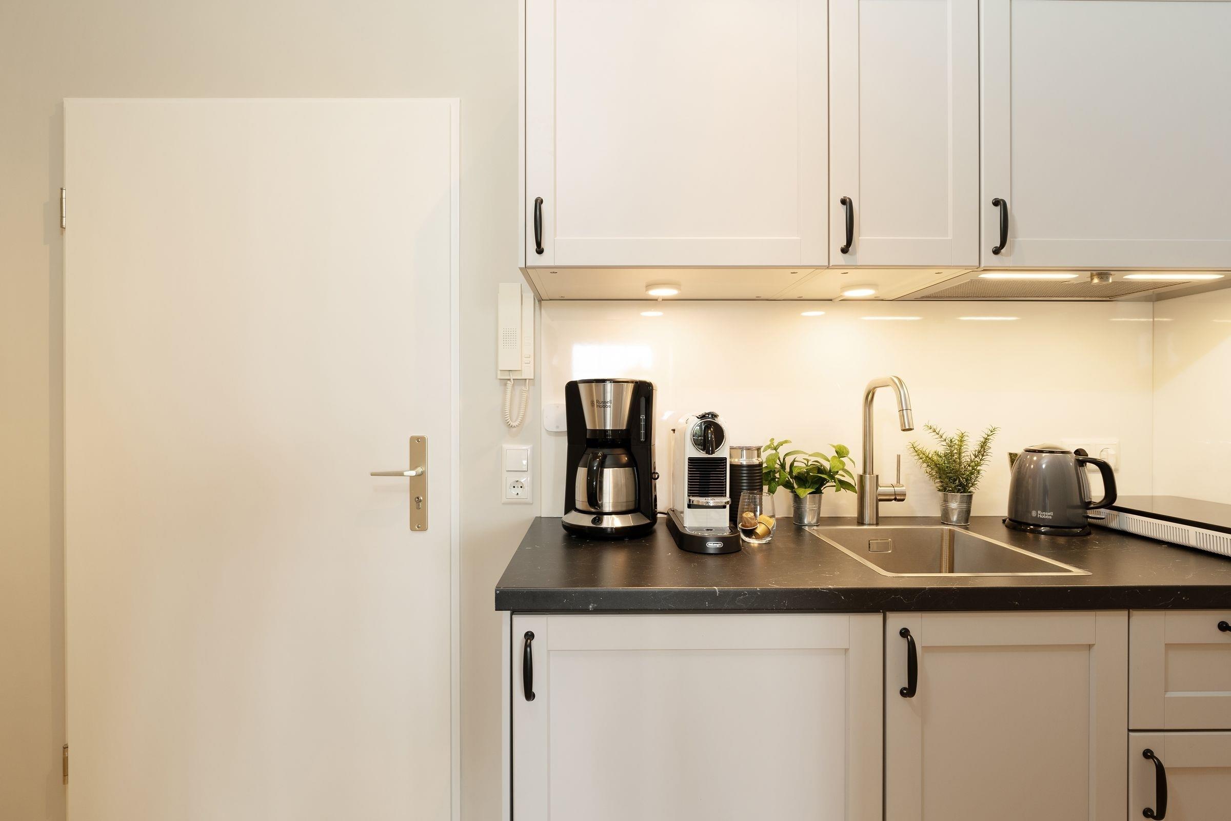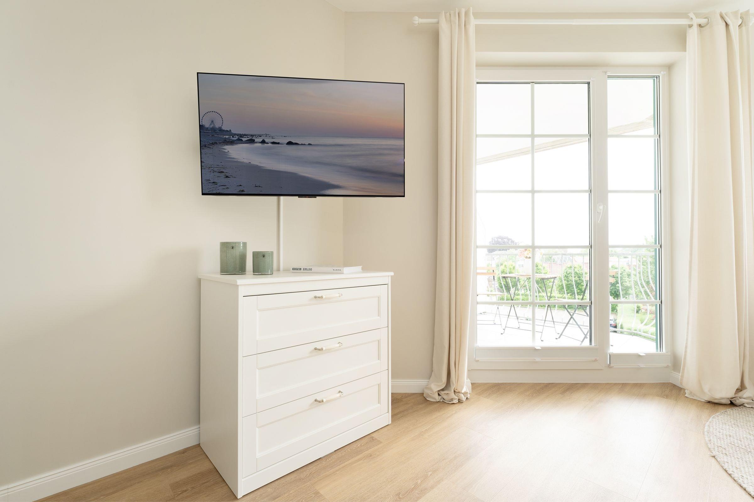 Ankommen, auspacken – wohlfühlen. Diese charmante Ferienwohnung verwöhnt Sie mit einer geschmackvollen Einrichtung und einer durchdachten Raumaufteilung. Machen Sie es sich vor dem Streaming-fähigem TV-Gerät (Netflix, Amazon prime, Spotify) gemütlich oder genießen Sie das gute Wetter auf dem möblierten Balkon mit Süd-Ost-Ausrichtung. Wie wäre es dazu mit einem Snack? Die kleine, offene Küche ist zweckmäßig ausgestattet und hat zum Beispiel einen 2-Platten-Herd und einen mobilen Backofen sowie eine Nespresso-Maschine. Nach einem wundervollen Tag an der Ostseeküste werden Sie im bequemen Boxspring-Doppelbett (180x200 cm) Ihre Nachtruhe finden. Der nächste Morgen beginnt erfrischt im innenliegenden Badezimmer, das über eine bodengleiche Dusche, Föhn und Handtuchwärmer verfügt.