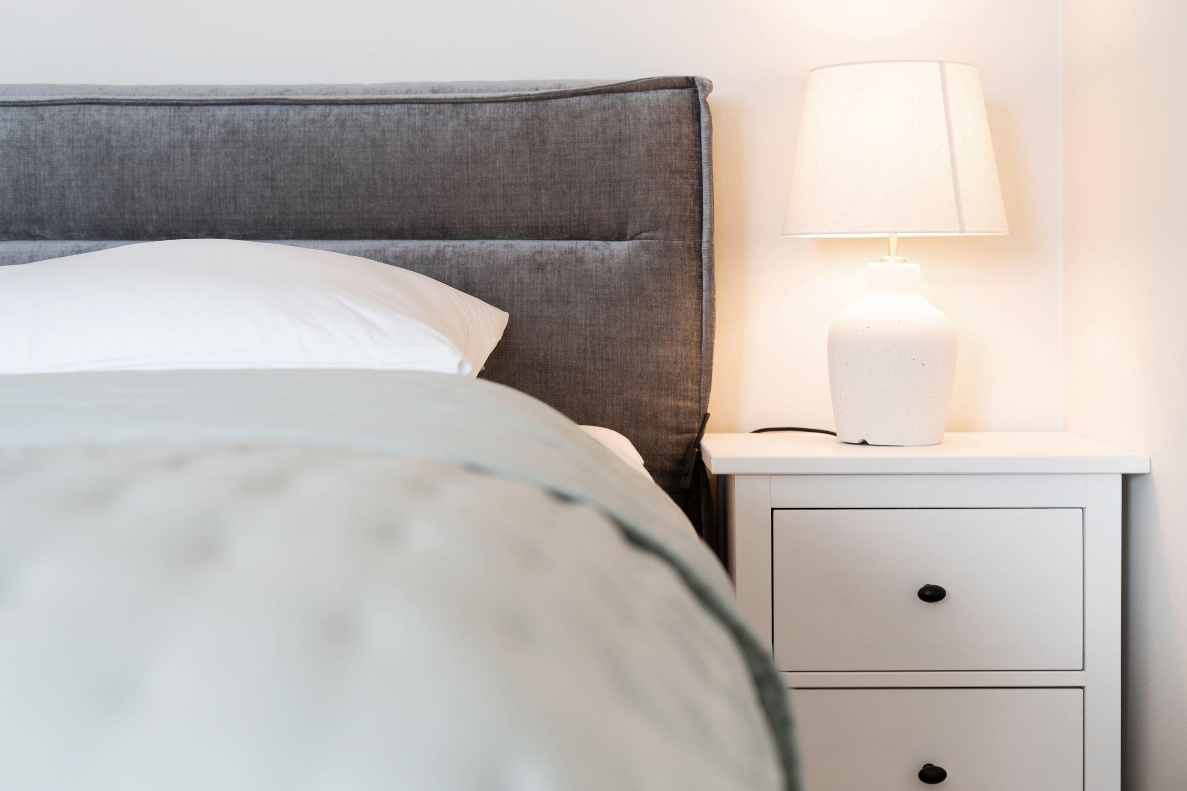 Wohn-/Schlafzimmer: 1 Boxspring-Doppelbett (180x200 cm), TV, Verdunkelung: Plissee, Platz für Babybett vorhanden