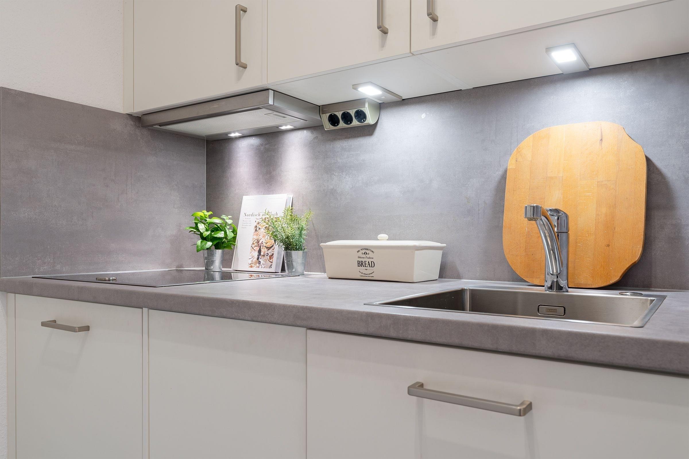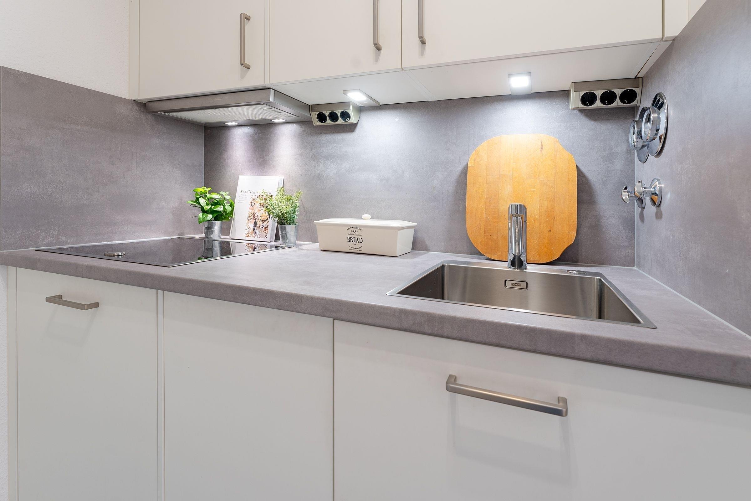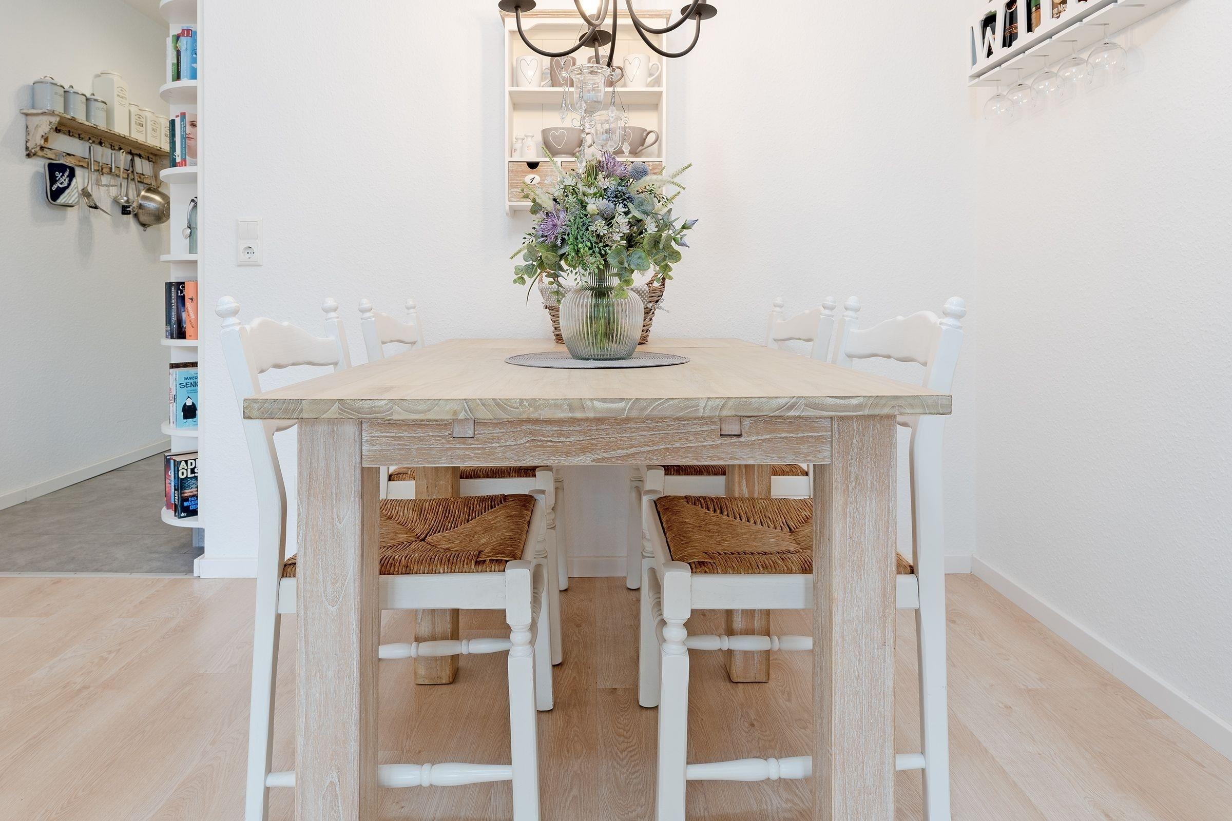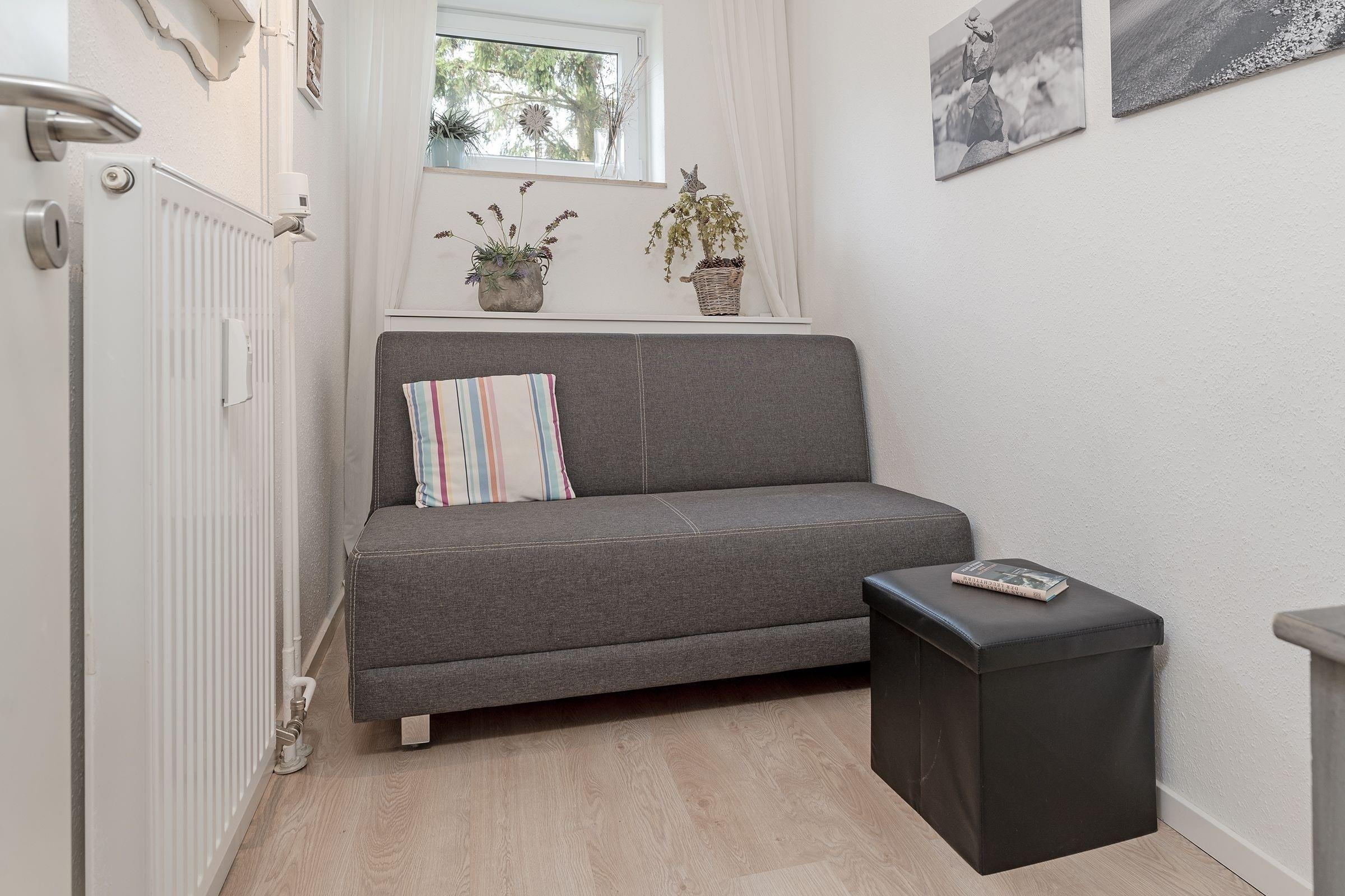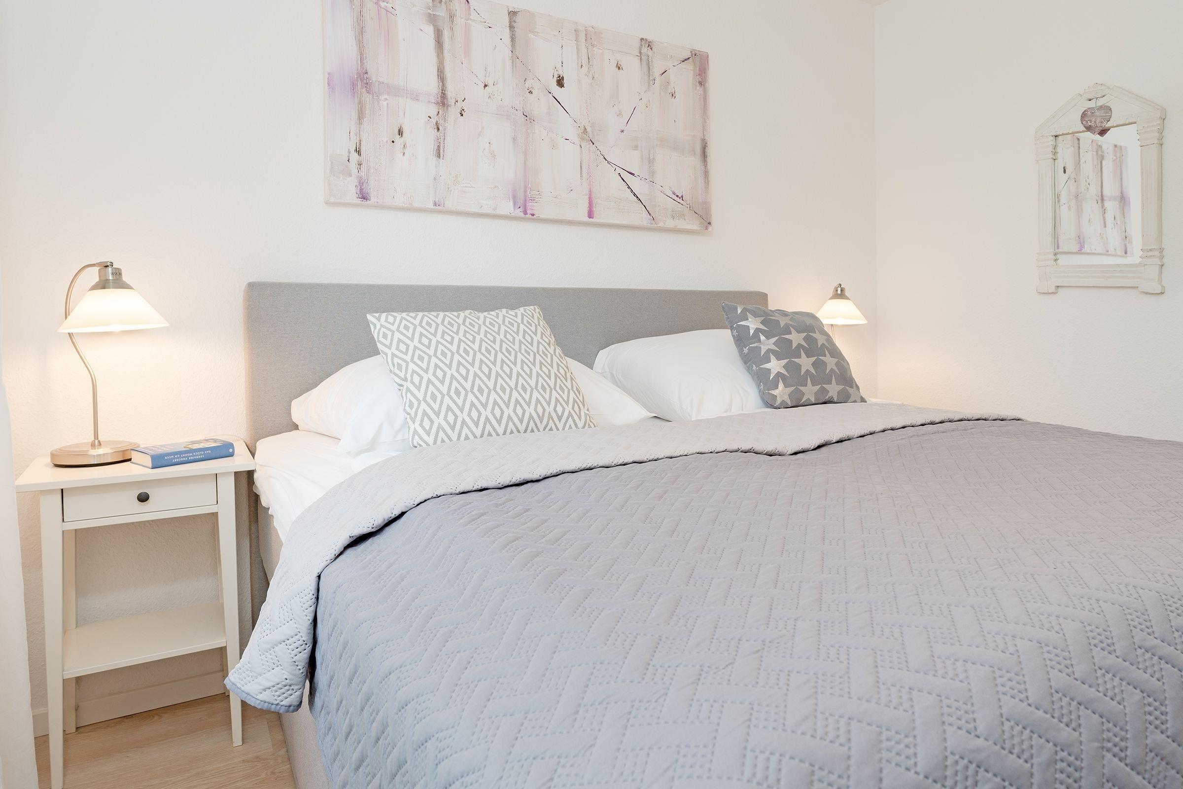 Die Wohnung Strandgrün hat ein Herz für große und kleine Gäste! Die Einrichtung wurde liebevoll ausgesucht und sicher findet jeder seinen Lieblingsplatz im gemütlichen Wohnbereich. Hier macht die Selbstverpflegung Spaß: Die moderne Küche verwöhnt Sie mit vielen Extras wie Induktionsherd und Spülmaschine. Genießen Sie Ihre Lieblingsspeisen am schicken Esstisch oder auf dem möblierten Südbalkon mit elektrischer Markise. Wunderbar nächtigen werden Sie im bequemen Doppel-Boxspringbett (180x200 cm) im Schlafzimmer, in dem halben Zimmer steht ein Schlafsofa (140x200 cm). Ein zusätzlicher TV sorgt hier für Unterhaltung. Das innenliegende Badezimmer ist komfortabel ausgestattet.