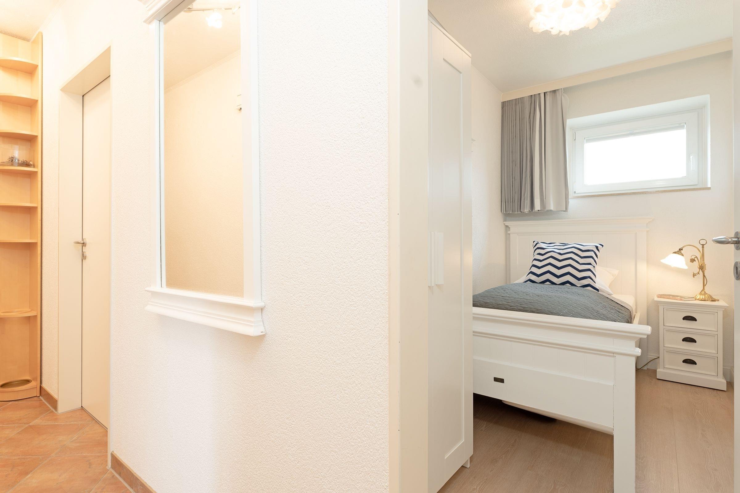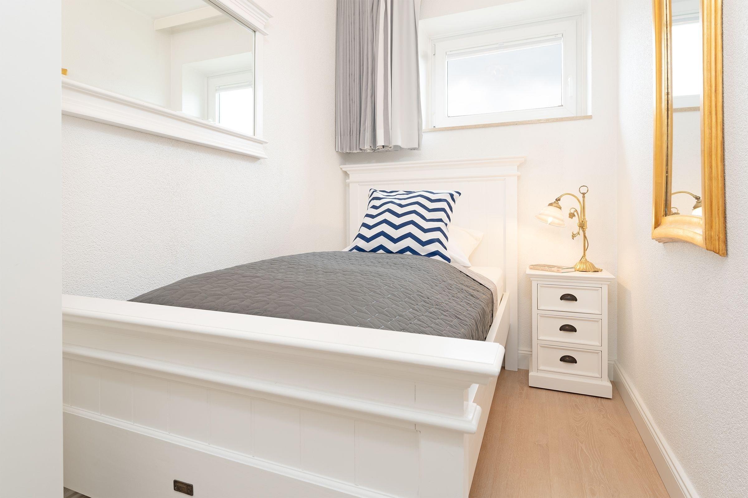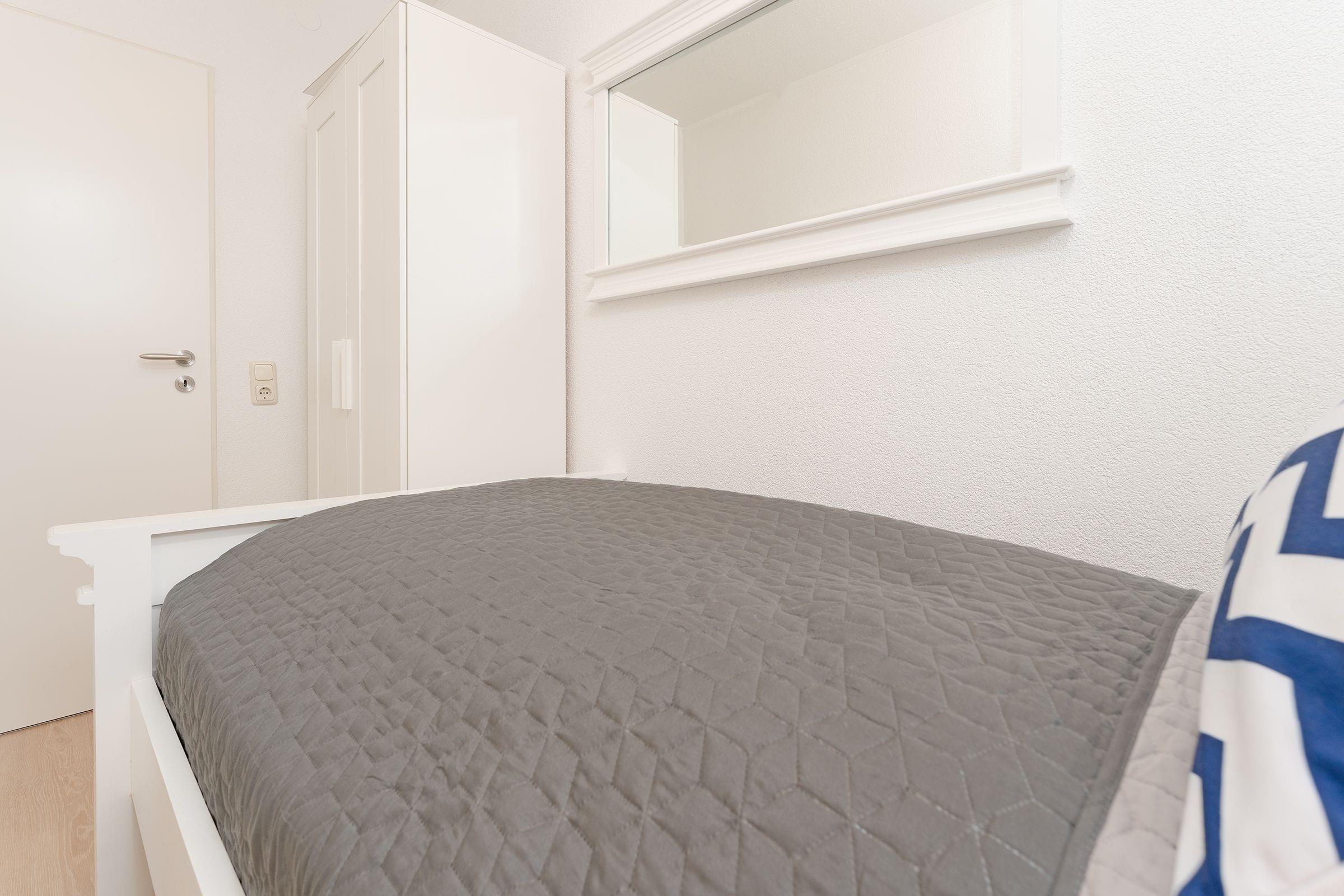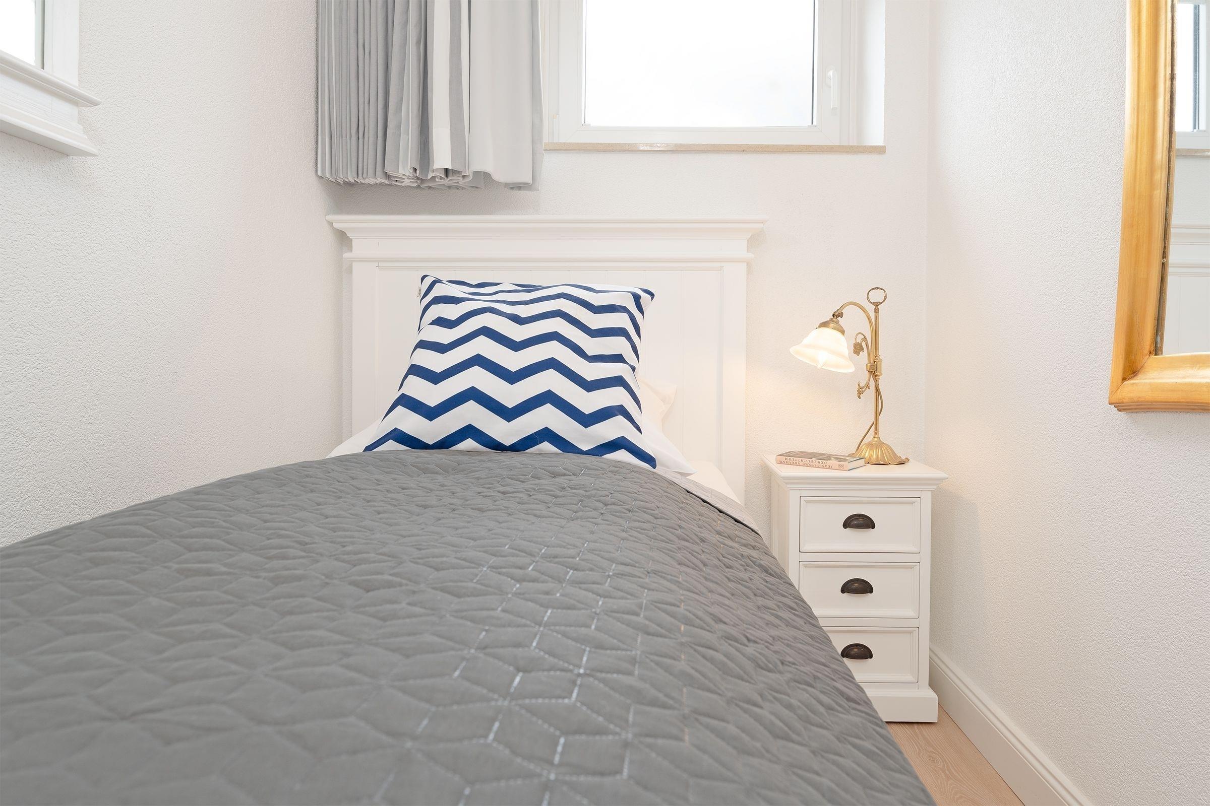 2. Schlafzimmer (klein): 1 Einzelbett (90x200 cm), Verdunkelung: Vorhang & Plissees, kein Platz für ein Babybett