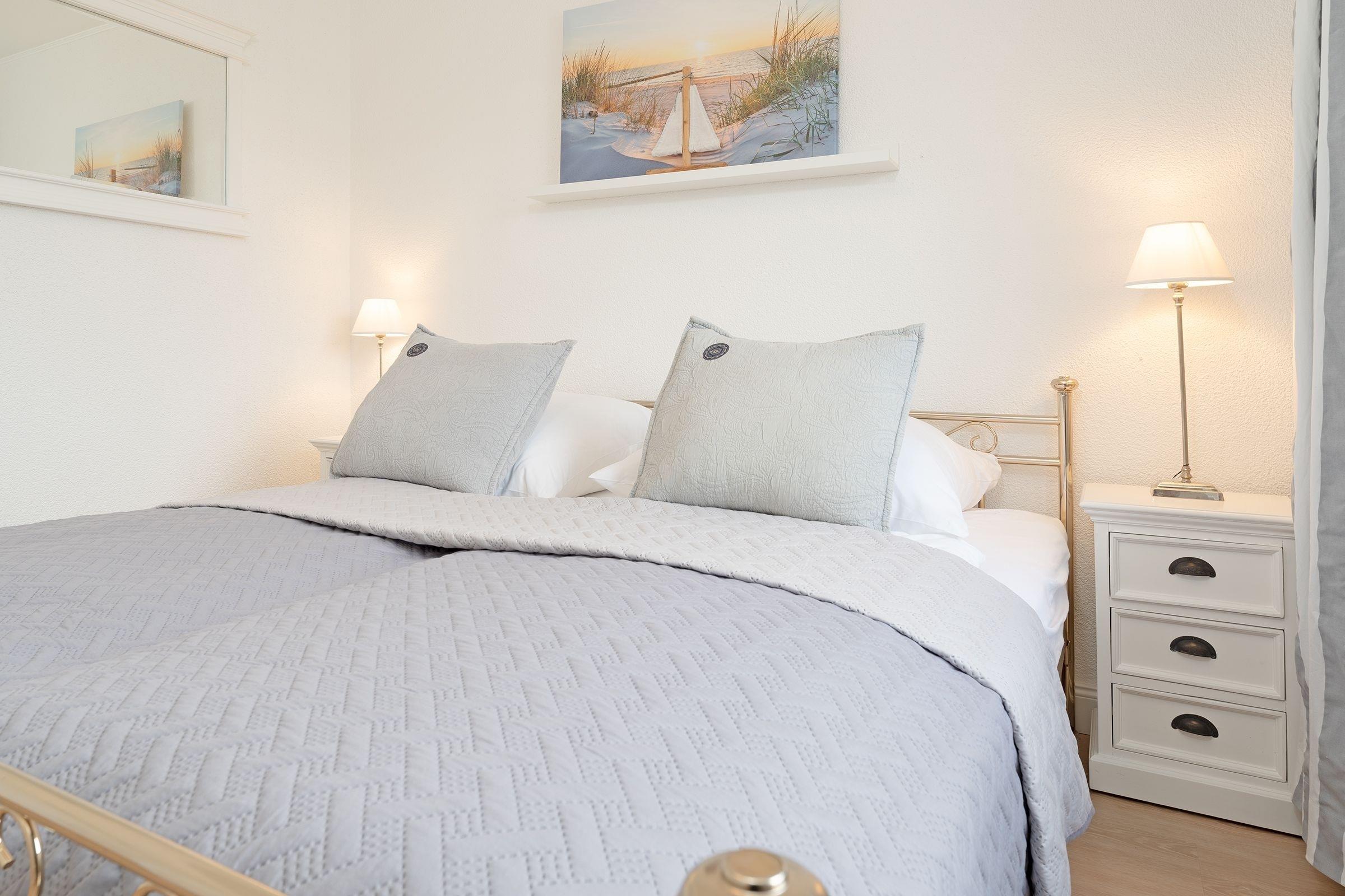 1. Schlafzimmer: 1 Doppelbett (2x 90x200 cm), Kleiderschrank, Verdunkelung: Vorhang & Plissees, Platz für Babybett vorhanden