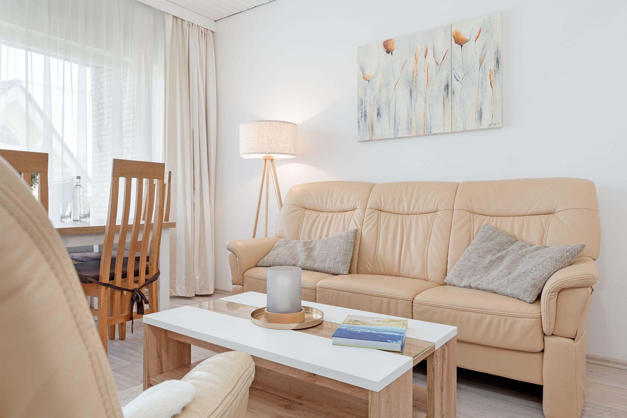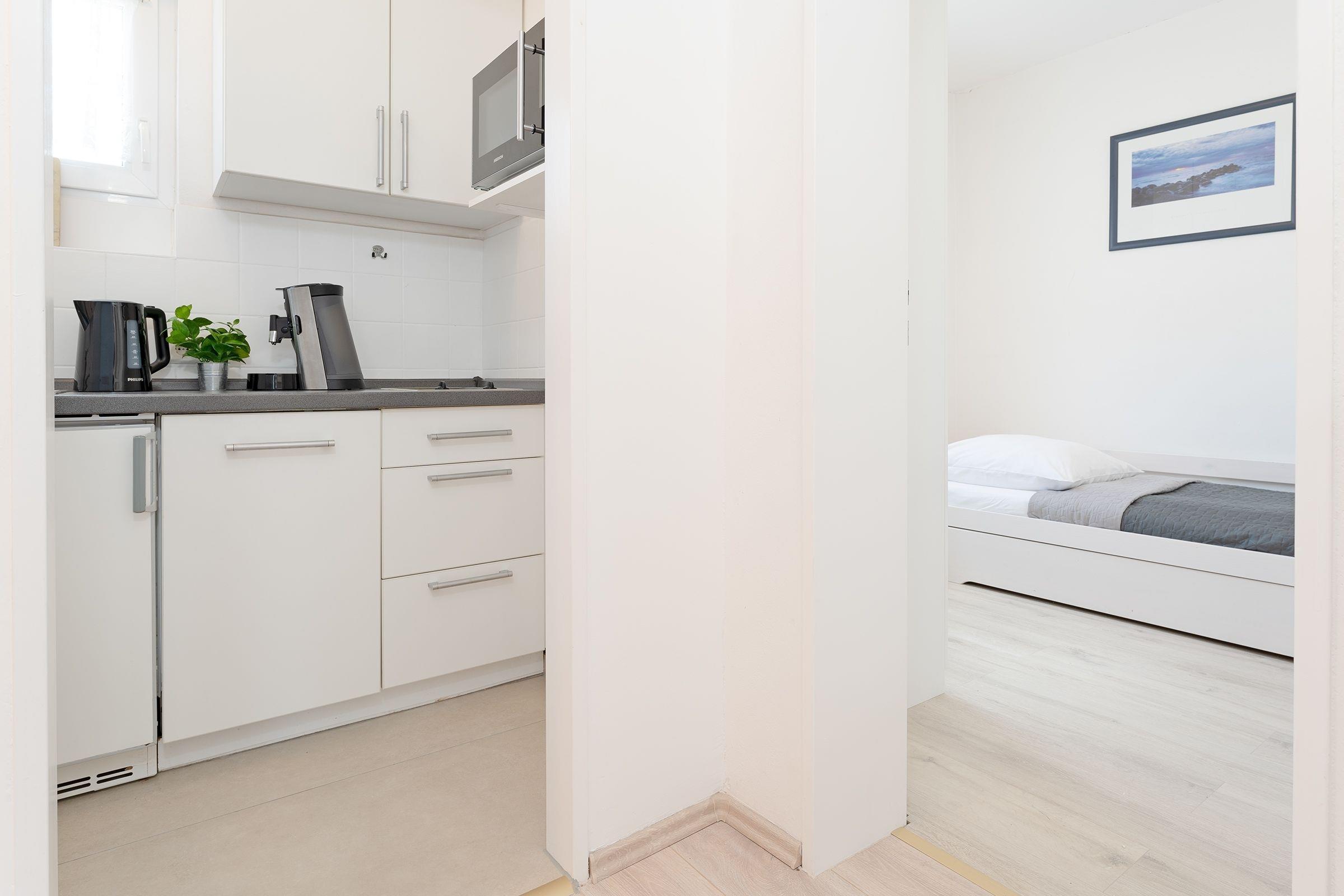 Herzlich willkommen im Urlaub! Die schöne und durchdachte Aufteilung der Wohnung Meeresluft im Haus Godewind wird Sie begeistern: Im gemütlichen Wohn-/Schlafbereich empfängt Sie eine bequeme Polstergarnitur für entspannte Stunden vor dem TV-Gerät. Hier haben Sie auch Zutritt auf den möblierten Balkon, den Sie dank der Überdachung bei jedem Wetter gut geschützt nutzen können. Für die Nacht steht Ihnen im Wohnzimmer im räumlich leicht abgetrennten Bereich ein komfortables Boxspringbett (180x200 cm) zur Verfügung. Im kleinen Schlafzimmer steht ein Einzelbett (90x200 cm). Die kleine Küche punktet mit einer Espressomaschine (Senseo) und einem Geschirrspüler. Das moderne, tageslichthelle Duschbad verfügt über einen Handtuchwärmer.