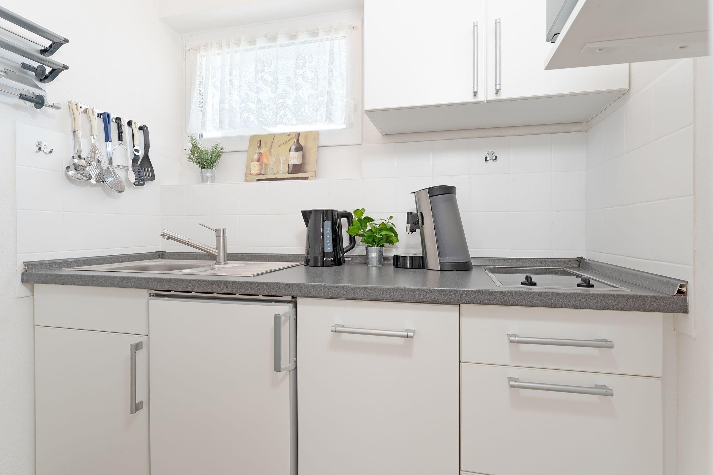 Ein Garagenstellplatz (250 x 550 cm, Einfahrtsbreite 210 cm) ist für Sie reserviert. Für Ihre Fahrräder stehen ein gemeinschaftlicher Fahrradraum sowie ein Abstellplatz bereit. Eine Waschmaschine zur gemeinschaftlichen Nutzung gegen Gebühr ist vor Ort. WLAN ist inklusive.