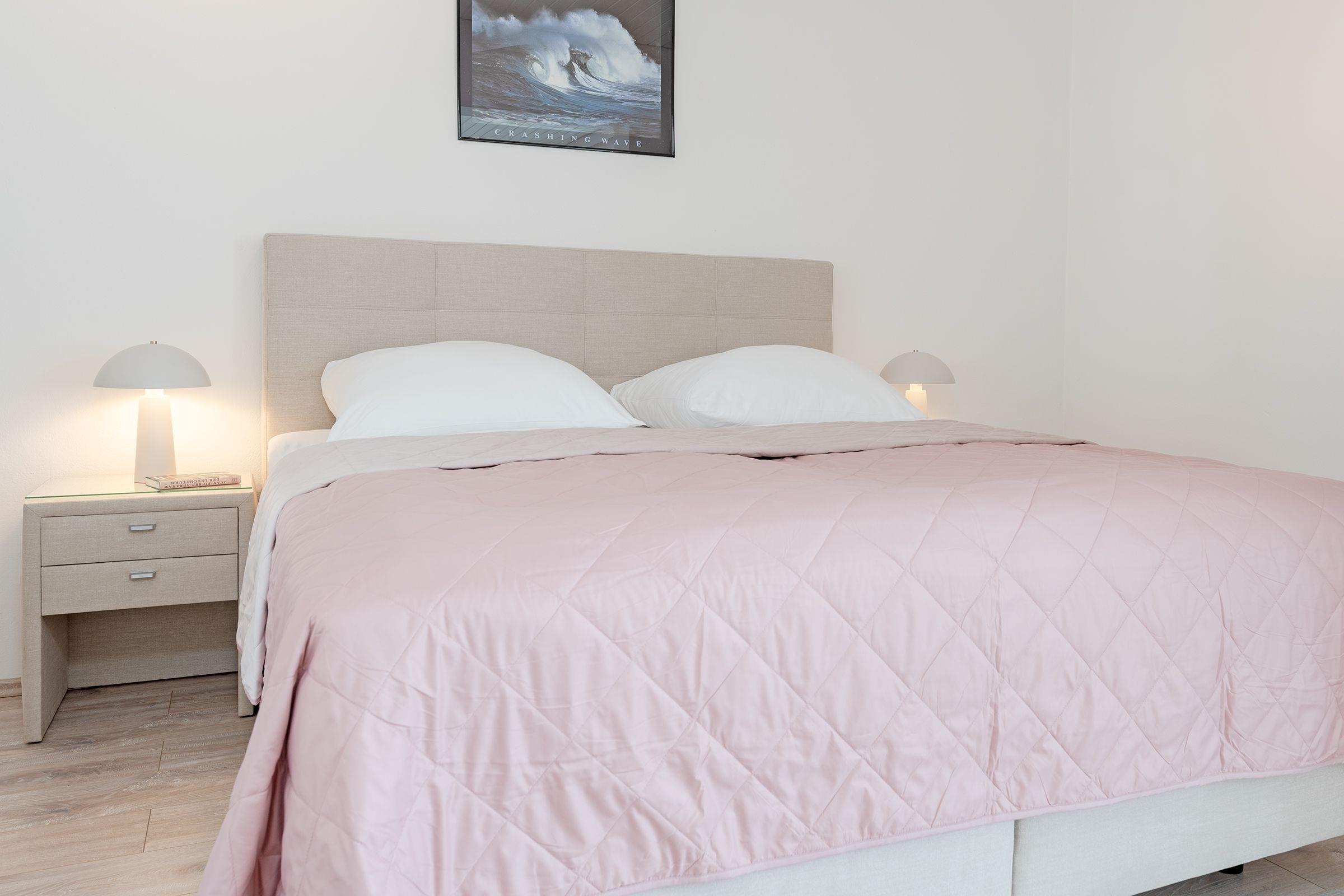 Wohnzimmer: 1 Boxspringbett (180x200 cm), Kleiderschrank, Verdunkelungsvorhänge, Platz für Babybett vorhanden
