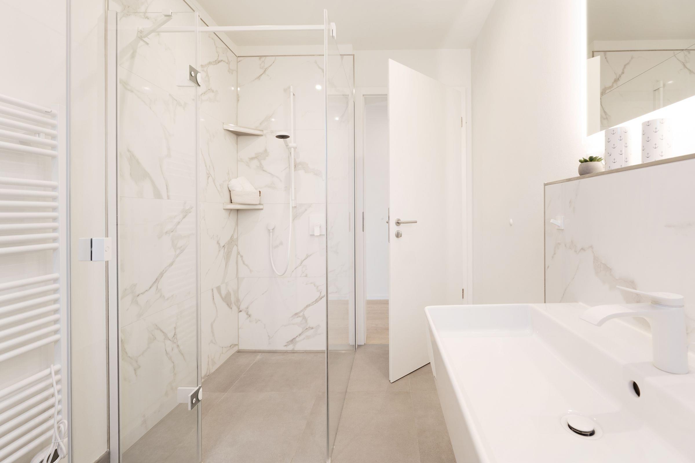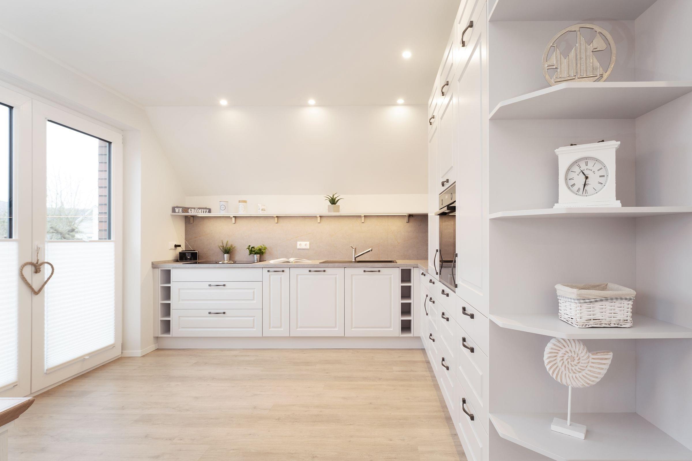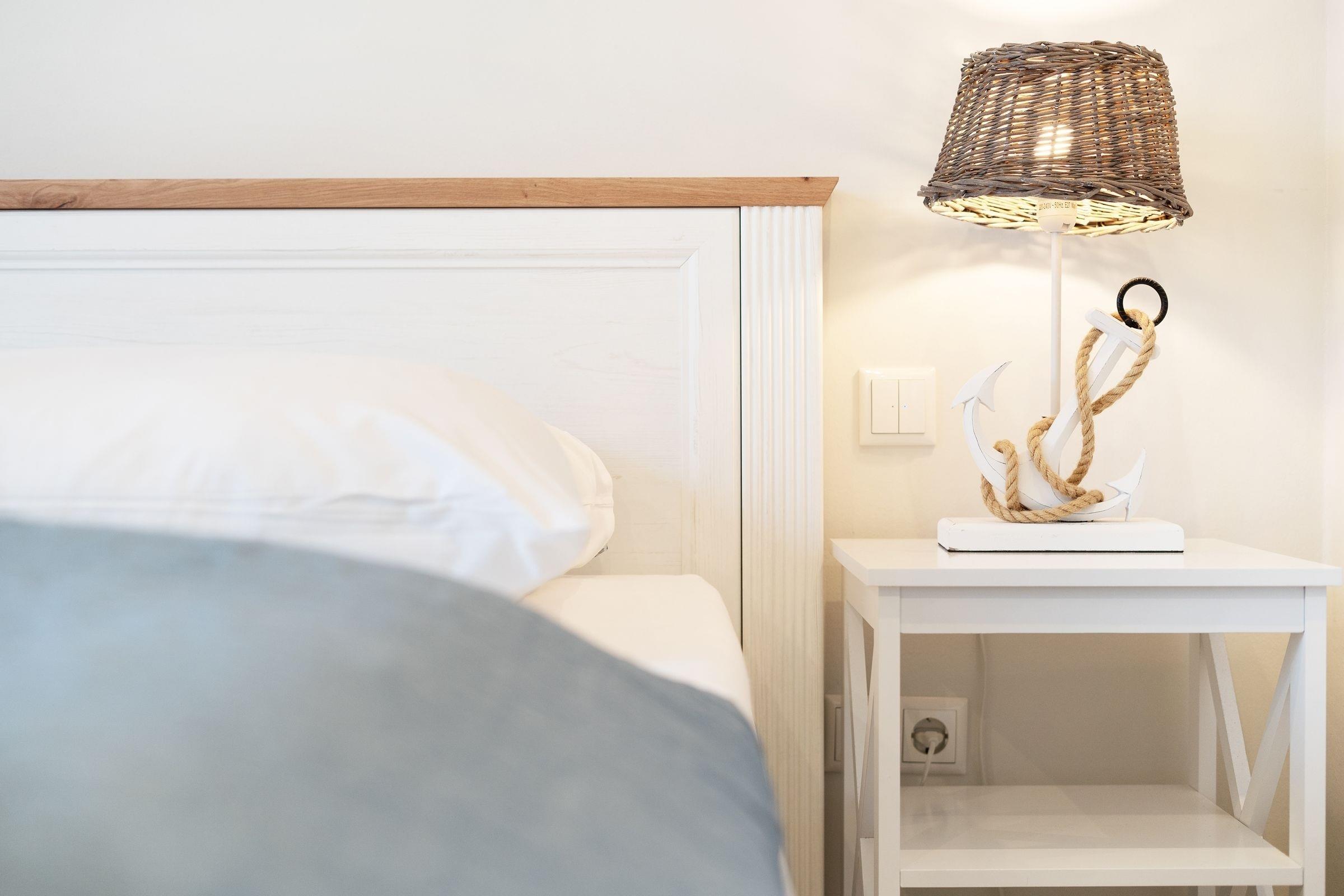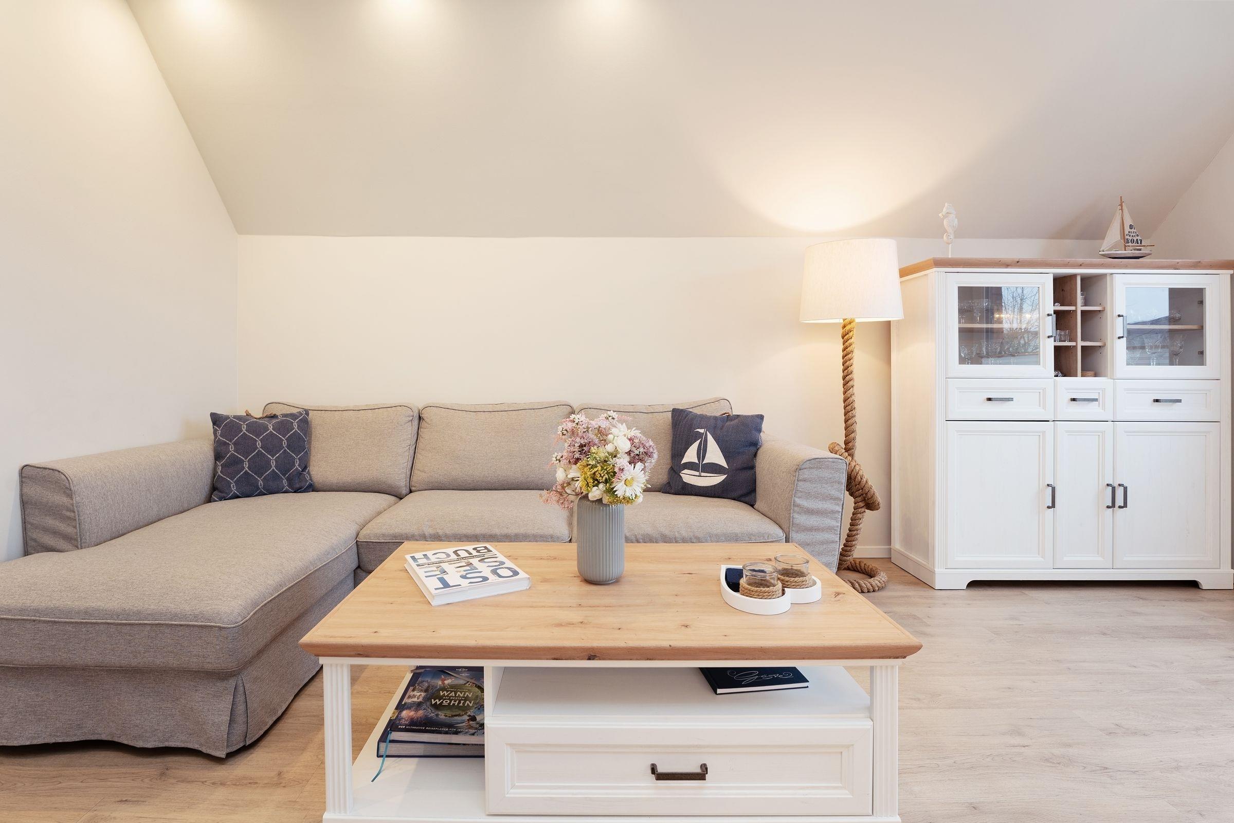 Diese familienfreundliche Ferienwohnung im Haus Kontor Fofftein bietet alles, was Sie für einen unvergesslichen Ostseeurlaub benötigen. Der großzügige Wohnbereich ist mit einem gemütlichen Sofa und einem Flachbild-TV ausgestattet. Ein großer Südbalkon mit Balkonmöbeln inkl. Sonnenschirm, Strandkorb und Sonnenliege lädt zum Entspannen ein. Die offene Küche ist modern ausgestattet und verfügt u.a. über einen Induktionsherd, Backofen, Mikrowelle und eine Spülmaschine. Der angrenzende Essbereich bietet ausreichend Platz für gemeinsame Mahlzeiten. Die Ferienwohnung bietet zwei Schlafzimmer, eins mit einem Doppelboxspringbett (180x200 cm) und eins mit einem Doppelbett (2x 90x200 cm). Beide Räume sind hell und freundlich gestaltet. Das moderne Badezimmer ist mit einer bodengleichen Dusche, Fußbodenheizung und beheizbarem Handtuchhalter ausgestattet. Zusätzlich sorgt ein separates Gäste-WC für Komfort.