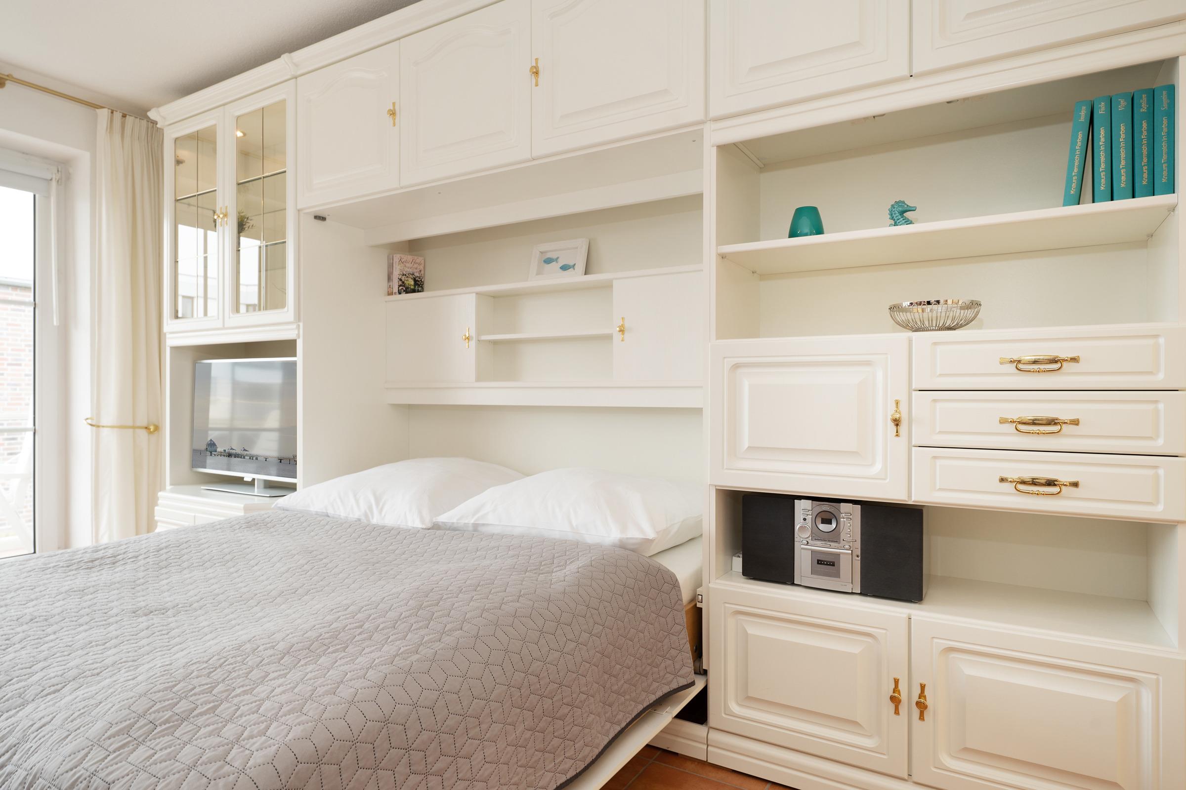 Wohn/Schlafraum: 1 Schrankbett (2x 90x200 cm), Kleiderschrank, TV, Verdunkelung: Jaoulien, Platz für Babybett vorhanden