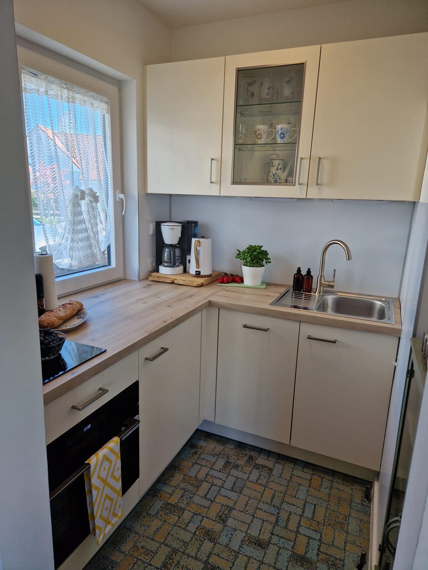 Die stilvoll eingerichtete 1-Zimmer-Ferienwohnung befindet sich im Erdgeschoss und bietet Platz für max. 3 Personen. Die Wohnfläche der ca. 26 m² großen Unterkunft verteilt sich auf ein Wohn-/Schlafzimmer sowie auf eine separate Küche, dem Badezimmer und einem Flur. Das Wohn- / Schlafzimmer ist mit einem Doppelbett 160 x 200 cm und einem gemütlichen Sofa ausgestattet, das man auch zum Bett ausziehen kann (Schlafgröße 140 x 190 cm) , auch ein Kleiderschrank und der Esstisch finden hier Platz. Vom Hauptraum aus, gelangt man auch in den traumhaften und geschmackvoll gestalteten Garten (280 m2), dem Bereich zum Relaxen und der Überdachten Terrasse (7 m2) mit gemütlichen Loungemöbeln. Die separate Küche ist u.a. mit 2 Kochfeldern, Backofen, Kühlschrank, Gefrierfach, Mikrowelle, Toaster und Kaffeemaschine ausgestattet.