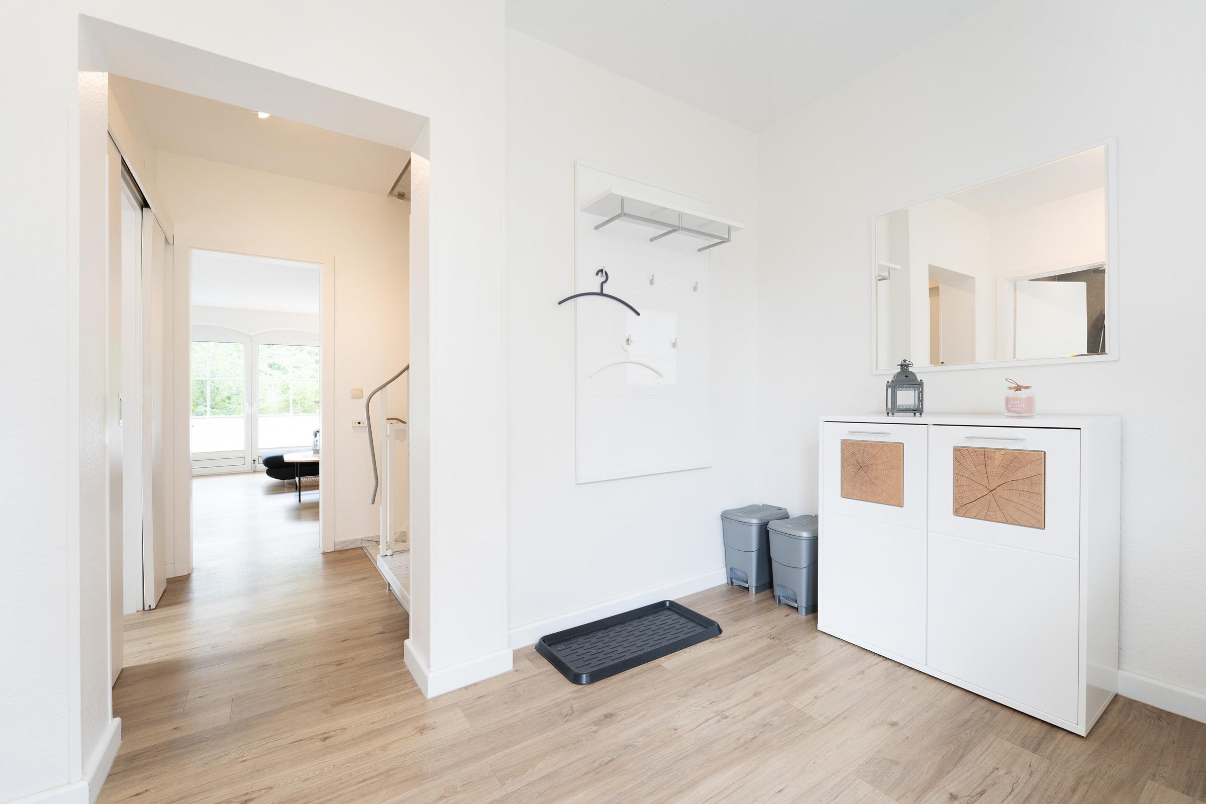 Die gut ausgestattete Küche mit Backofen, Geschirrspülmaschine, Kühlschrank mit Gefrierfach, Wasserkocher, Kaffeemaschine und Toaster lässt keine Wünsche offen. Der angrenzende Essbereich lädt zu geselligen Mahlzeiten ein.