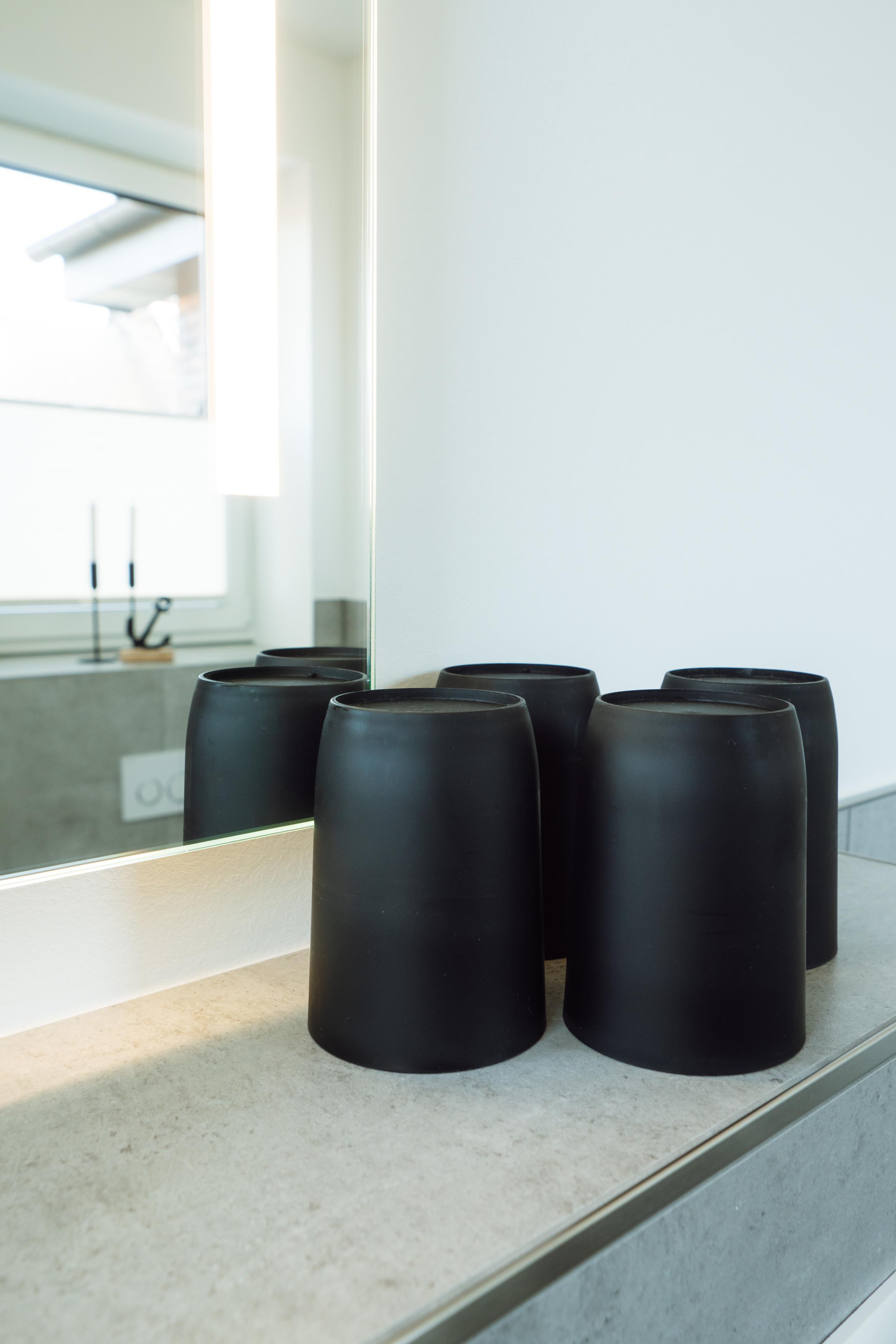 Im Wohnbereich lädt das harmonische Zusammenspiel aus warmen Farben, edlen Materialien und klarer Architektur zum Verweilen ein. Große Fenster fluten die Räume mit Licht, während die Fußbodenheizung eine behagliche Atmosphäre schafft.