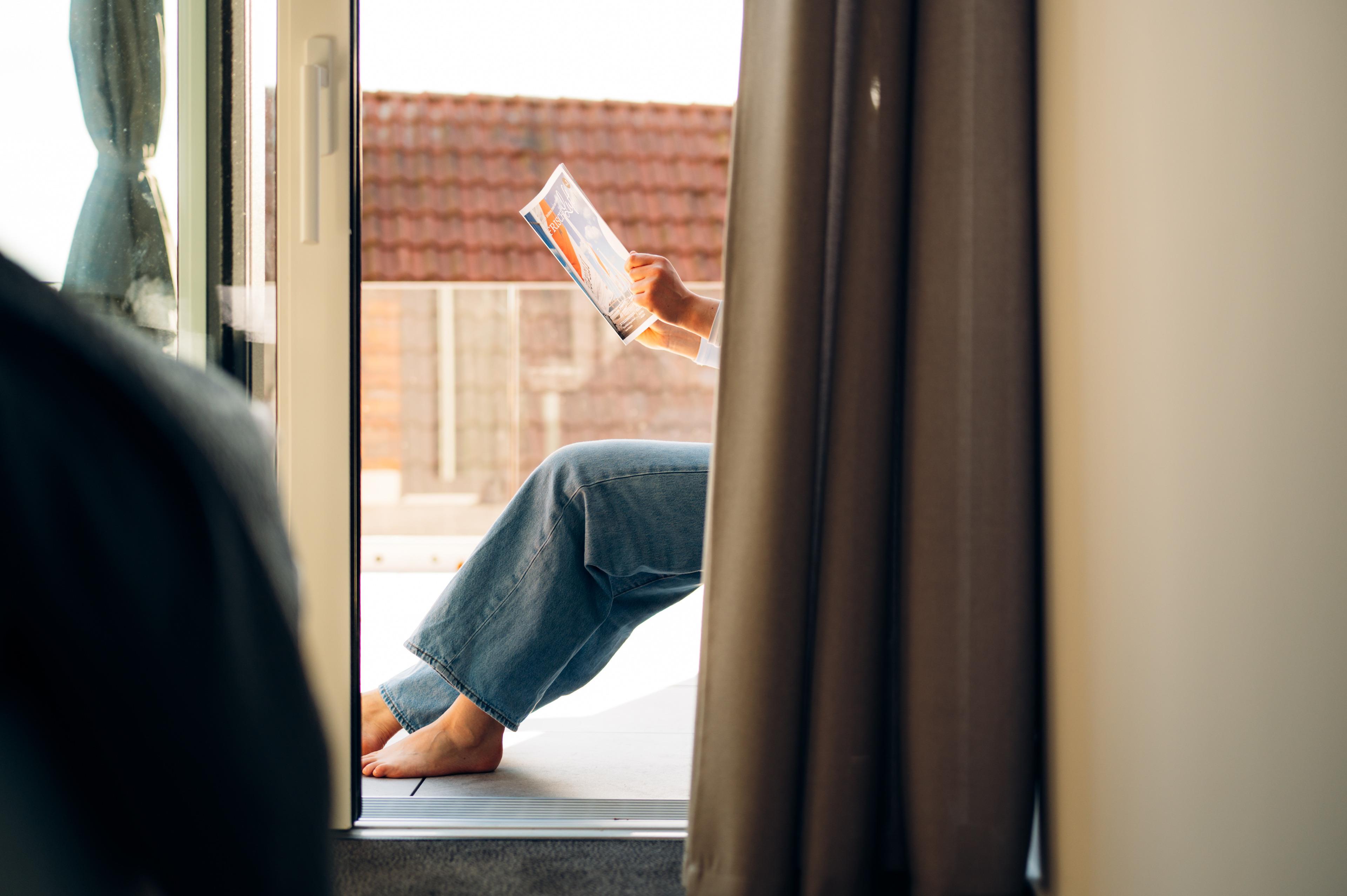 Ein Highlight ist der großzügige Panorama-Balkon, auf dem man den Tag mit einem Kaffee in der Morgensonne beginnen oder mit einem Glas Wein ausklingen lassen kann.