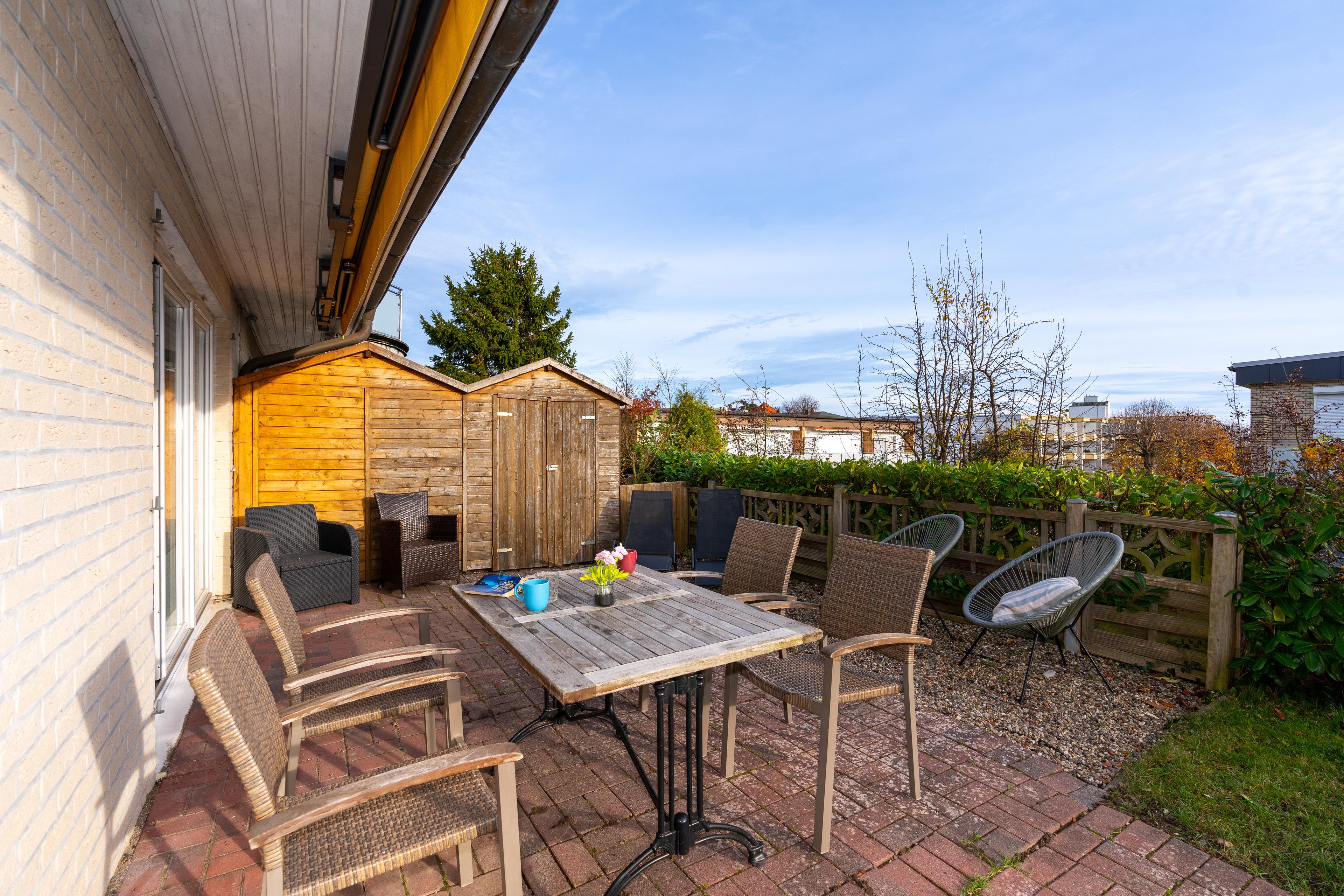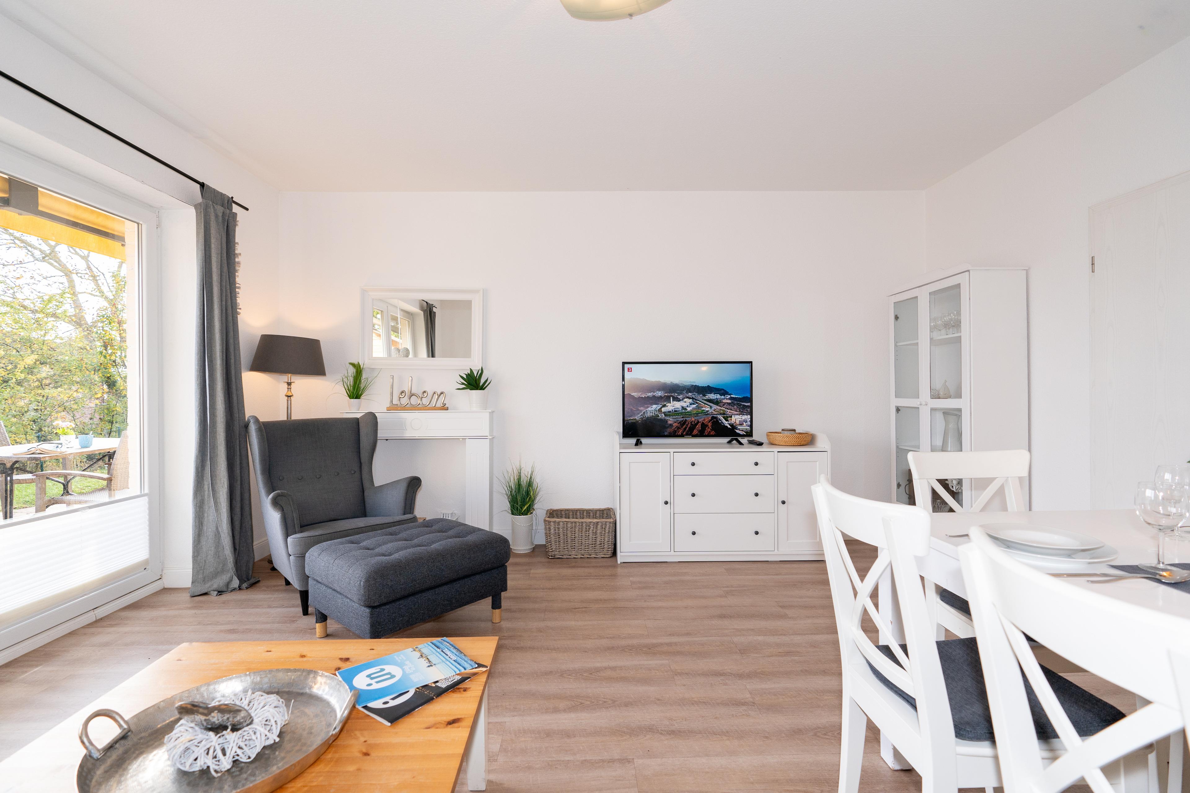 Im Erdgeschoss finden Sie ein Gäste-WC, eine geräumige Küche sowie ein stilvoll eingerichtetes Wohnzimmer mit einem Flat-TV und einer großen Wohnlandschaft, die zu entspannten Abenden einlädt. Von hier aus gelangen Sie auf die blickgeschützte Terrasse, die mit einer Markise und einem Grill ausgestattet ist. Hier können Sie entspannte Grillabende verbringen und die frische Seeluft genießen. Besonders familienfreundlich ist das 1. Obergeschoss, welches mit 2 Schlafzimmern ausgestattet ist (1 Doppelbett 2x100x200 cm, 2 Einzelbetten je 100x200 cm) sowie einem Badezimmer mit Dusche und WC und einem weiteren Bad mit Dusche, das den Gästen viel Platz und Komfort bietet. Im 2. Obergeschoss gibt es eine zusätzliche Schlafmöglichkeit (140x200 cm) mit eigenem Gäste-WC und saisonal eingeschränktem Ostsee-Fernblick.